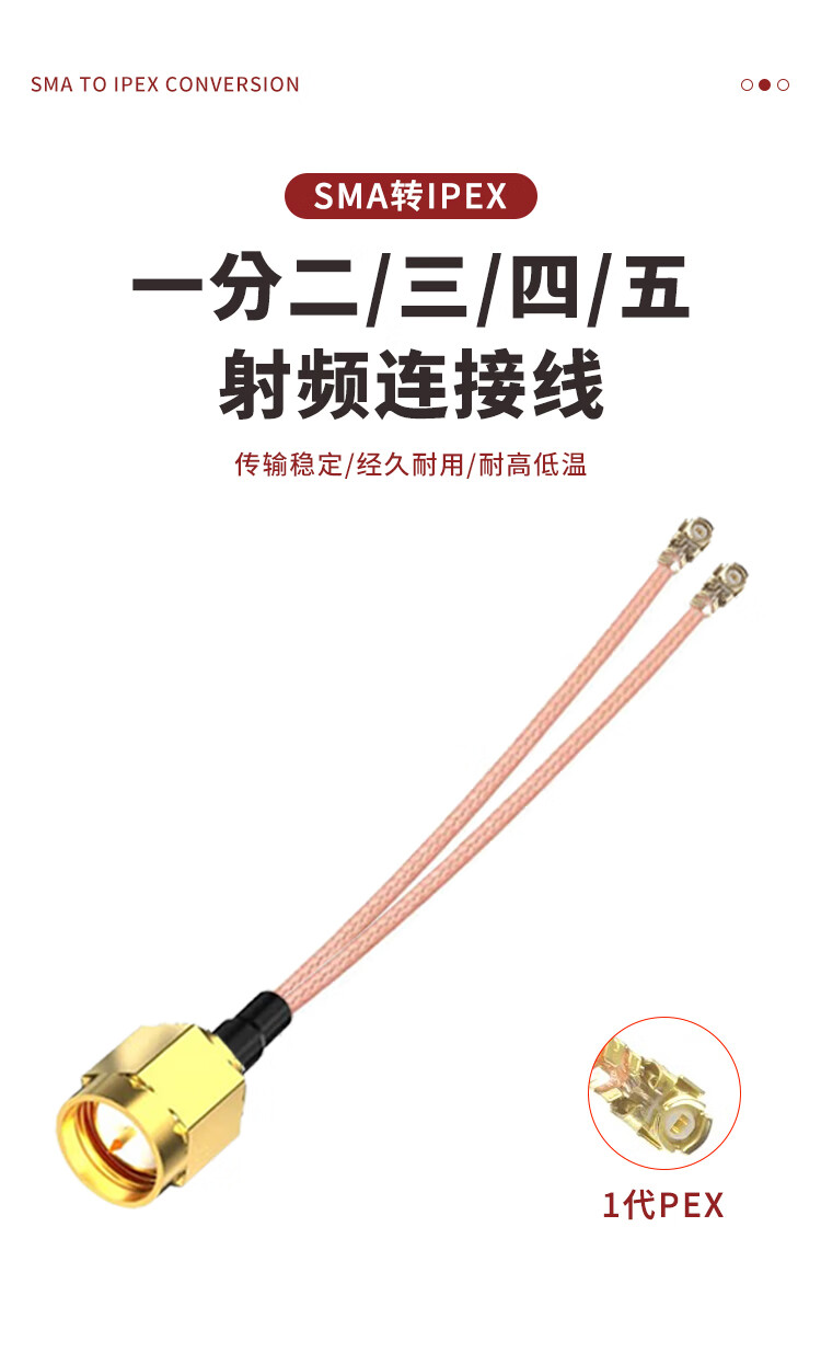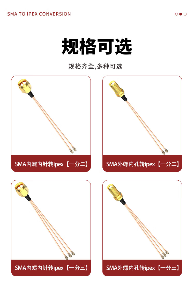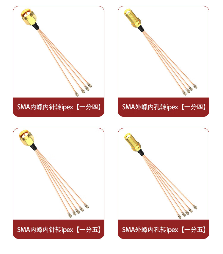 When needed, SMA external screw inner hole to ipex one-to-two connecting cable RG178 RF coaxial line WIFI module antenna 0.1 meter SX-IPX-K6