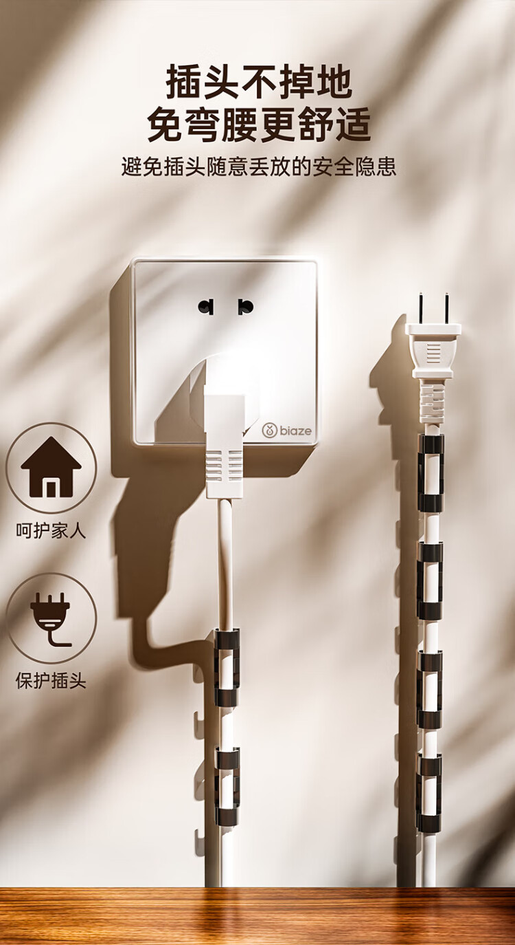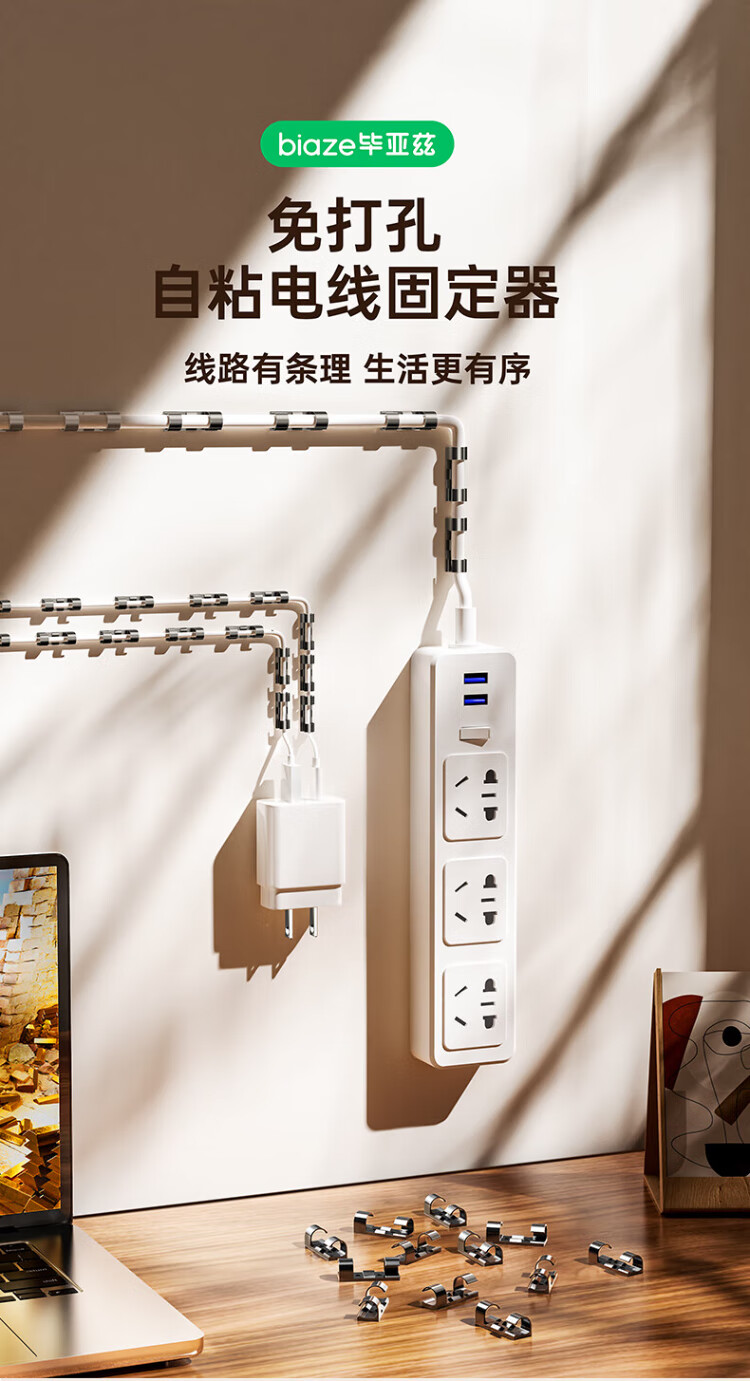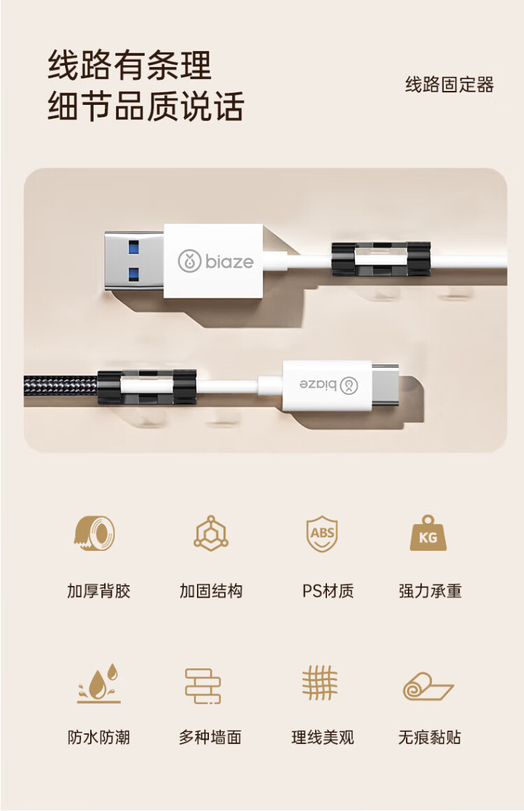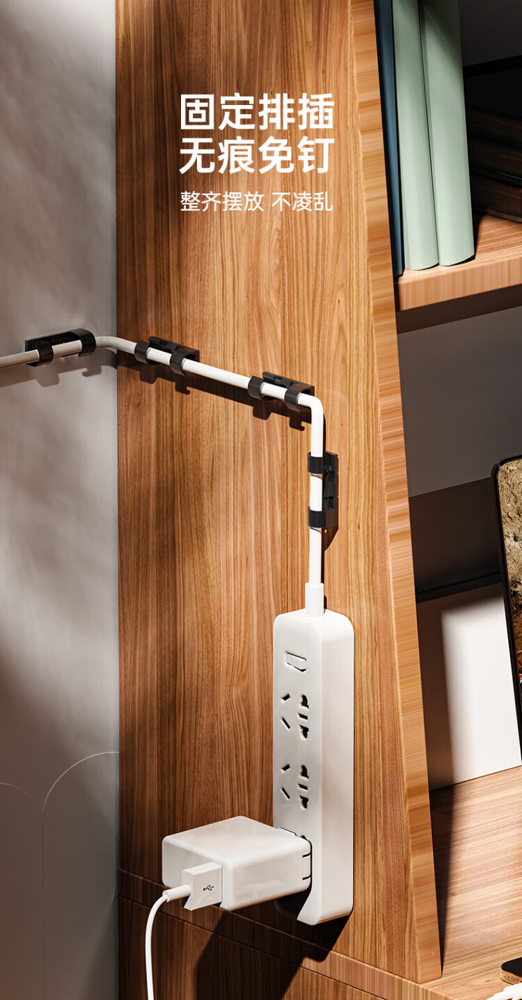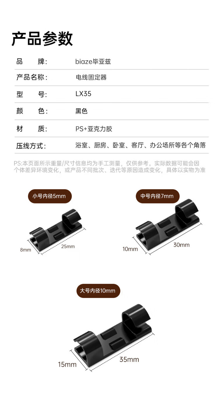 Biaz cable organizer, inner diameter 5mm wire buckle, punch-free network cable holder, cable routing artifact, desktop storage, self-adhesive wall sticker organizer clip, black, 20 pieces