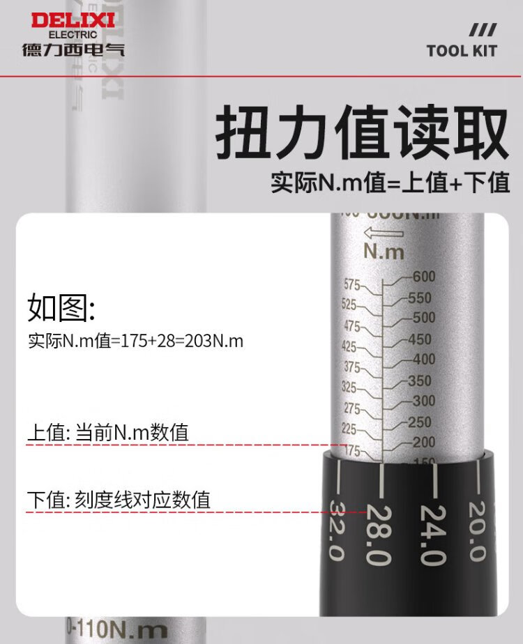 DELIXI ELECTRIC torque wrench high-precision preset torque wrench adjustable spark plug auto repair wrench 72 teeth 2.5-25Nm