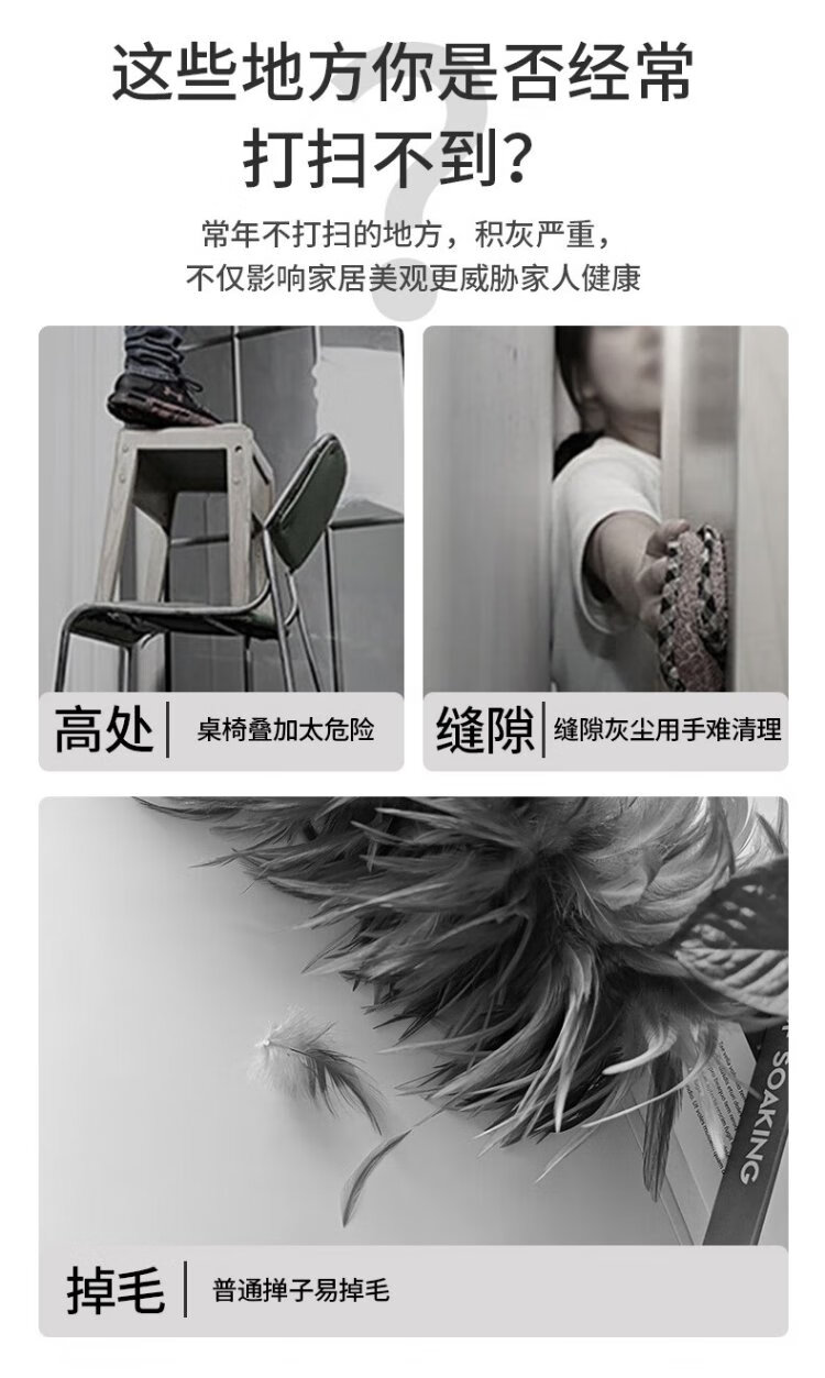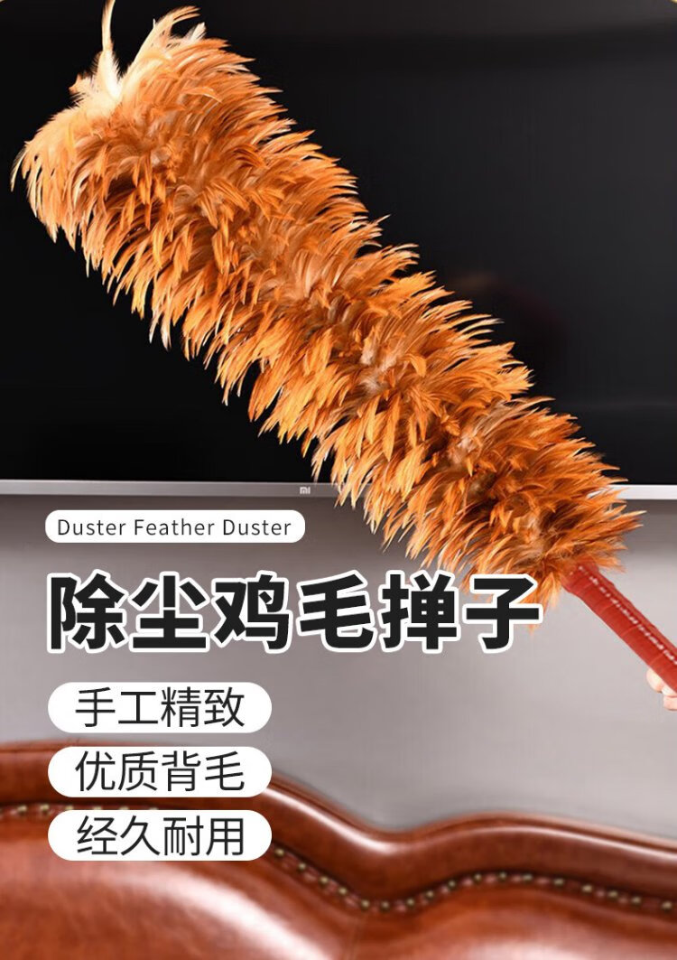 Mandelai feather duster does not shed hair, dust duster, real chicken feather dust sweeper, spider web cleaning artifact