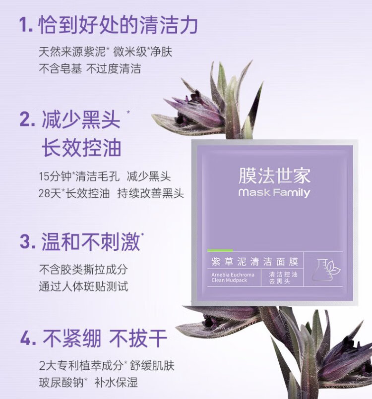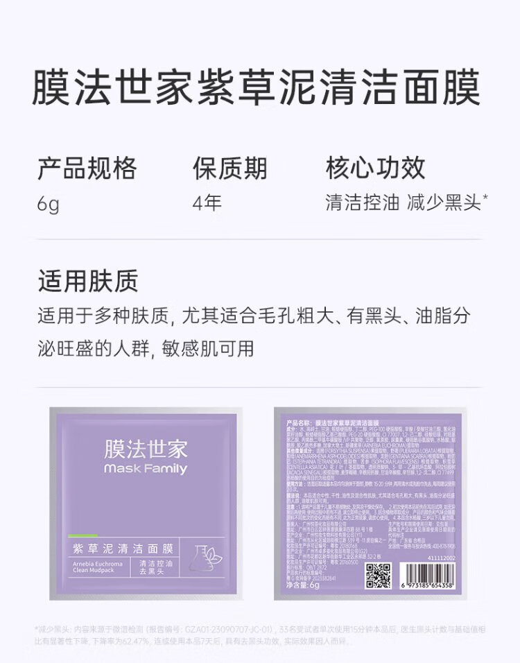 Membrane Family Lithospermum Mud Cleansing Mask 6g*8 bags deep cleansing, gentle soothing, improve redness and sensitive skin mud mask