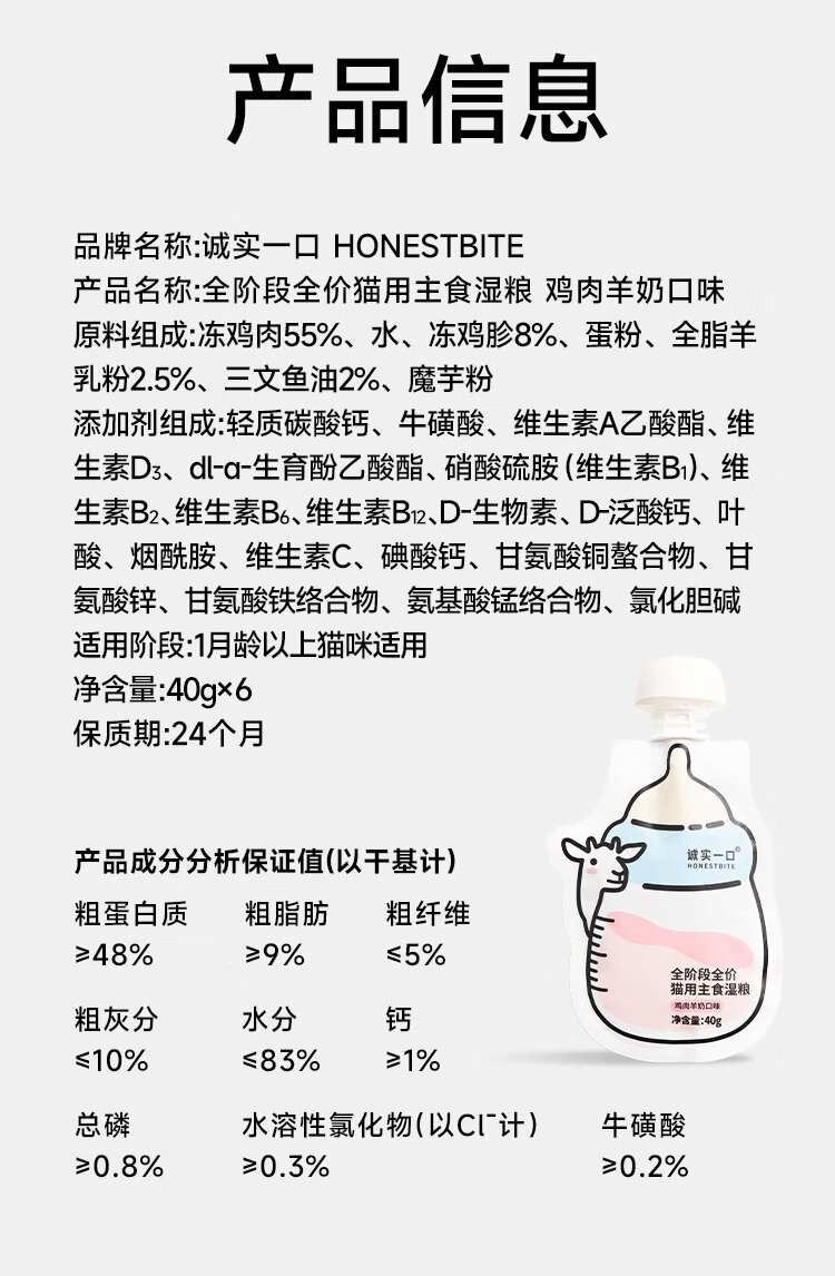 Honest One Full Price Staple Food Wet Food Goat Milk Nutritional Bottle Sauce Chicken Goat Milk Flavor 1 box (40g*6)