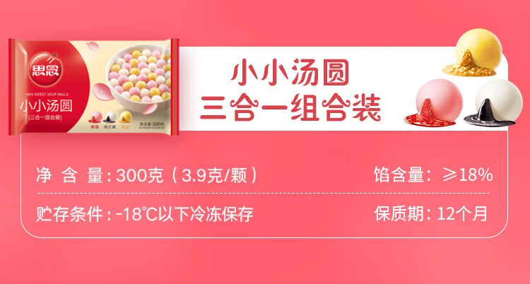 Missing Little Tangyuan Combination (Strawberry, Black Sesame, Peanut) 300g*3 About 230 Yuanxiao Breakfast Desserts