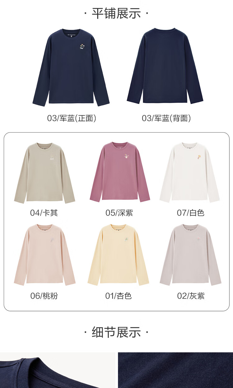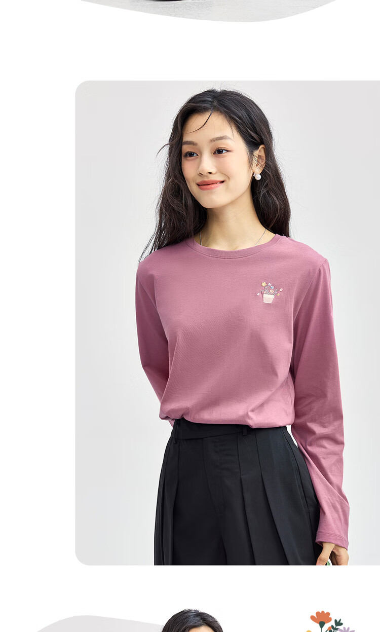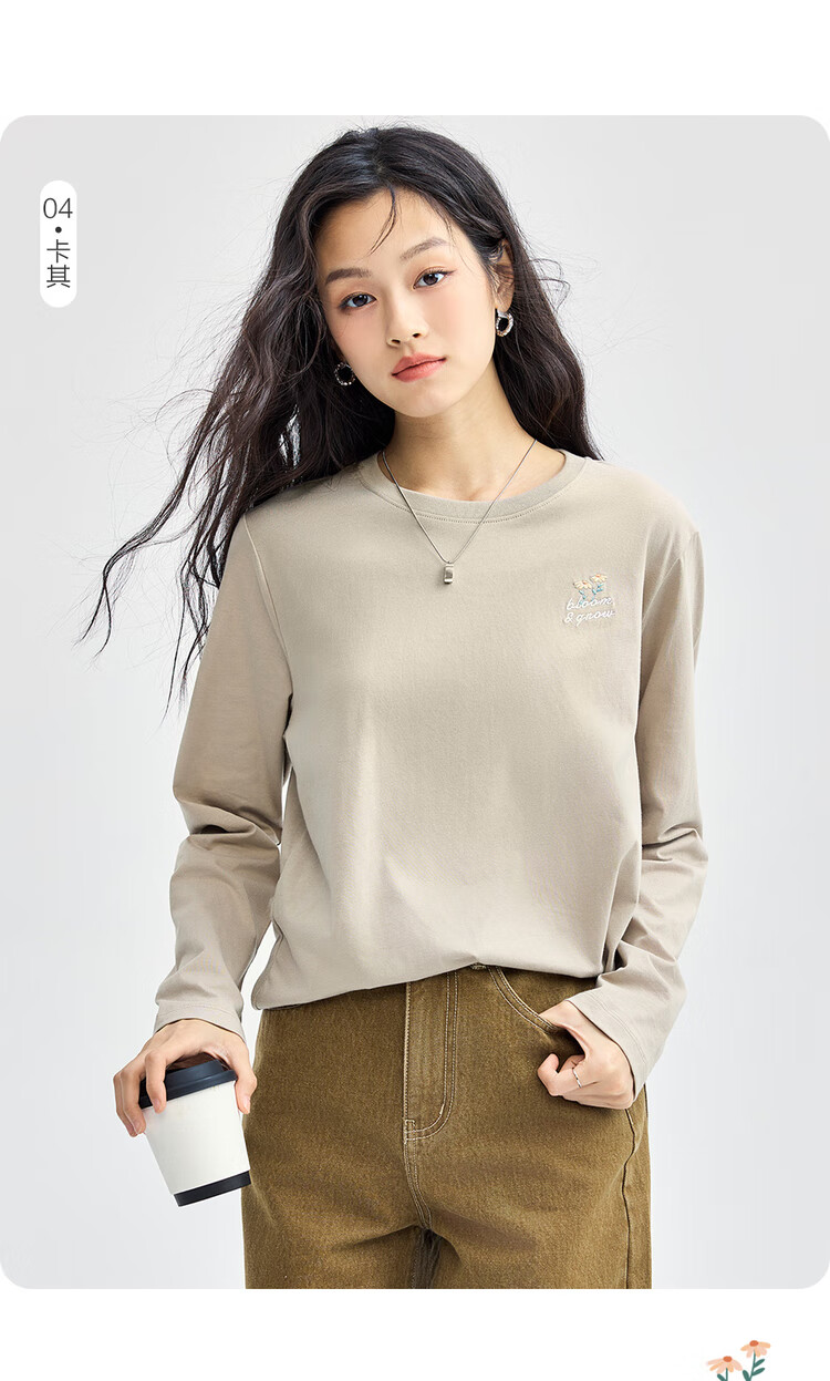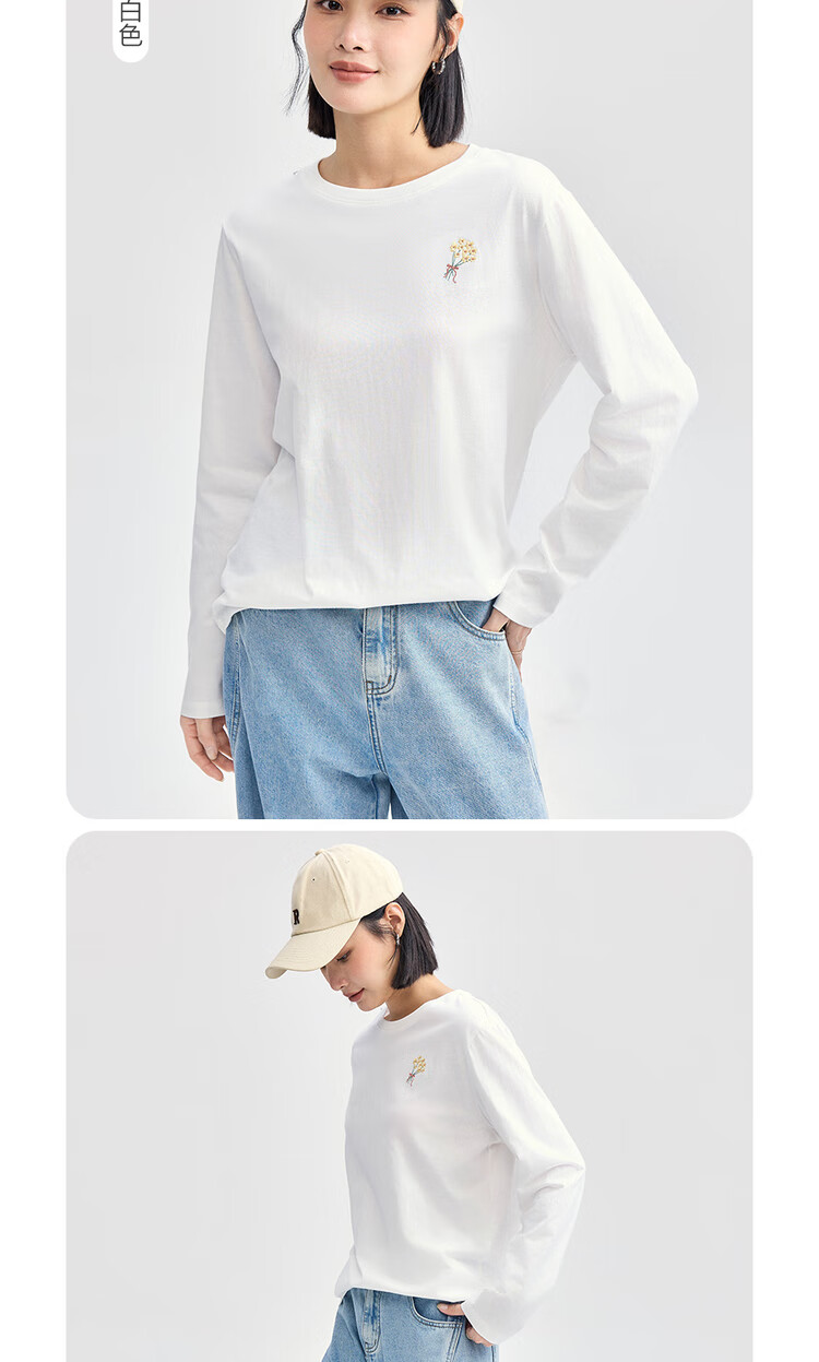 Giordano long-sleeved T-shirt women's pure cotton bottoming shirt sweet flower embroidered round neck pullover 13324792