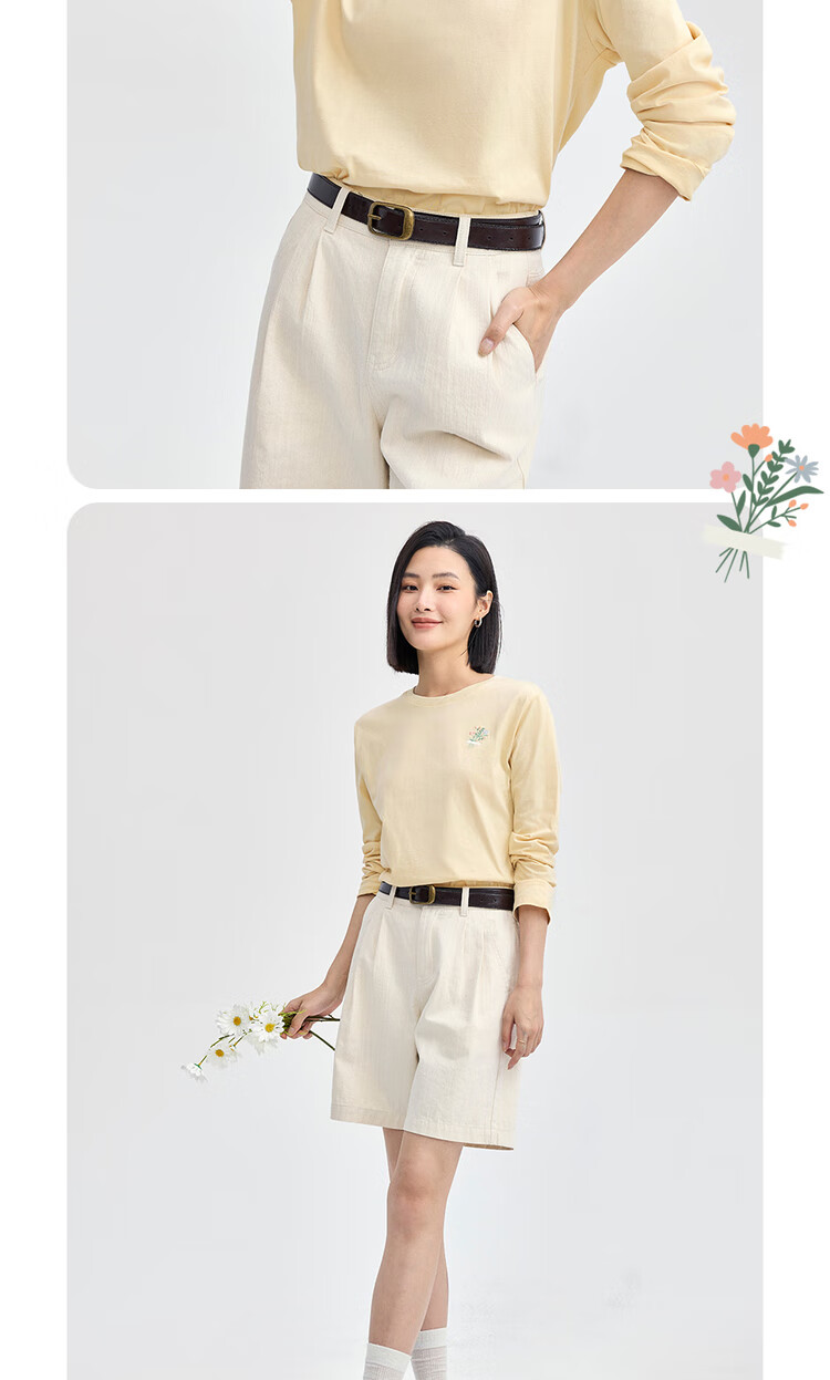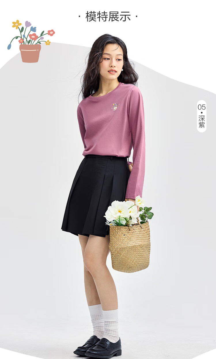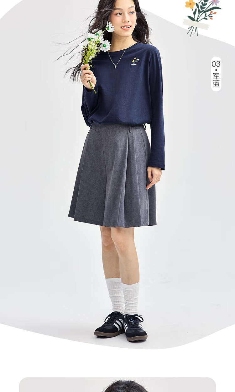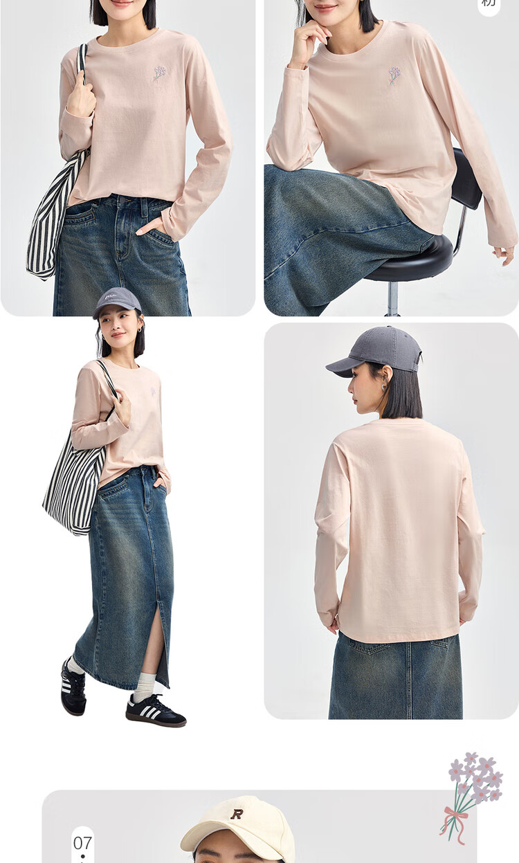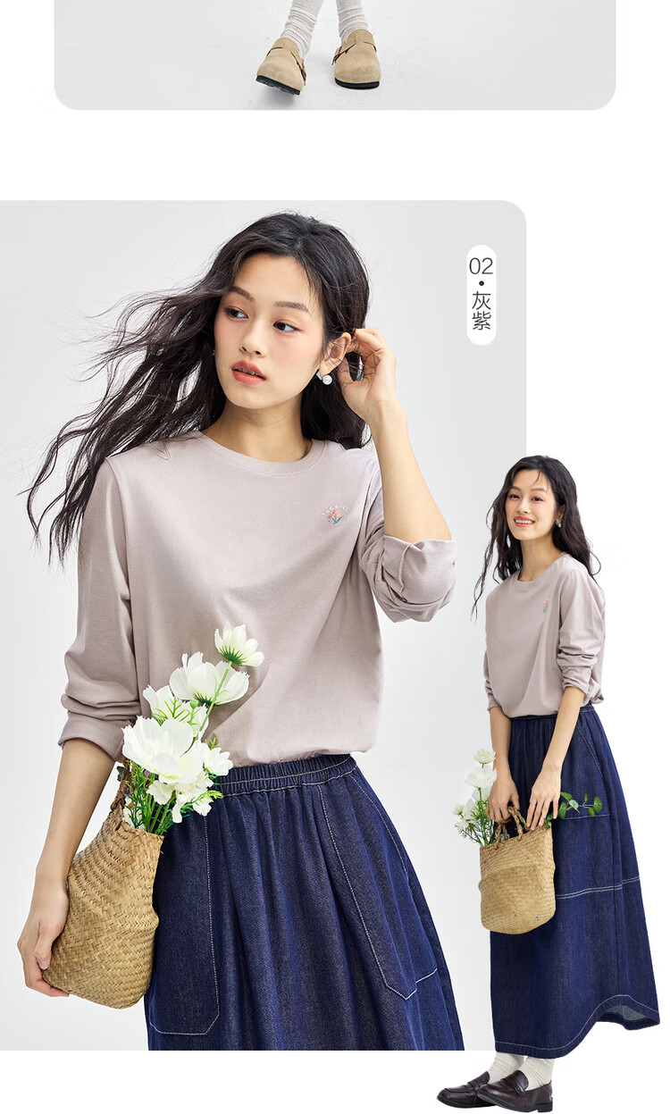 Giordano long-sleeved T-shirt women's pure cotton bottoming shirt sweet flower embroidered round neck pullover 13324792
