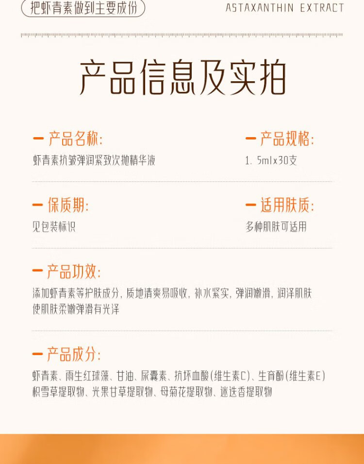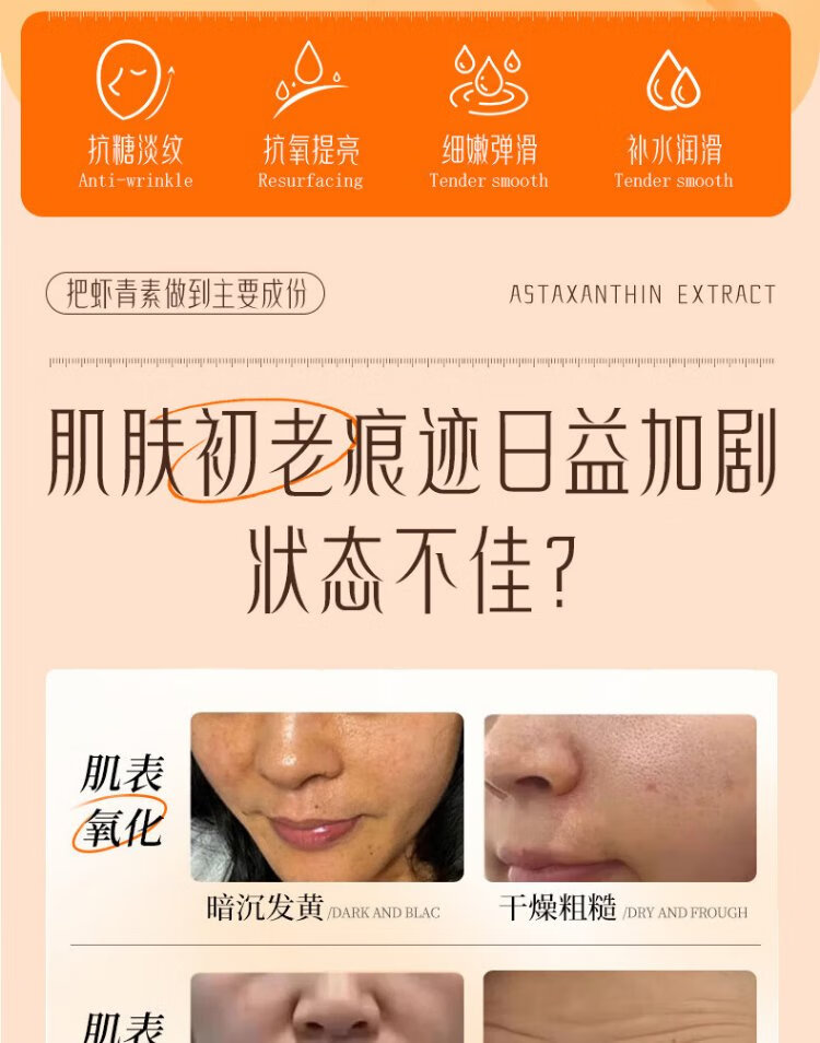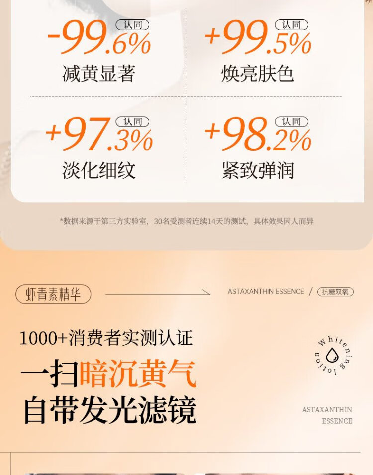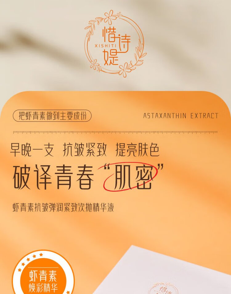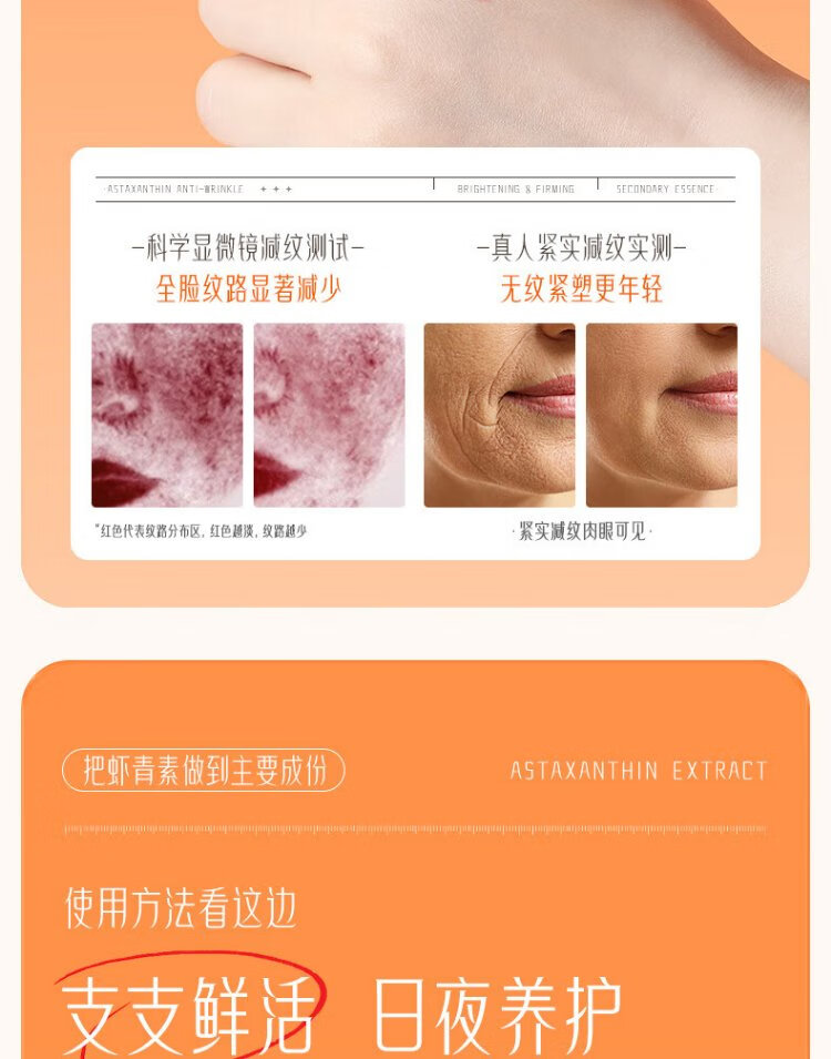 Xishiti Astaxanthin Second-Purse Essence Anti-wrinkle, Firming and Aging, Diminishing Fine Lines, Double Antioxidant, Anti-Yellowing, Brightening Skin