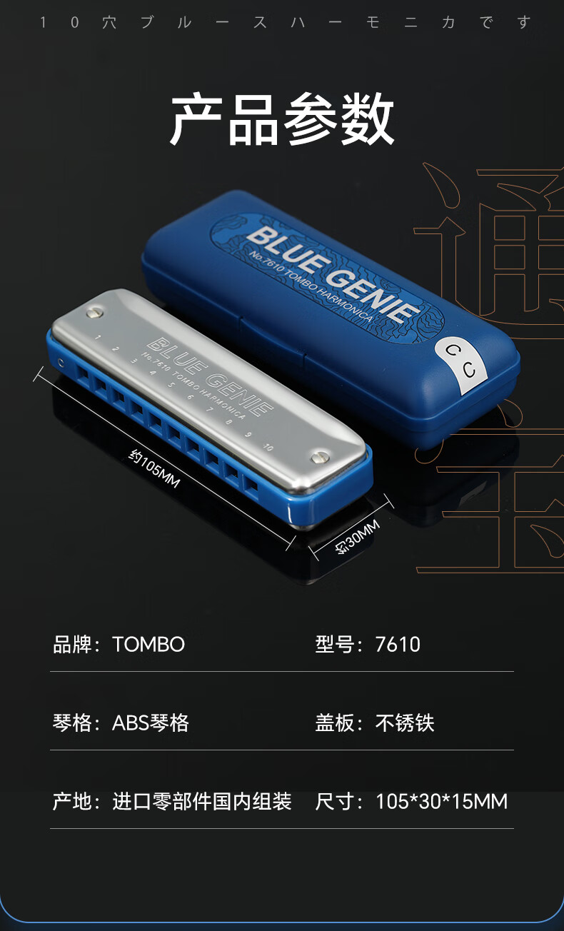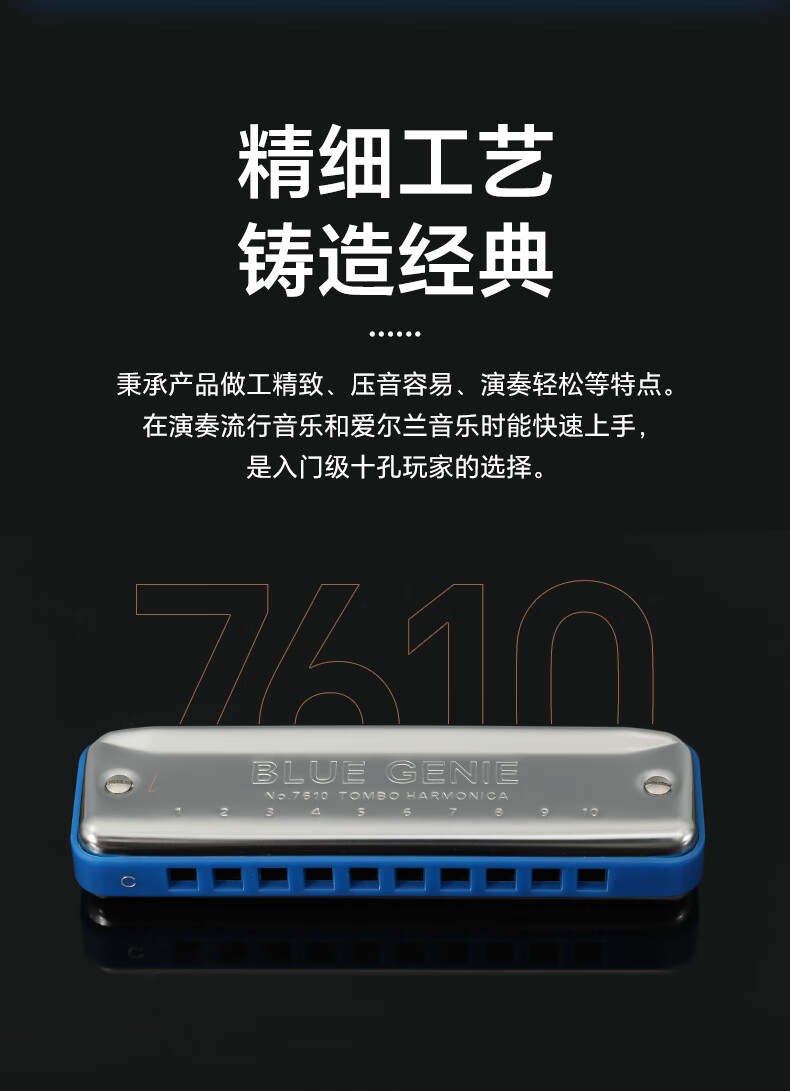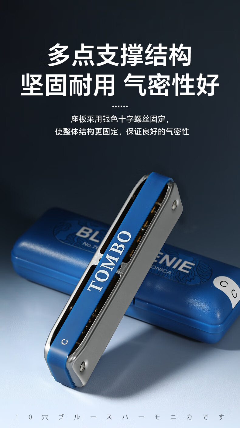 TOMBO harmonica imported from Japan gong 7610 Bruce PADDY tuning 10-hole harmonica for adults and children, universal for beginners