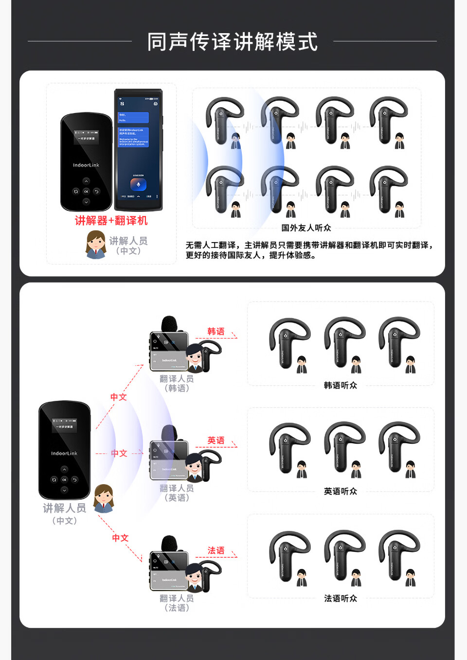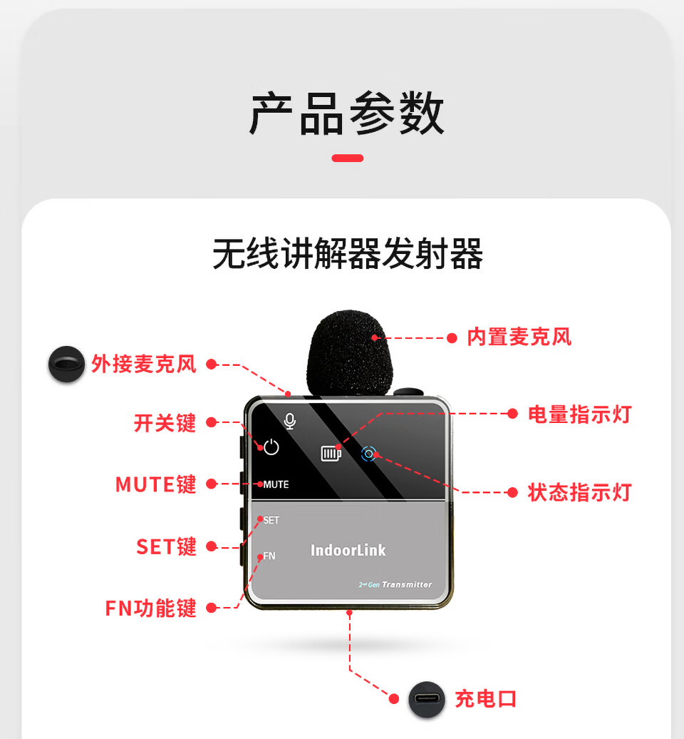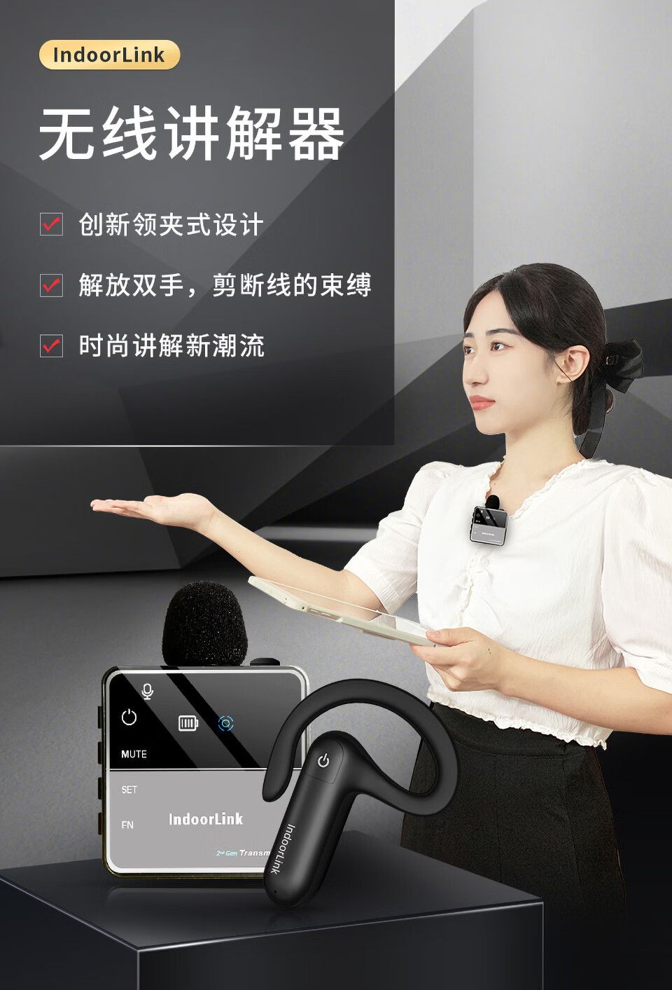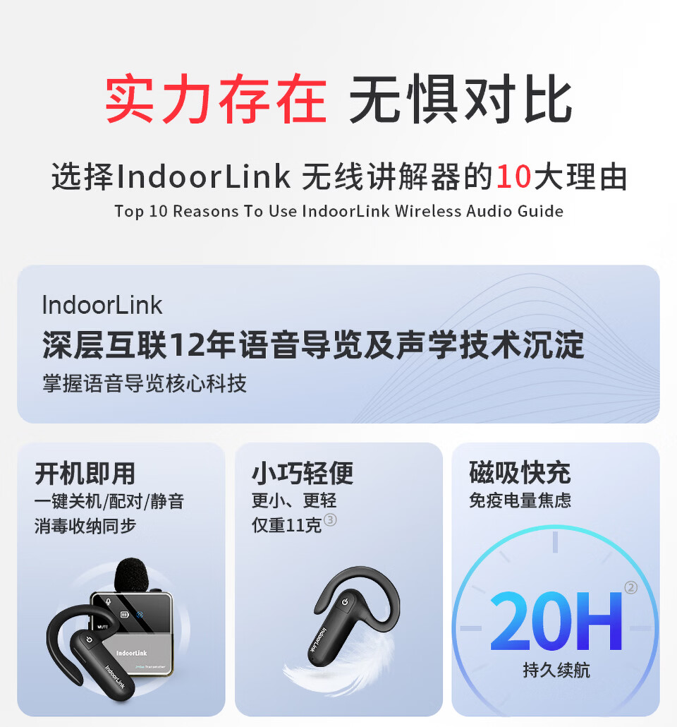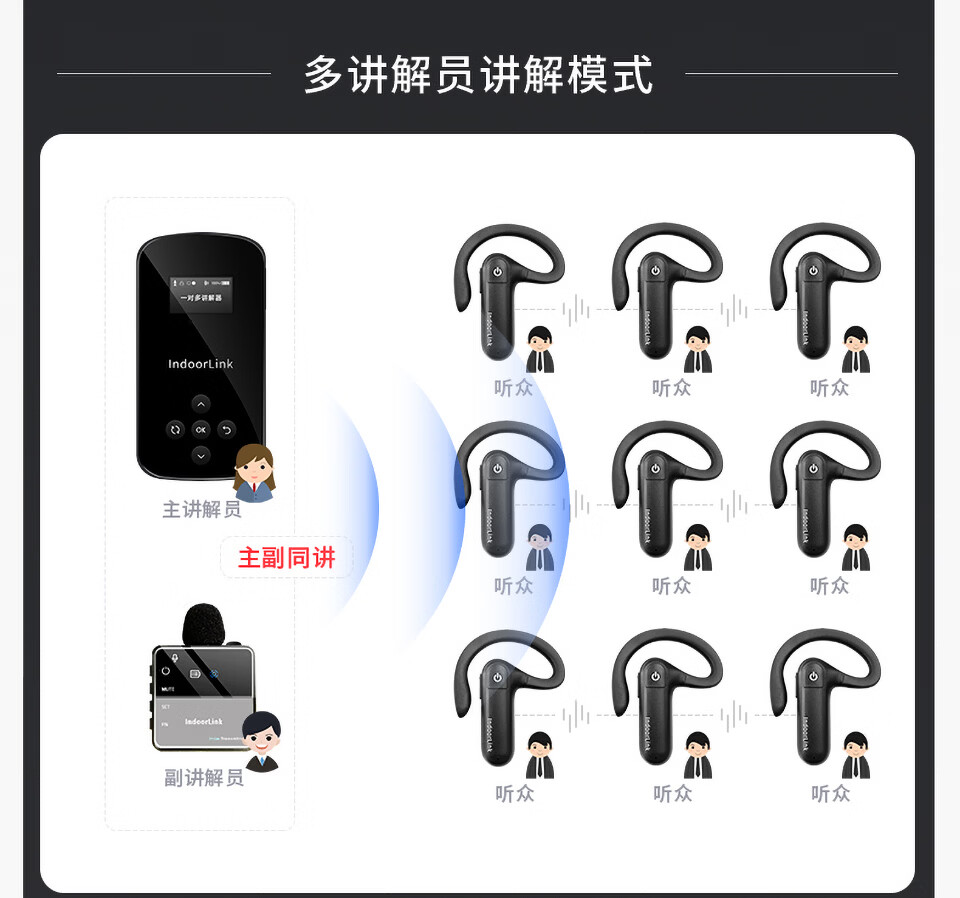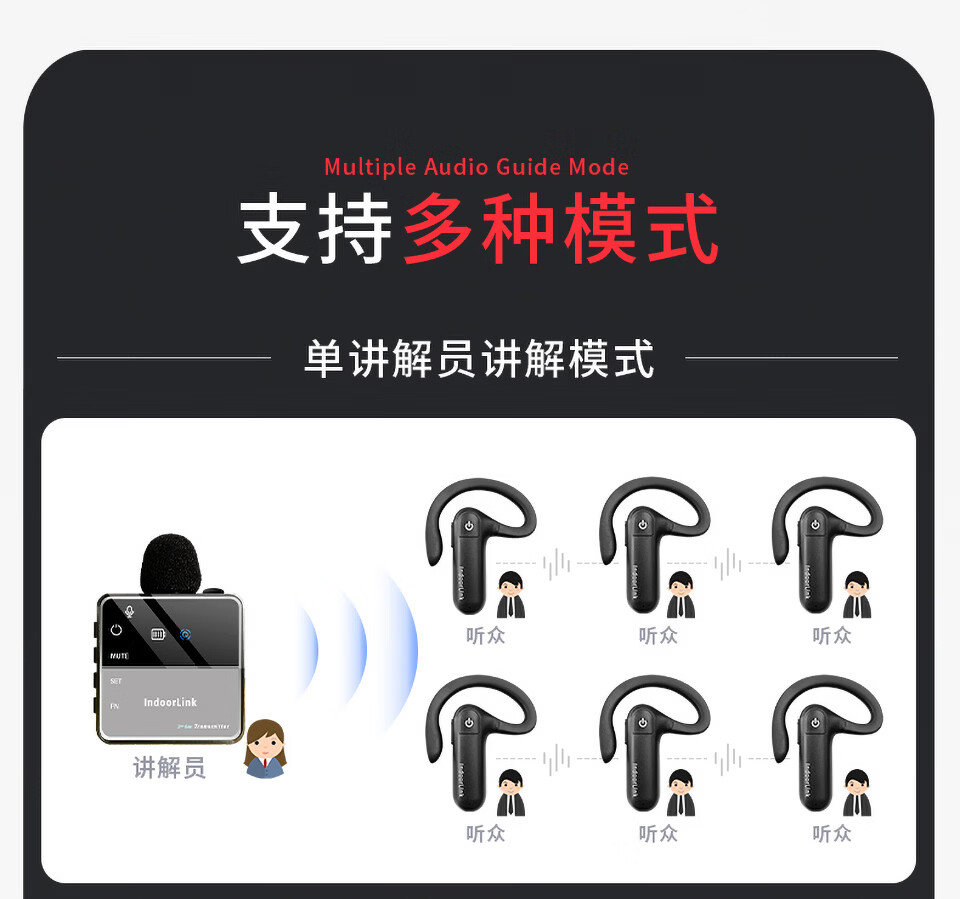 IndoorLink wireless explainer one-to-many government and enterprise reception factory visit enterprise exhibition hall high-end conference reception scenic spot tour guide group museum tour exhibition hall team explanation equipment