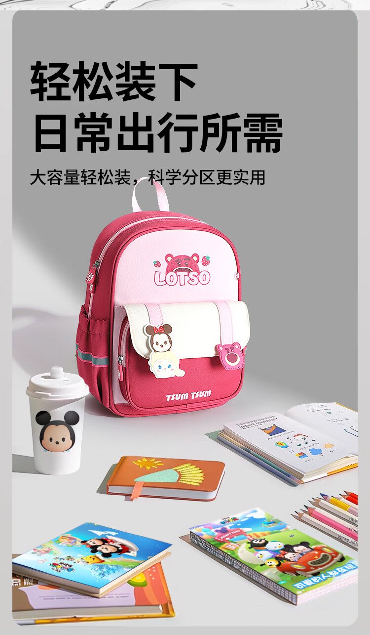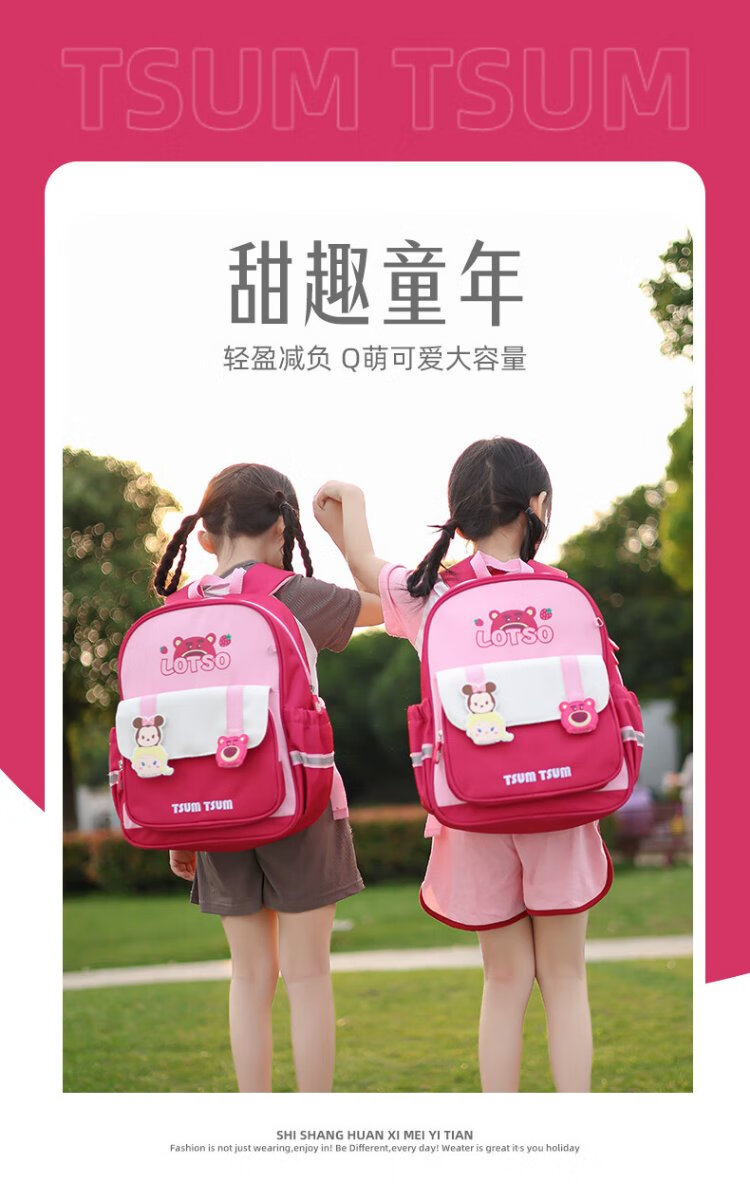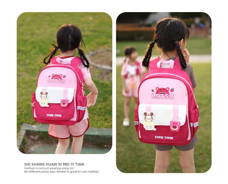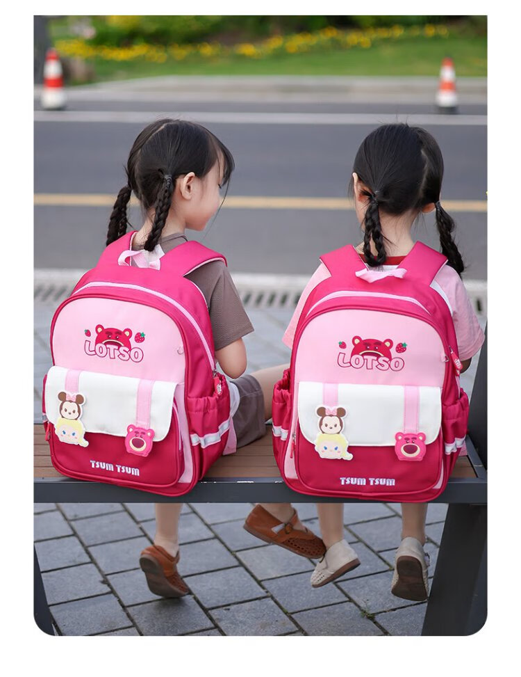 Disney (Disney) children's schoolbags kindergarten girls first and second grade strawberry bear lightweight boys and girls backpack st80264 rose red