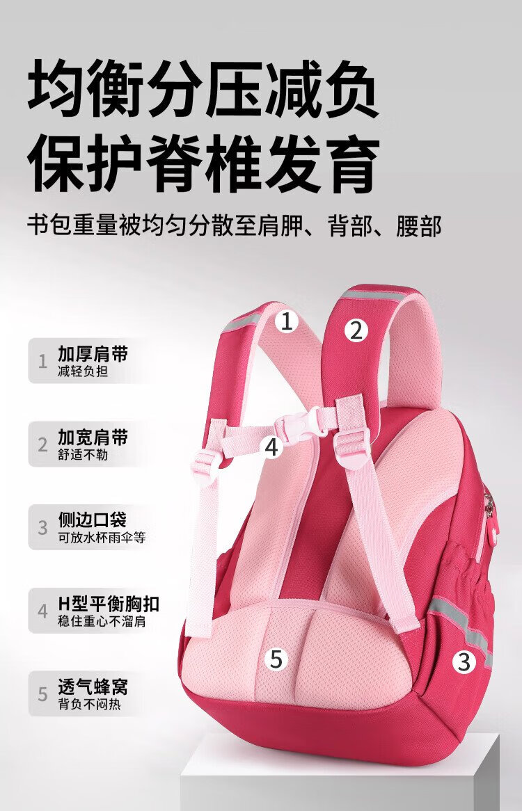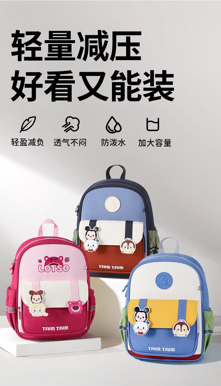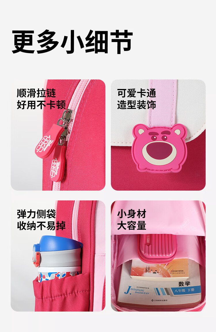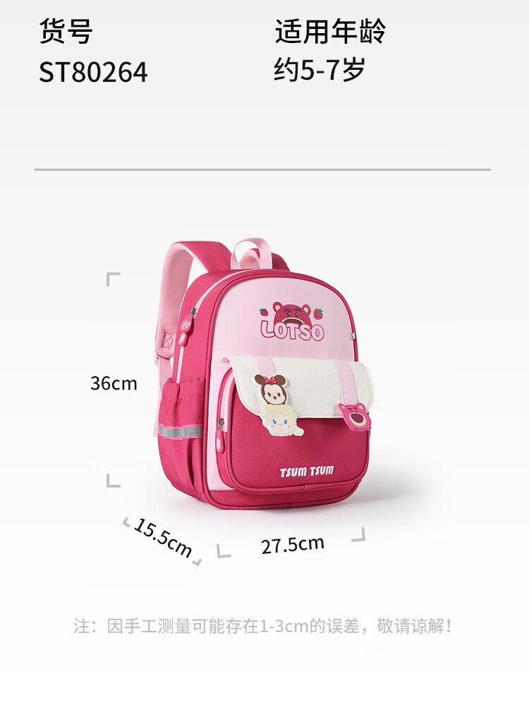 Disney (Disney) children's schoolbags kindergarten girls first and second grade strawberry bear lightweight boys and girls backpack st80264 rose red