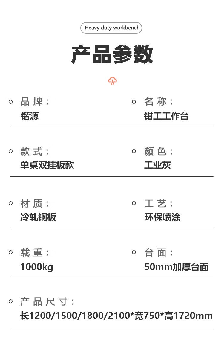 Kaiyuan single table double hanging board 2100*750*1720mm anti-static heavy-duty workbench bench bench industrial workshop assembly line tool table multi-functional maintenance tool bench experimental operating table