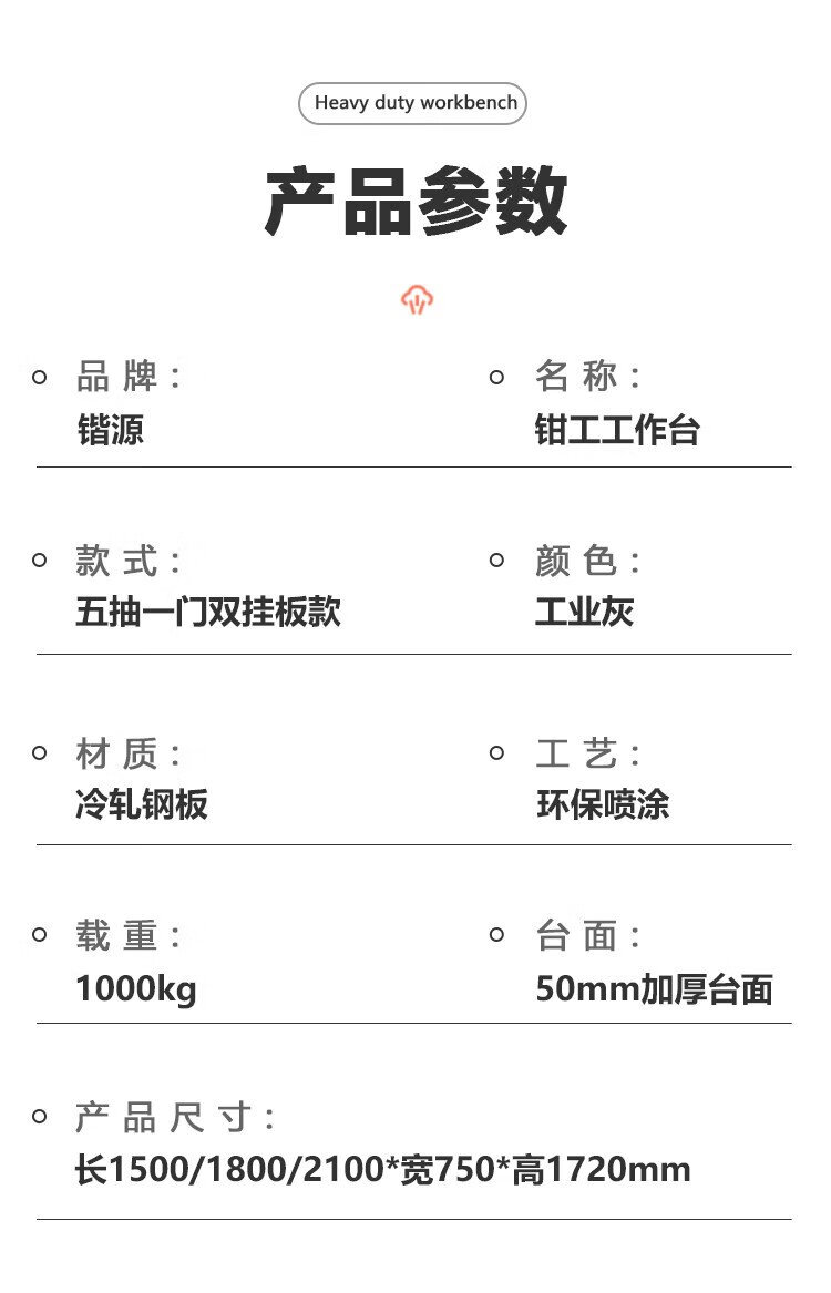 Kaiyuan five drawers and one door double hanging plate 1500*750*1720mm anti-static heavy-duty workbench fitter bench assembly line tool table maintenance tool bench experimental console customization