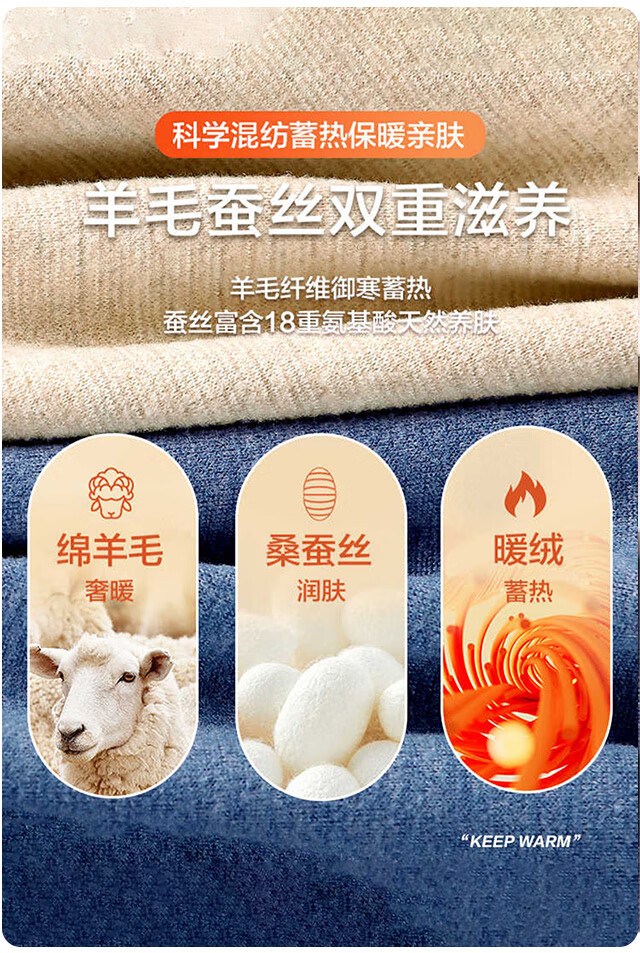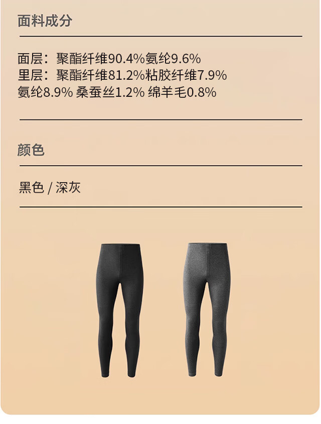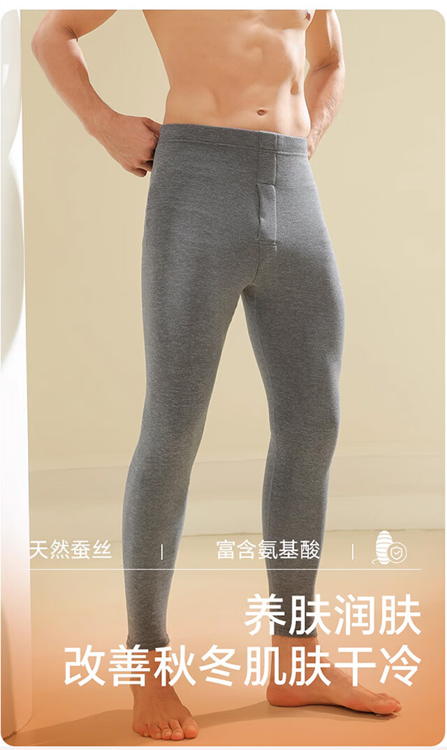 Langsha 2-piece autumn trousers for men, wool and silk 7A grade antibacterial and anti-mite AB surface plus velvet heating men's thermal trousers