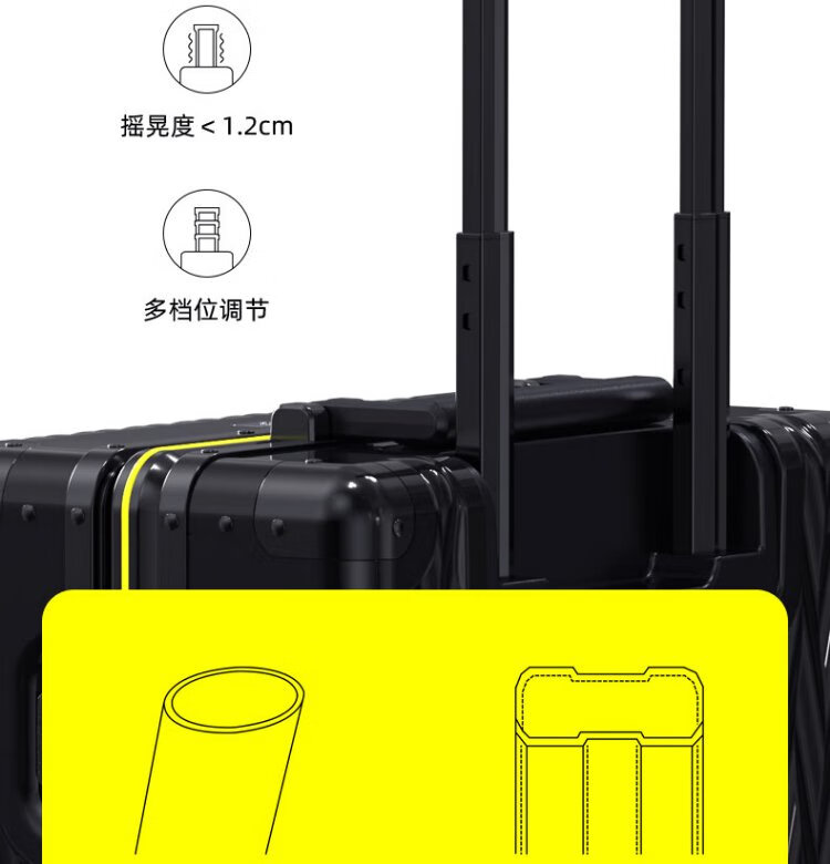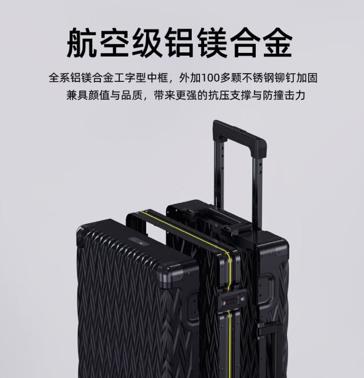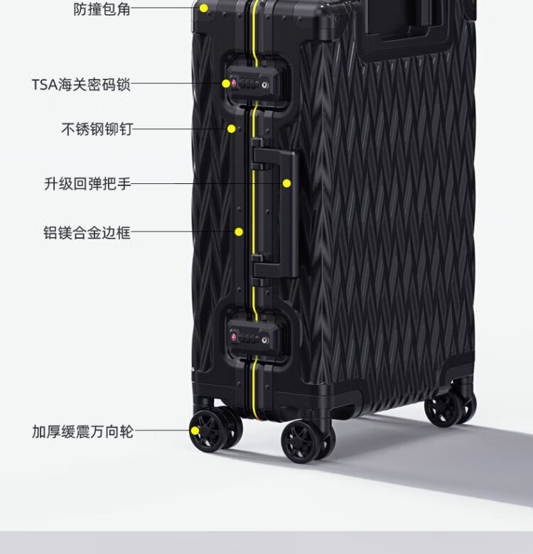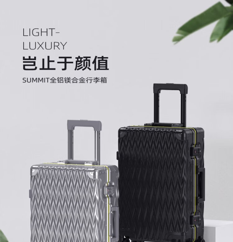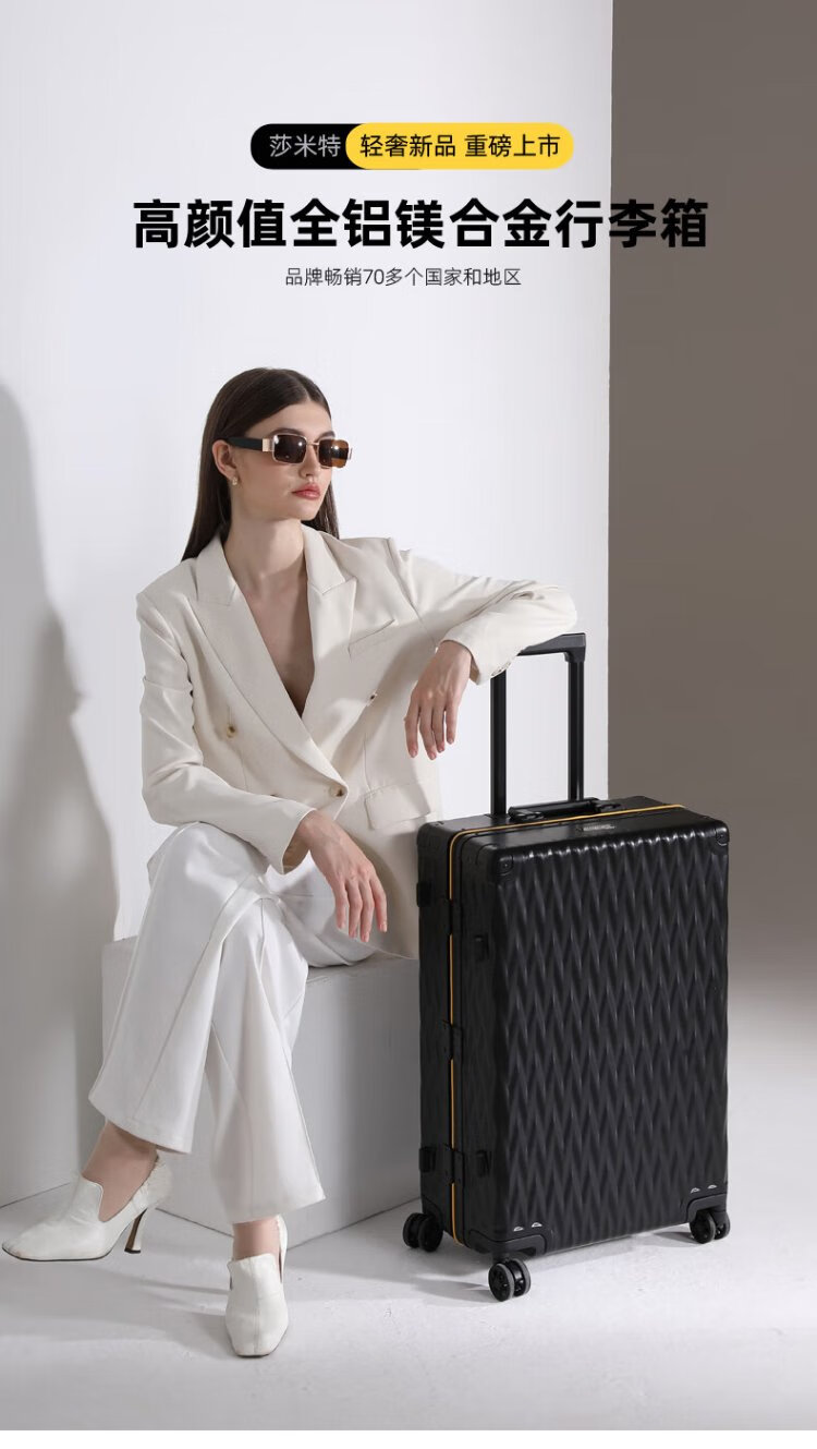 Shamit 20-inch aluminum-magnesium alloy suitcase all-metal business high-end suitcase anti-pressure silent wheel trolley case black
