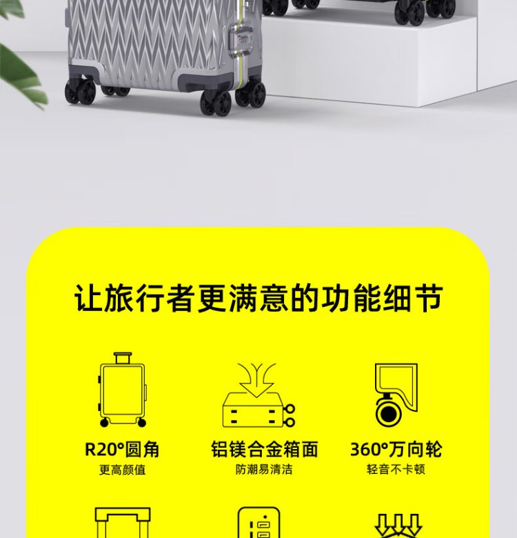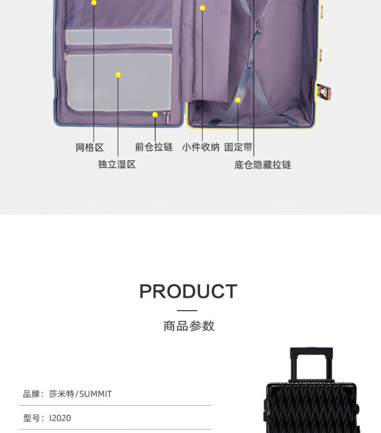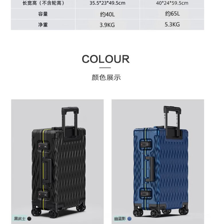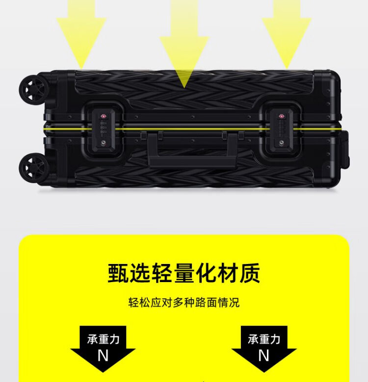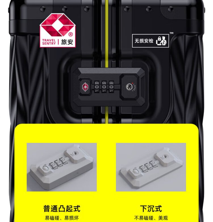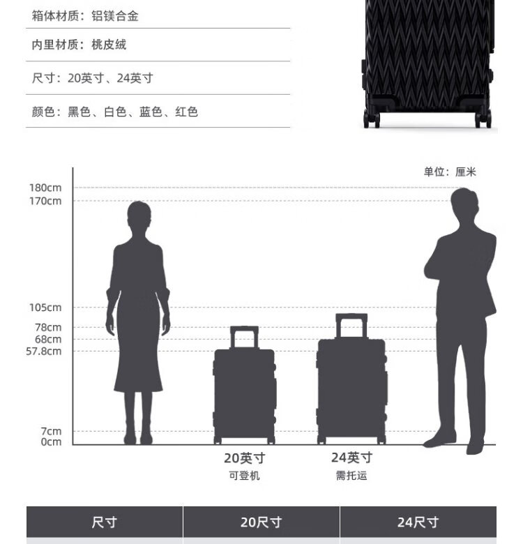Shamit 20-inch aluminum-magnesium alloy suitcase all-metal business high-end suitcase anti-pressure silent wheel trolley case black