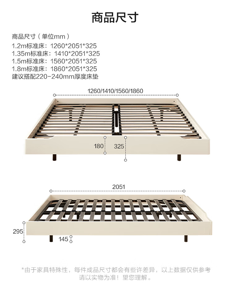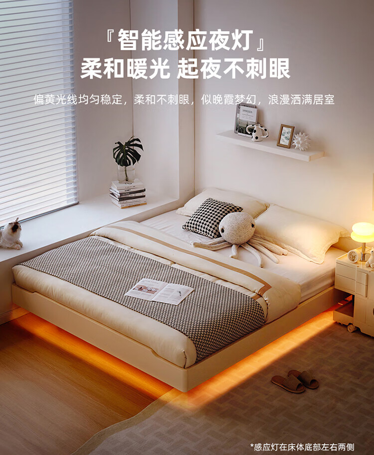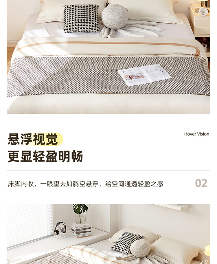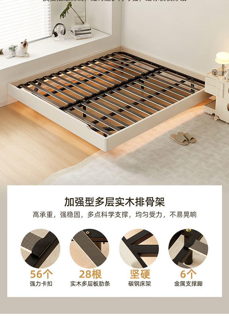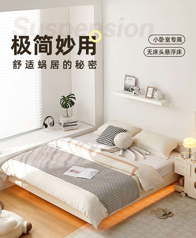 Quanyou Home tatami double bed without bedside bed 1.5m x 2m small apartment bedroom home cream style suspended bed