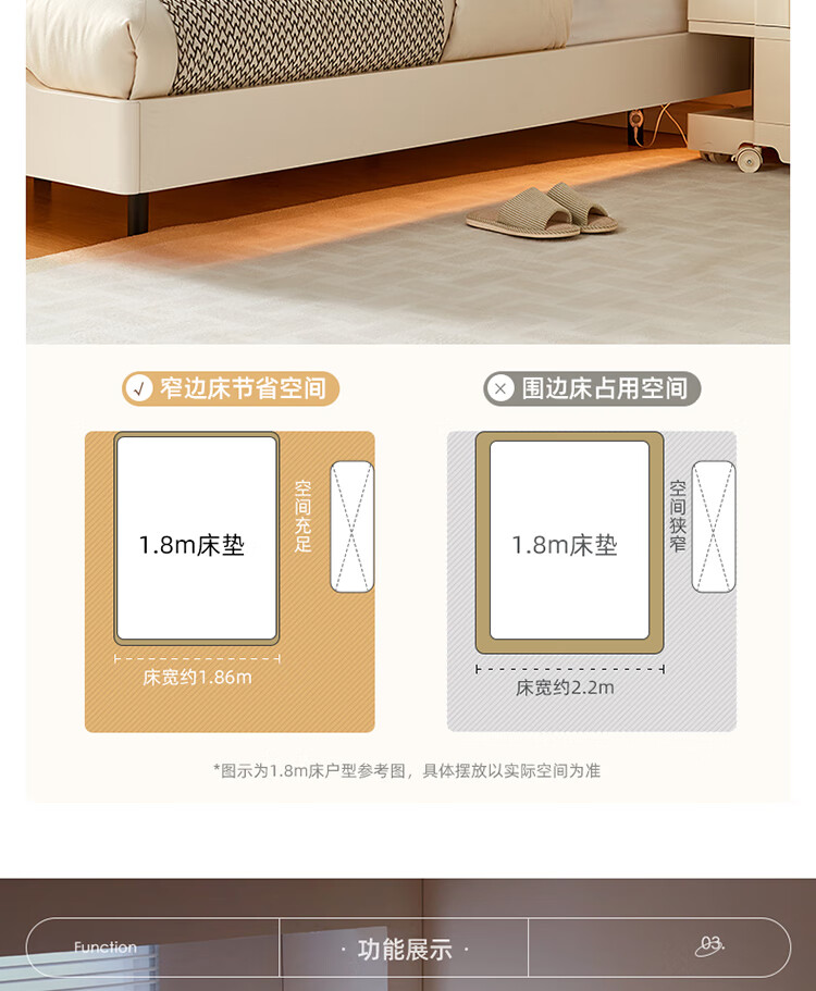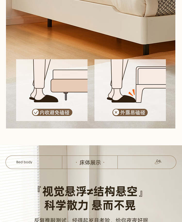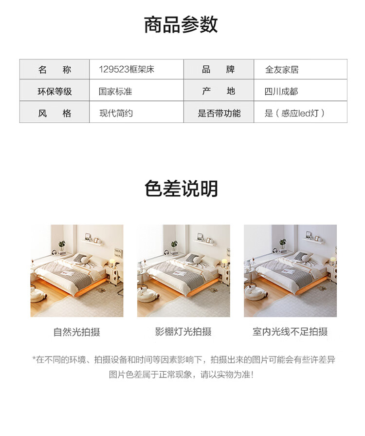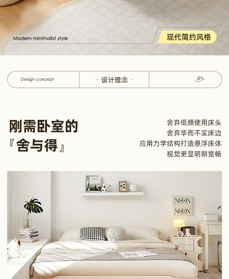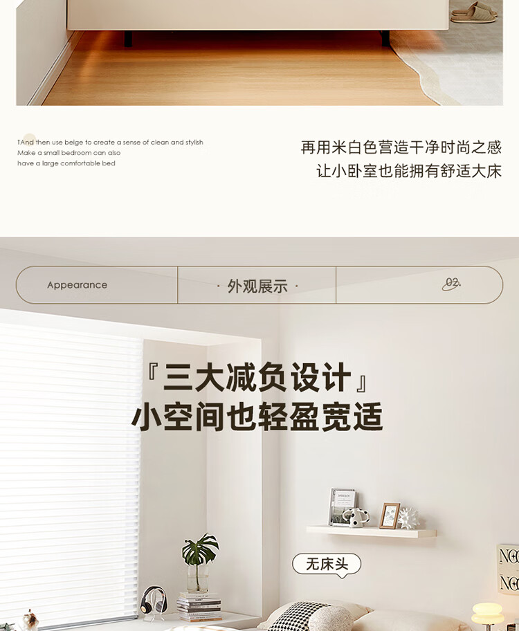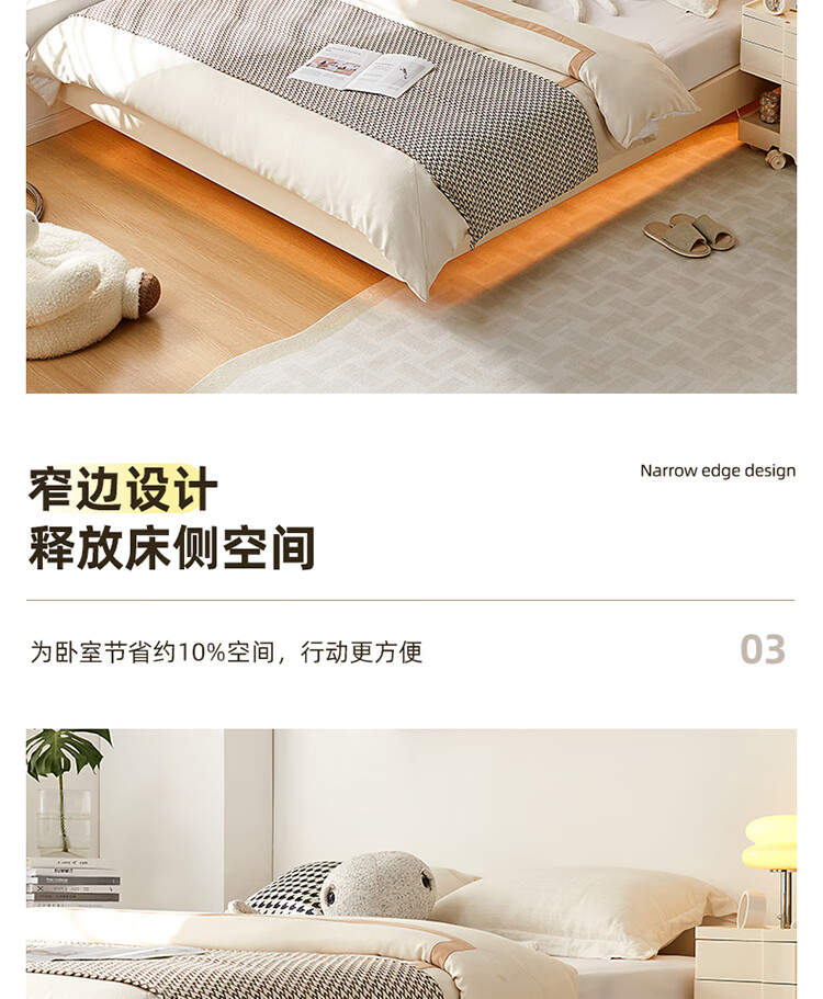 Quanyou Home tatami double bed without bedside bed 1.5m x 2m small apartment bedroom home cream style suspended bed