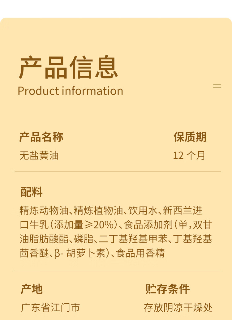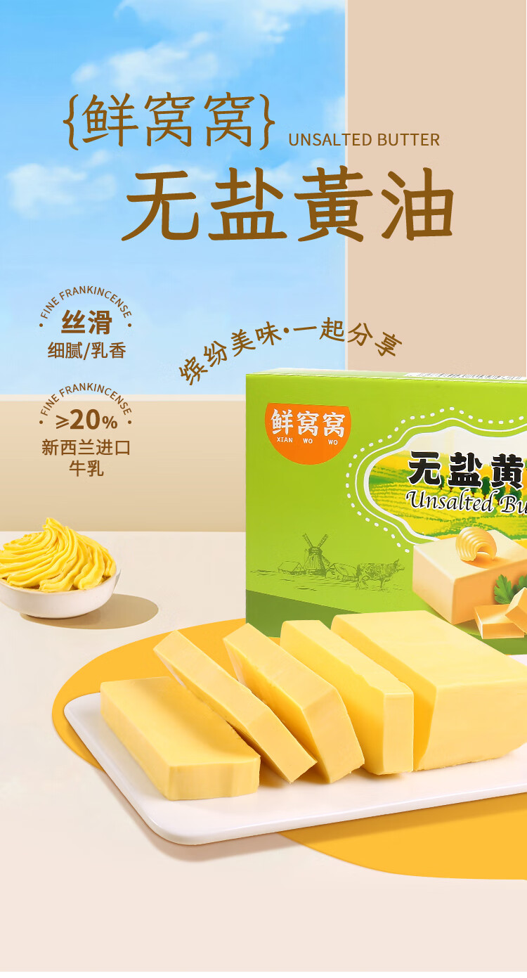 Xianwowo unsalted butter 500g (contains 20% New Zealand milk) cake bread breakfast fried steak baking ingredients