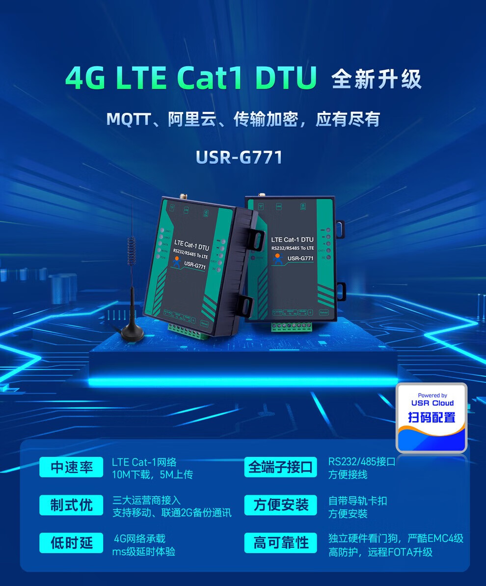 Someone's Internet of Things 4GCat-1 DTU module MQTT wireless network data transparent transmission 232 serial port 485 to network port communication equipment isolated version USR-G771