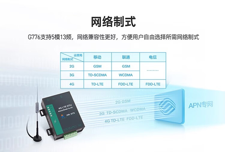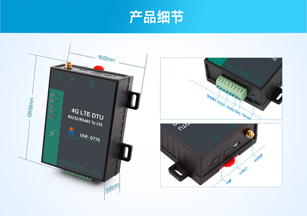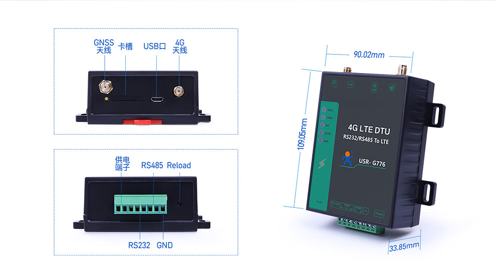 Someone's Internet of Things 5-mode 13-band 4G DTU RS232/485 serial port data communication EMC level 3 protection USR-G776