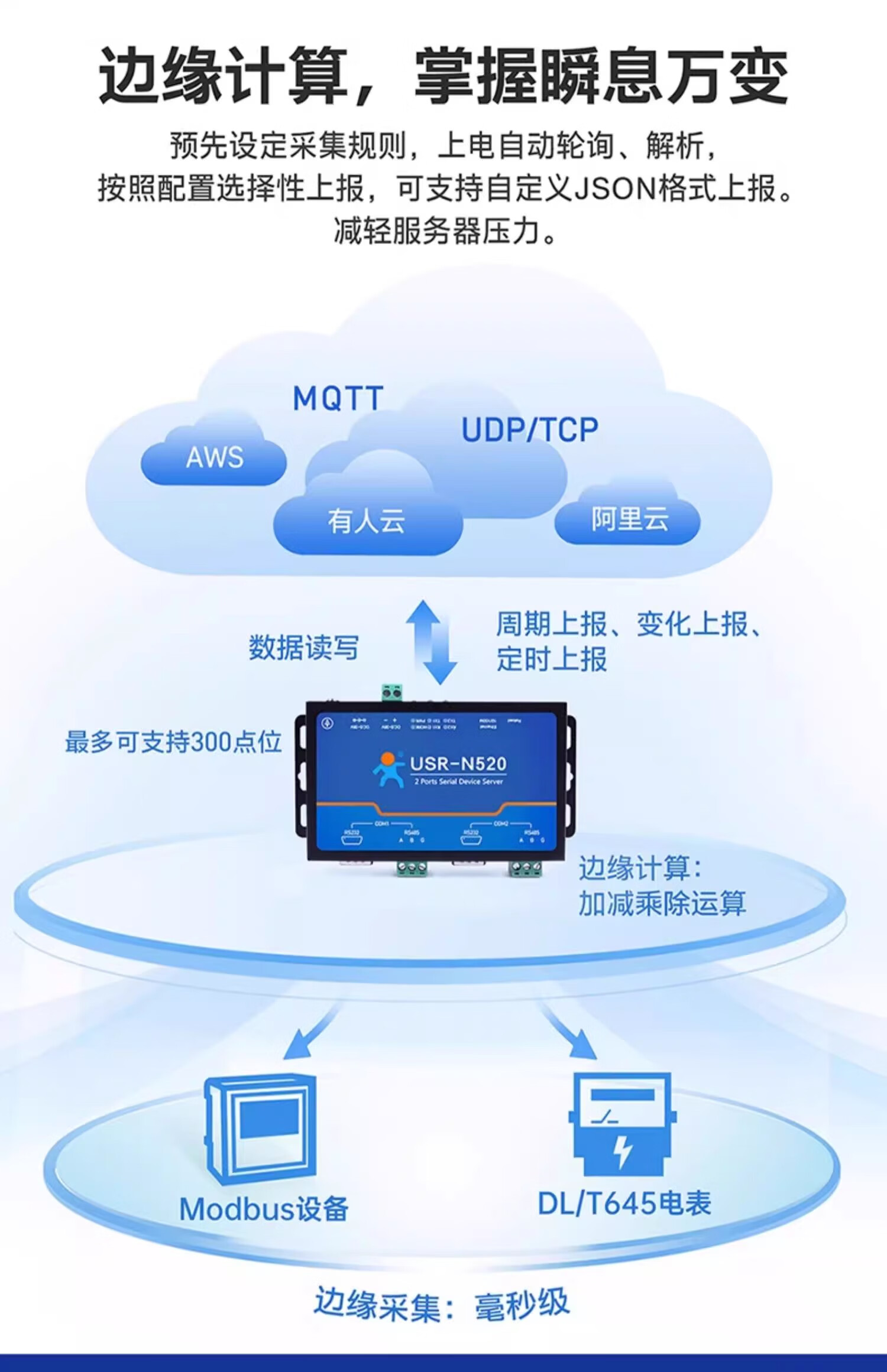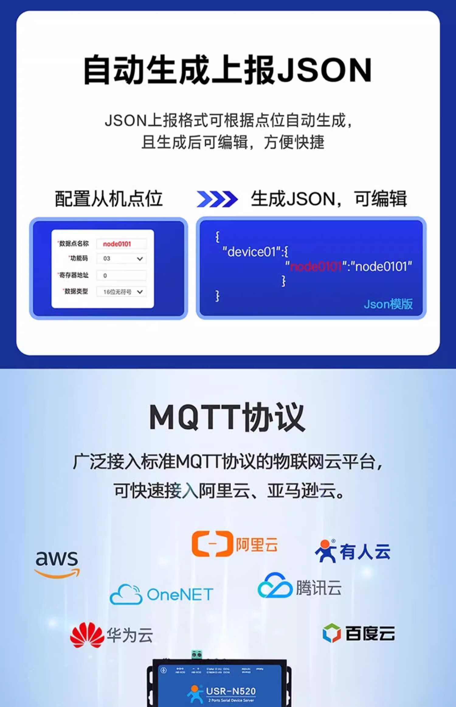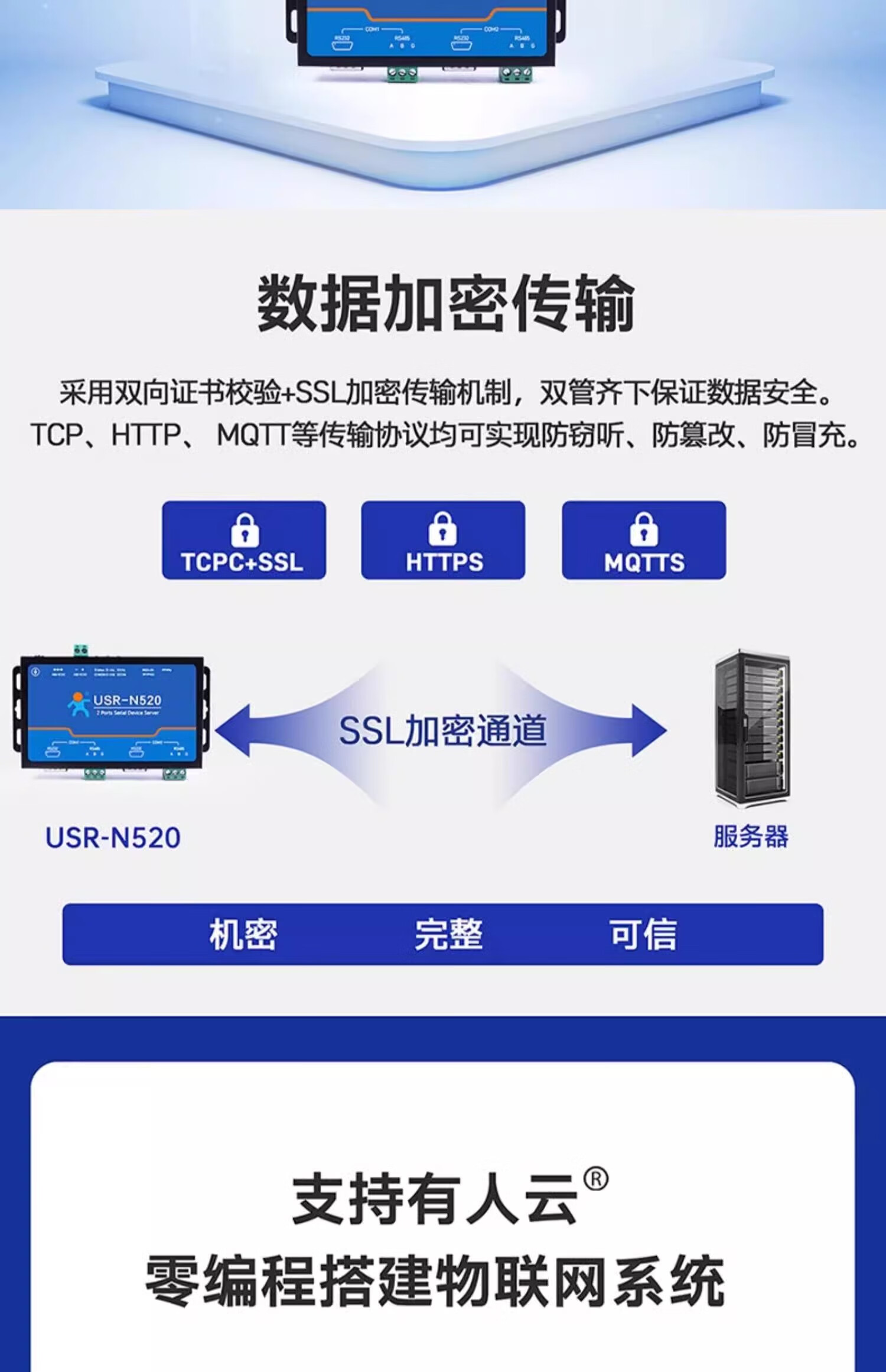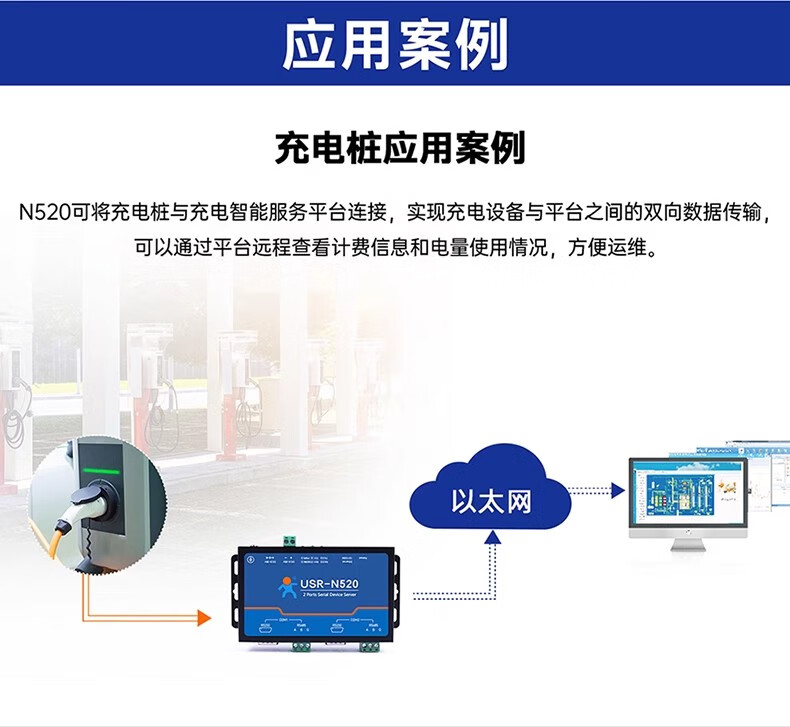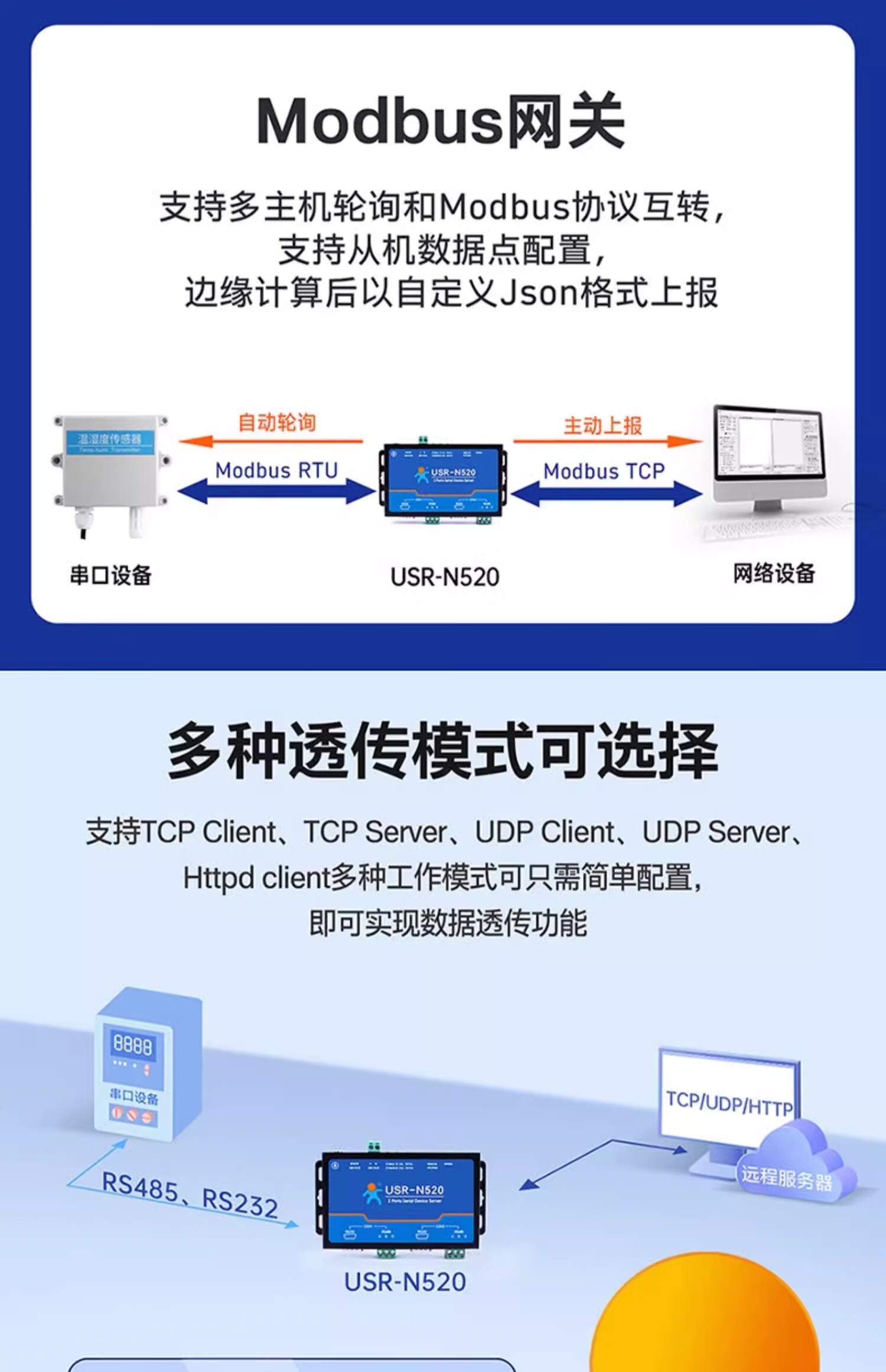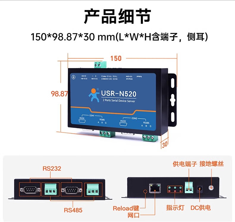 Renmin Internet of Things RS485 dual serial port server two-way transparent transmission edge collection calculation automatic reporting USR-N520-H7-6