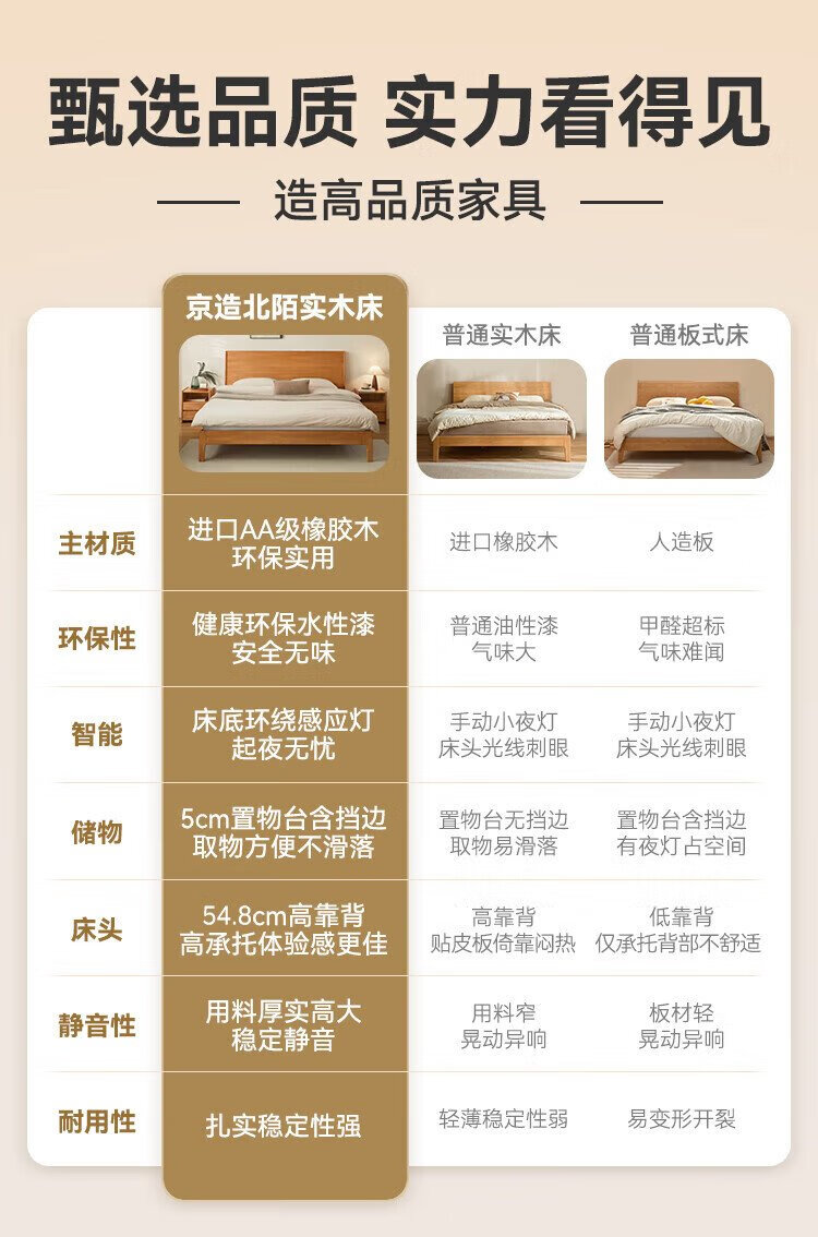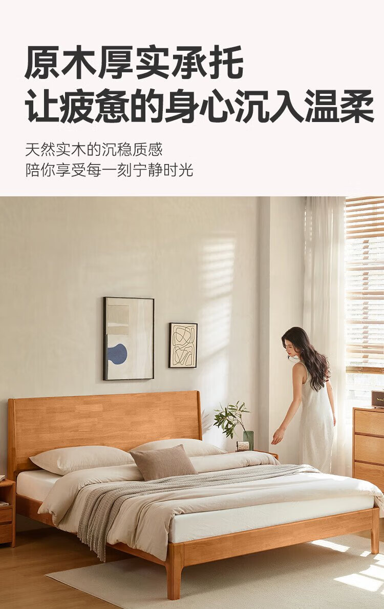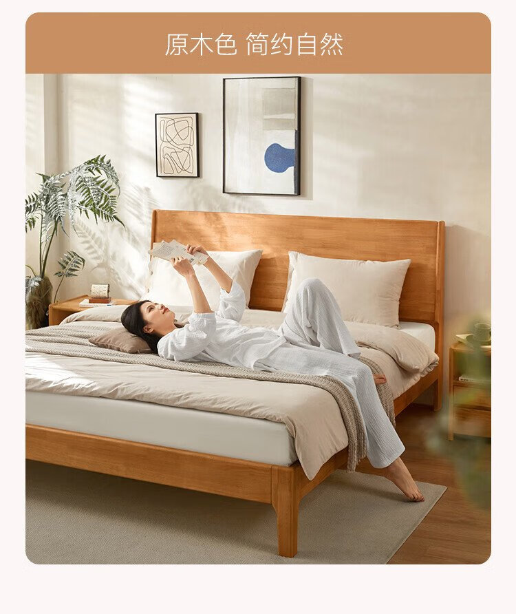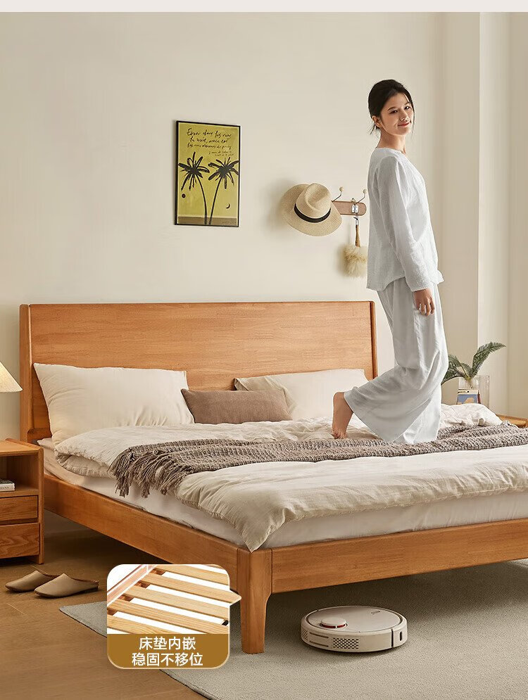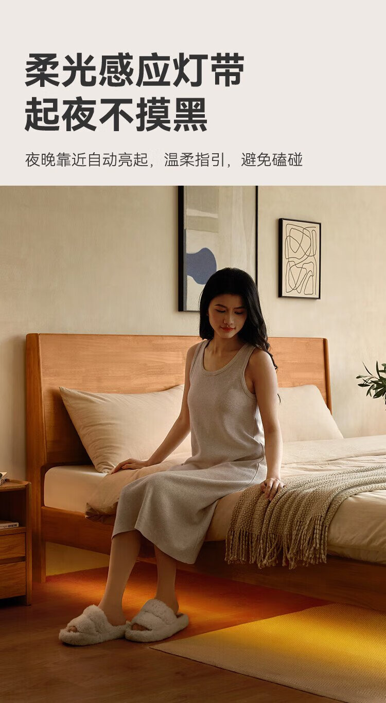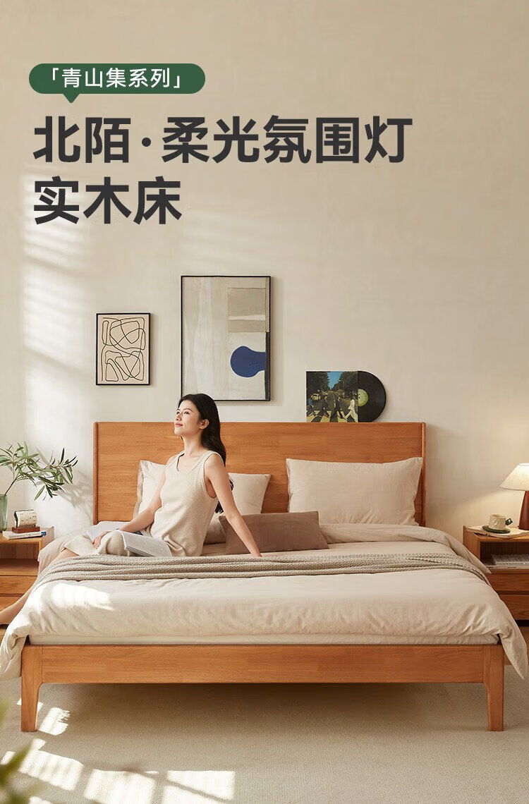 Beimo solid wood bed made in Tokyo, large board supporting soft light atmosphere lamp master bedroom double bed 1.8x2 meters solid wood color