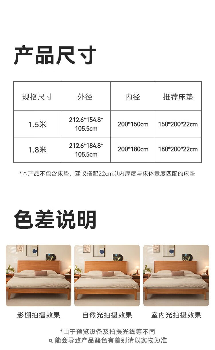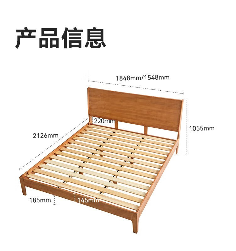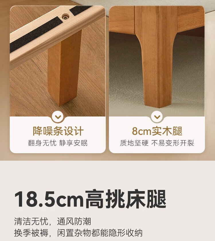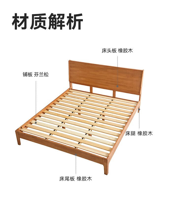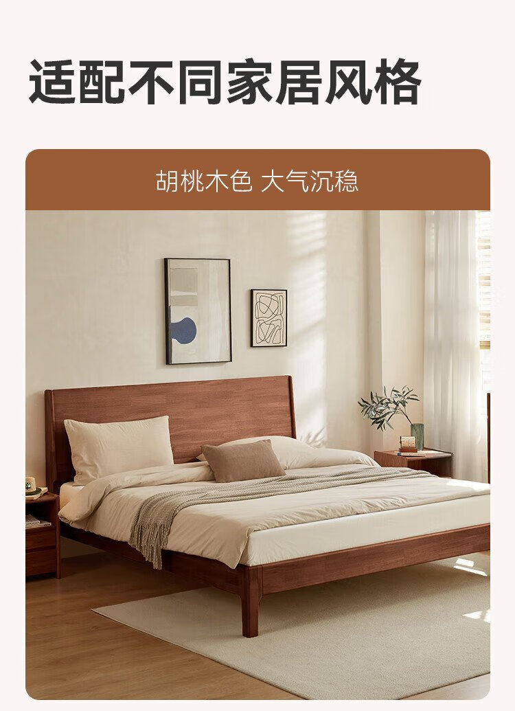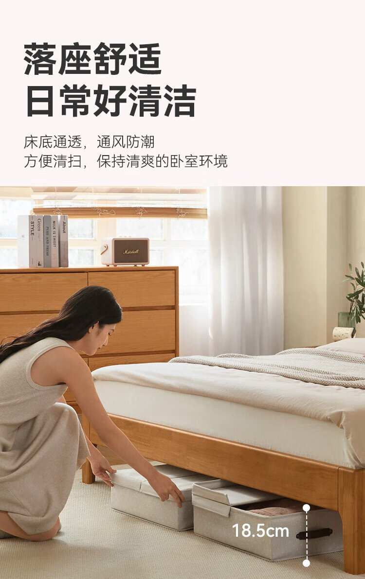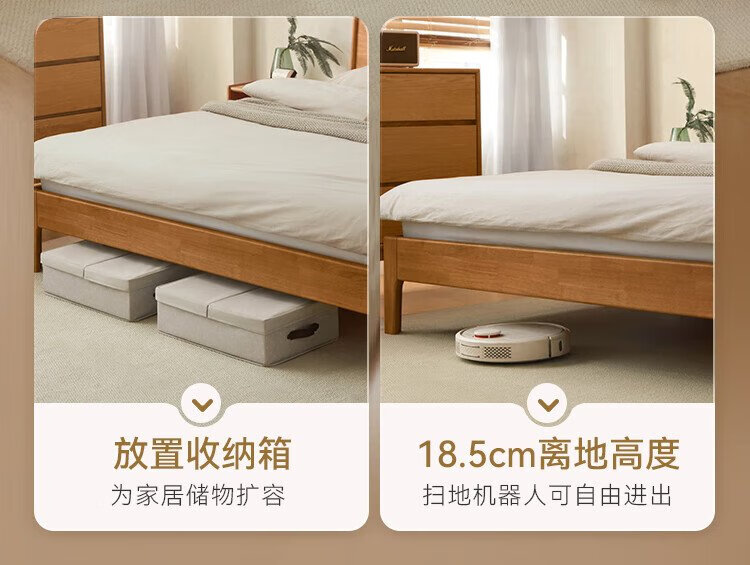 Beimo solid wood bed made in Tokyo, large board supporting soft light atmosphere lamp master bedroom double bed 1.8x2 meters solid wood color