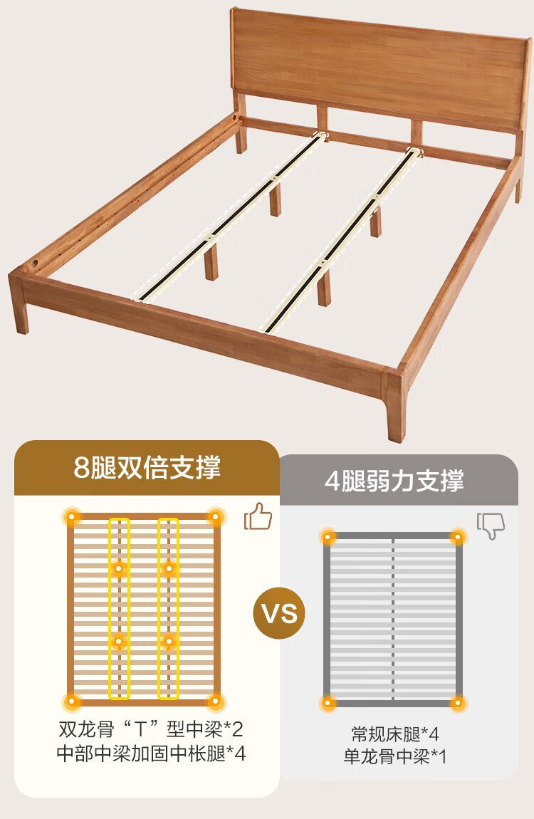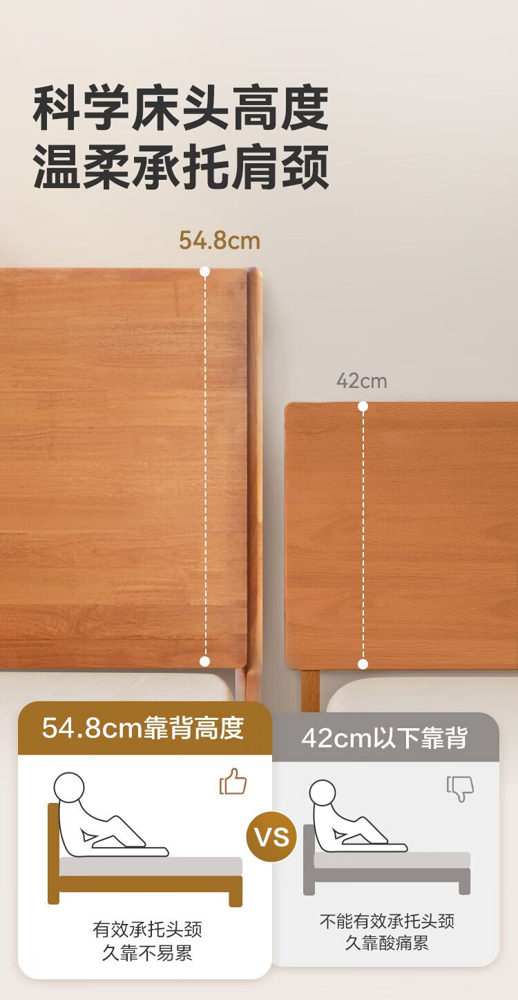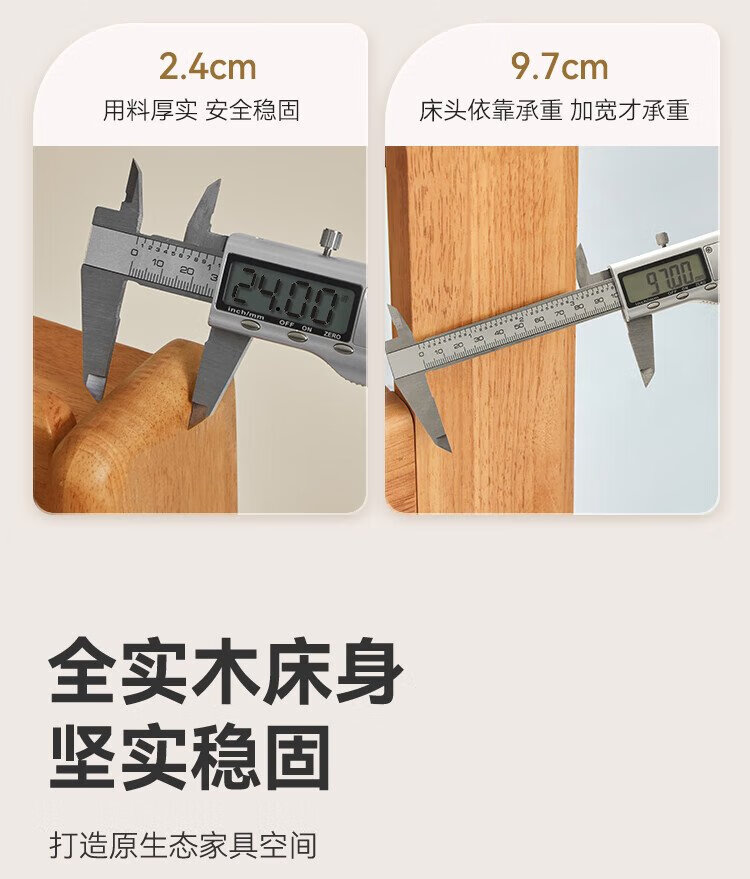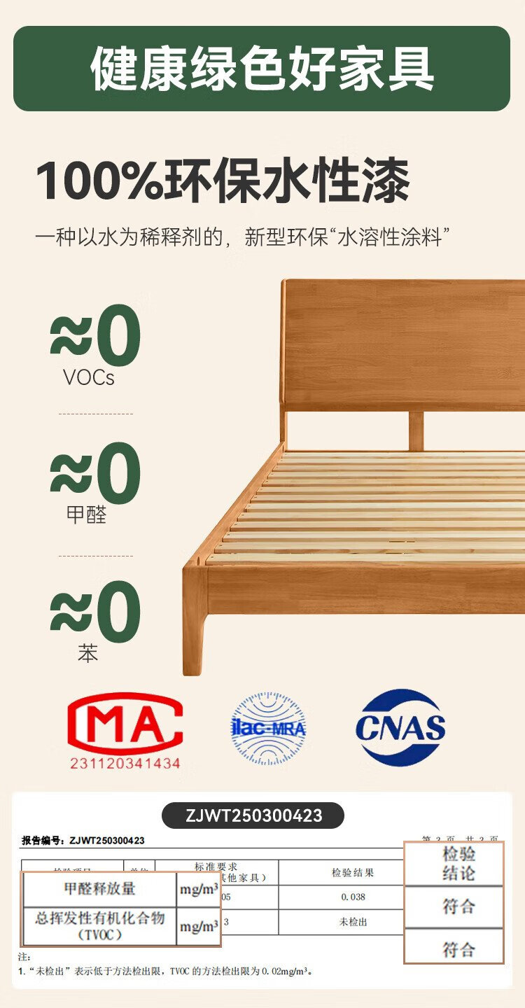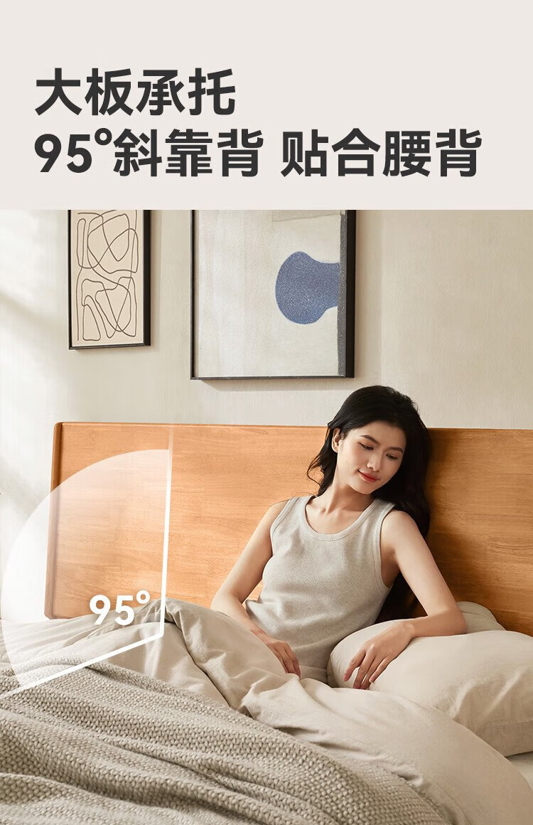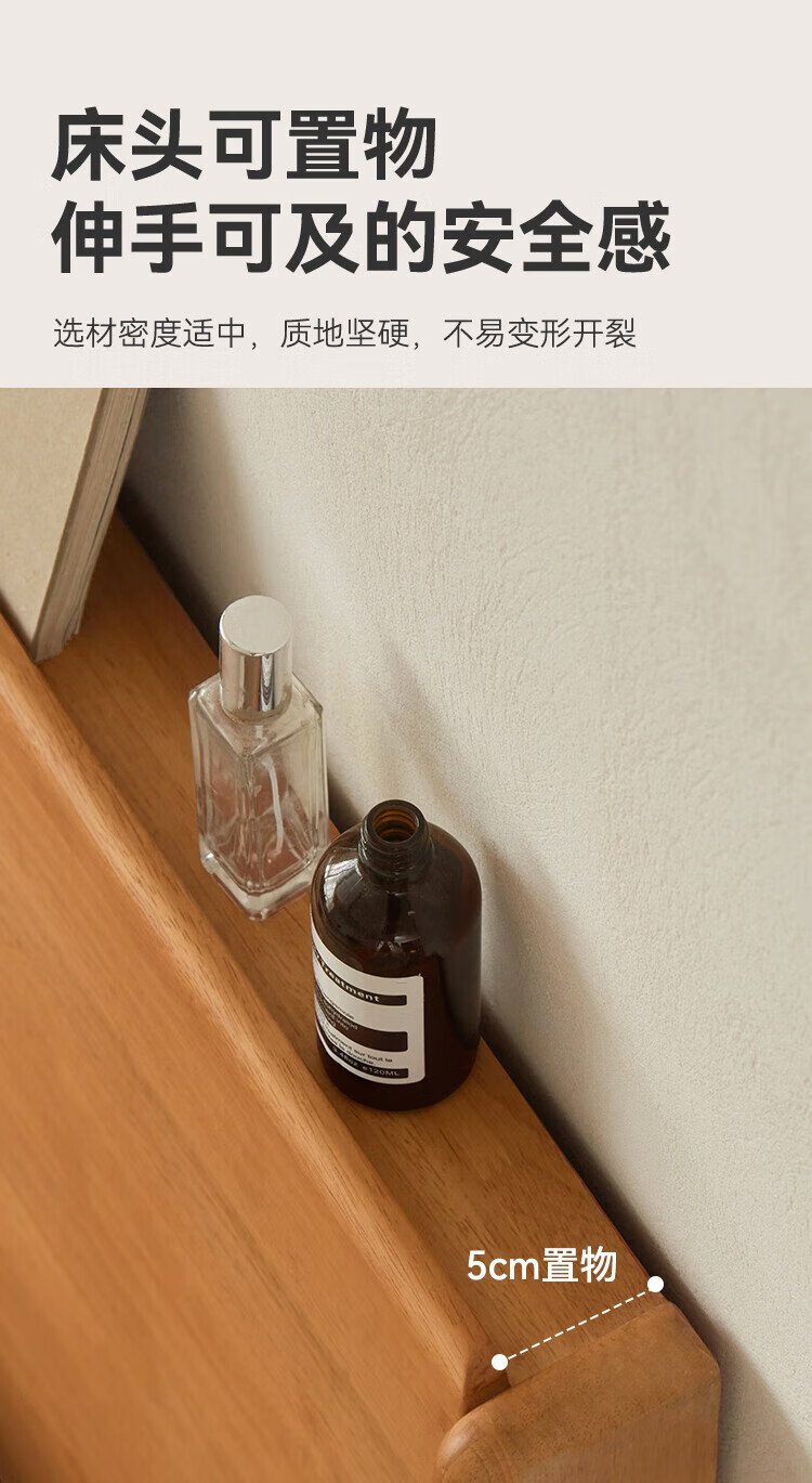 Beimo solid wood bed made in Tokyo, large board supporting soft light atmosphere lamp master bedroom double bed 1.8x2 meters solid wood color