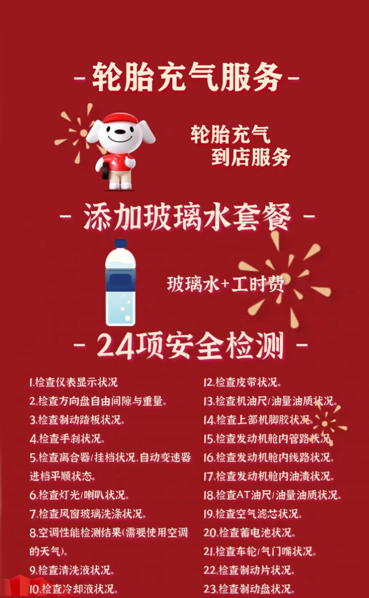 Beijing Maintenance Car Owner Exclusive In-store Gift Package Adding Glass Water + Tire Inflation + 24 Safety Inspections
