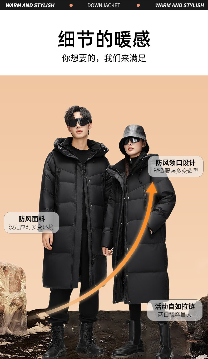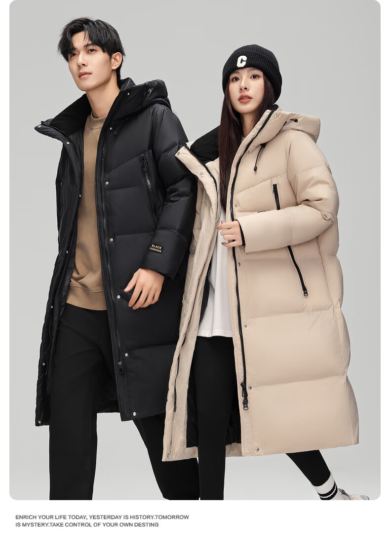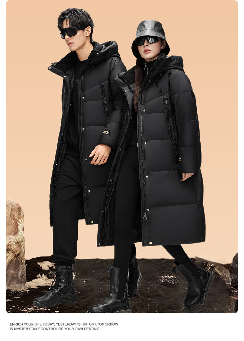 YAYA luxury gold down jacket for men and women, winter extreme cold long couple style over-the-knee thickened warm jacket