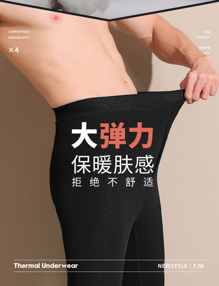 Flying in the Snow 10A Antibacterial Far Infrared Warming 2 Pairs of Autumn Pants Men's Warm Pants Seamless Leggings Cotton Pants Winter New Product