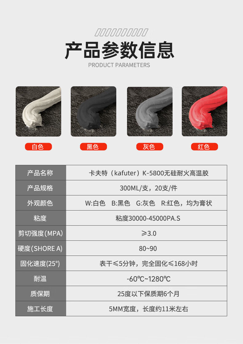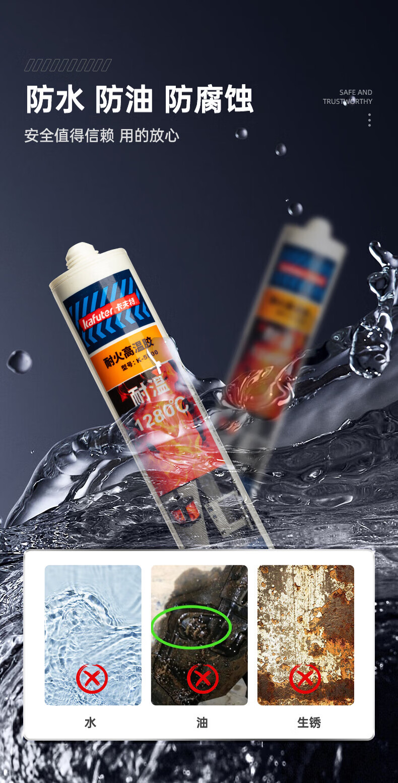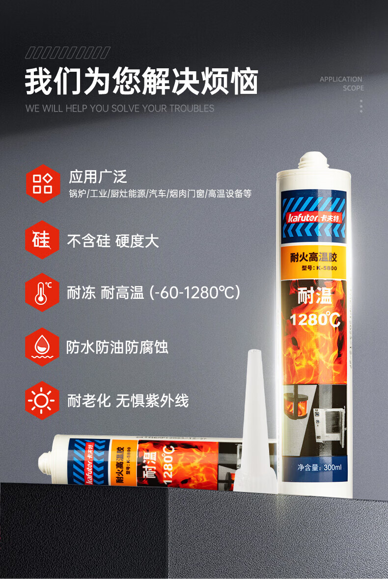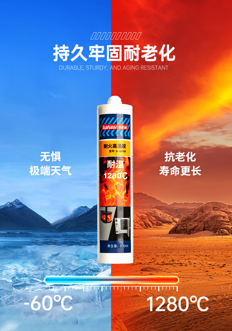 Kafter fire retardant glue K-5800 high temperature resistant sealant smoke pipe range hood exhaust pipe waterproof mildew proof flame retardant glass glue structural glue white 300ml