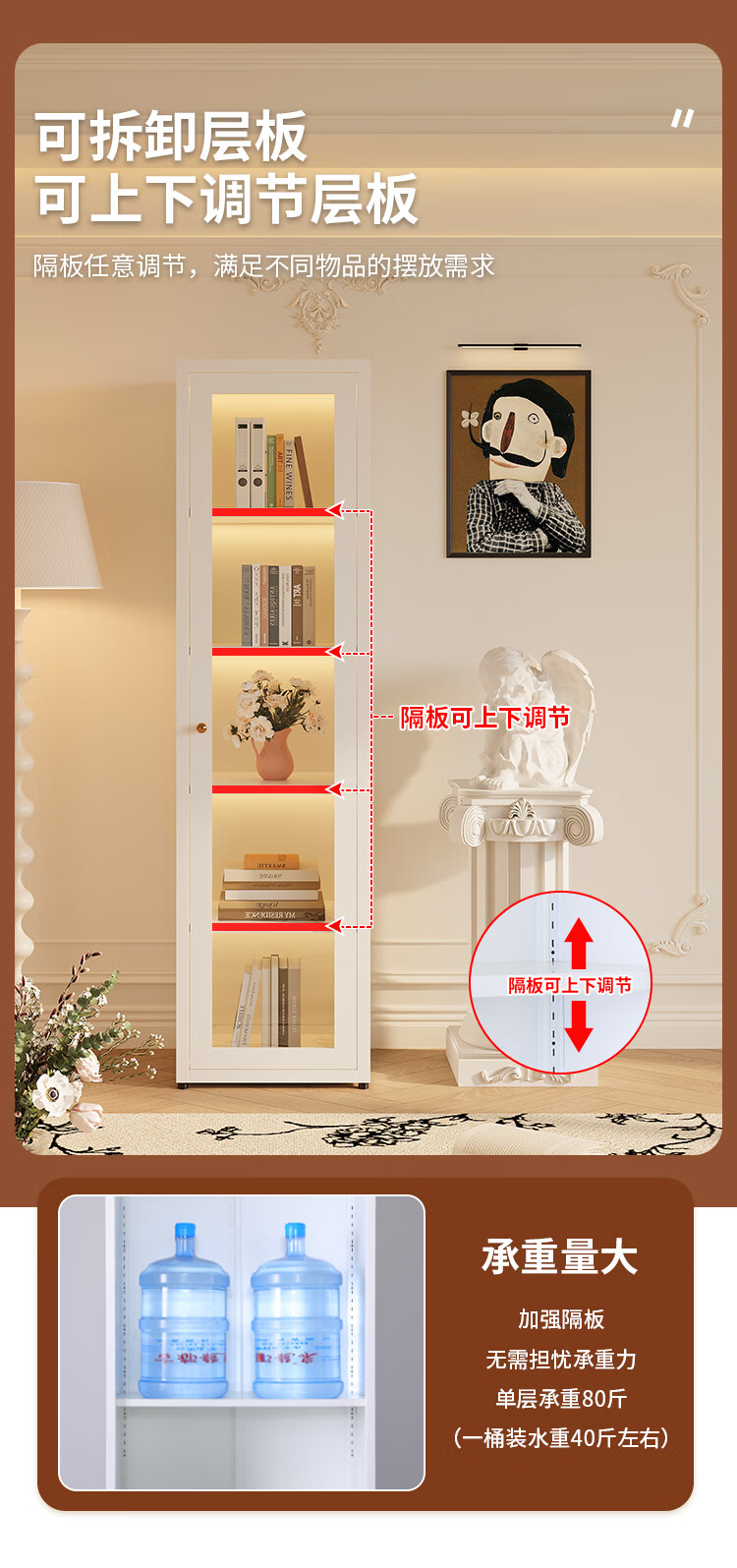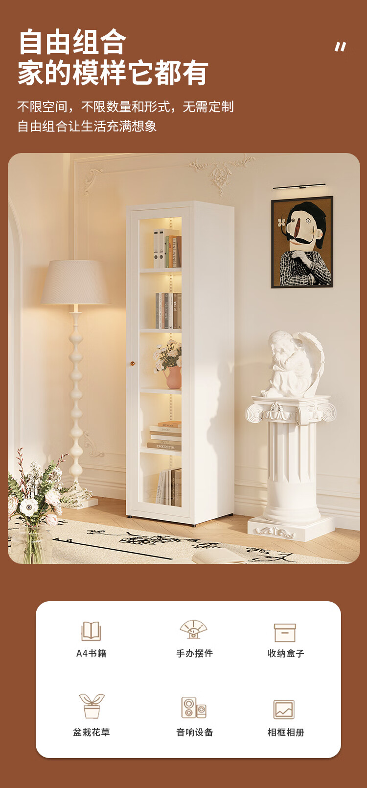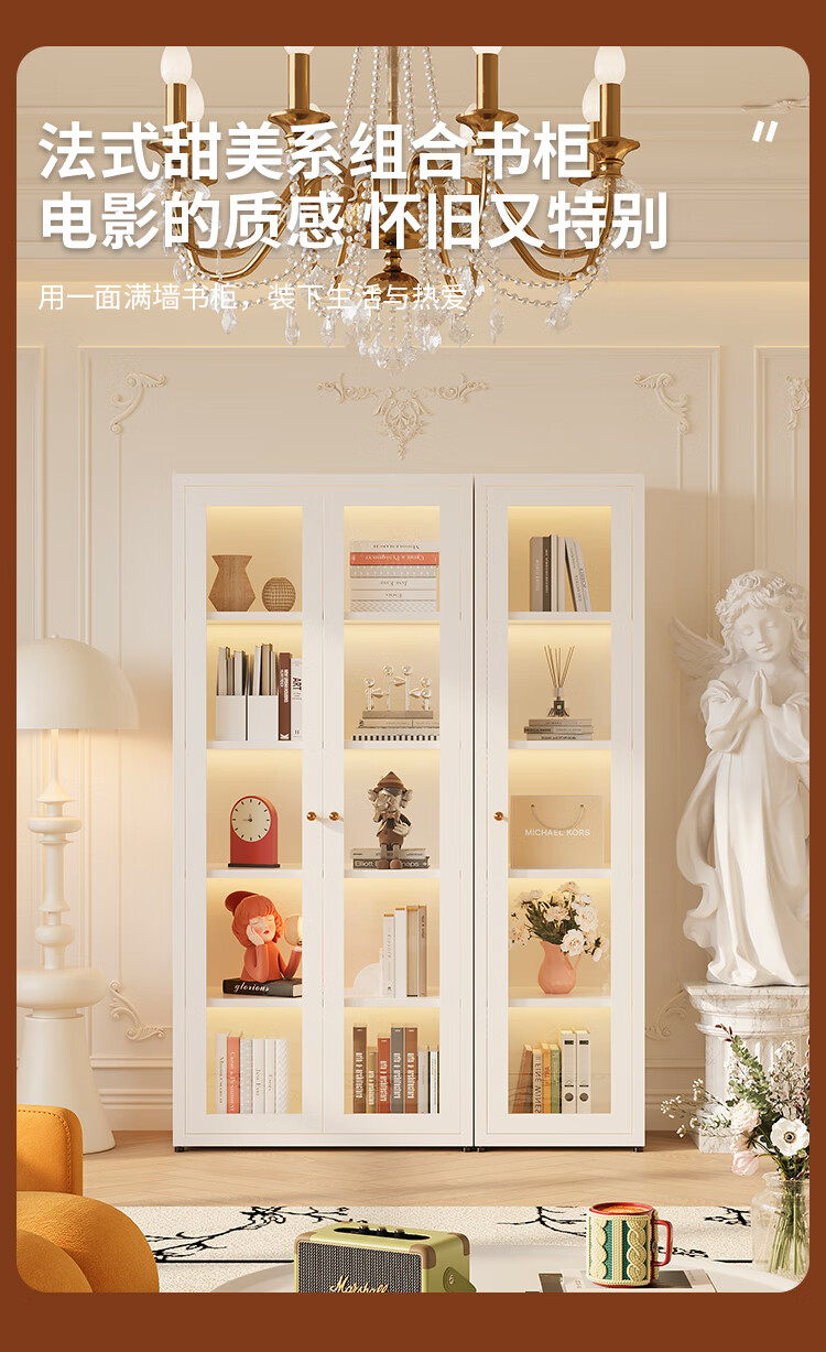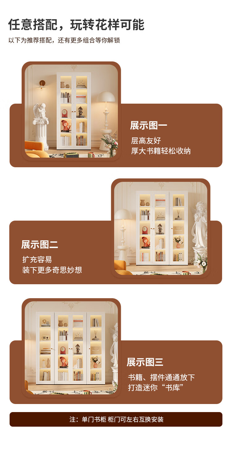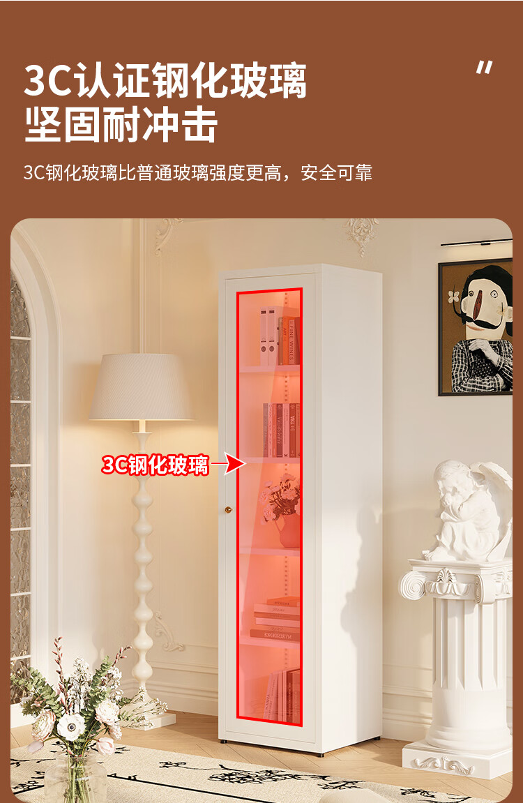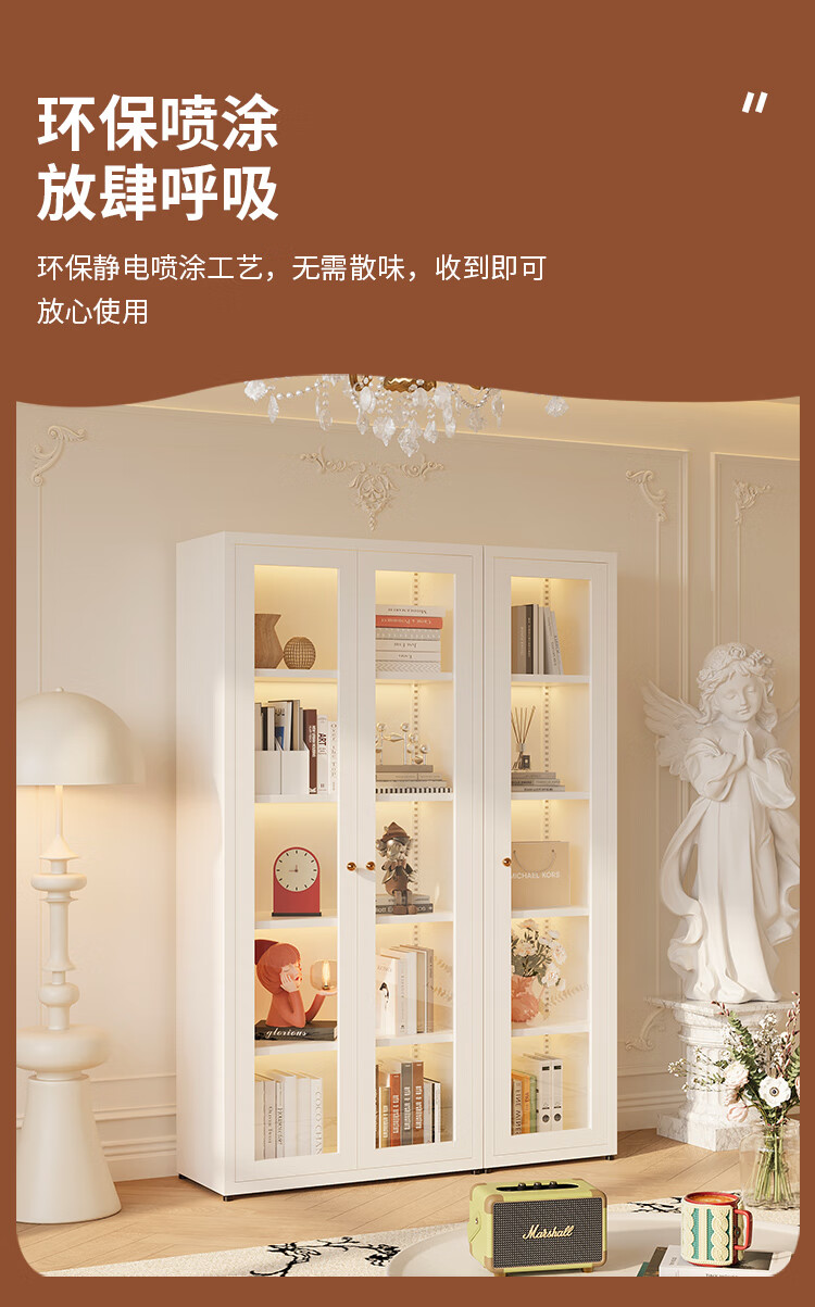 Shengnai steel bookcase narrow cabinet with door bookshelf floor-standing small living room wall-mounted bedroom multi-layer storage cabinet room storage cabinet