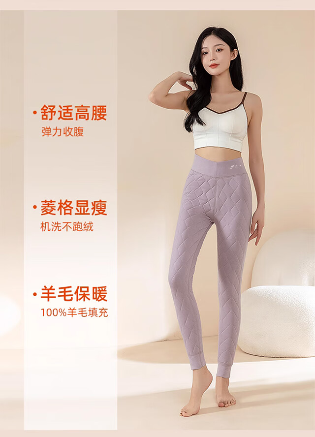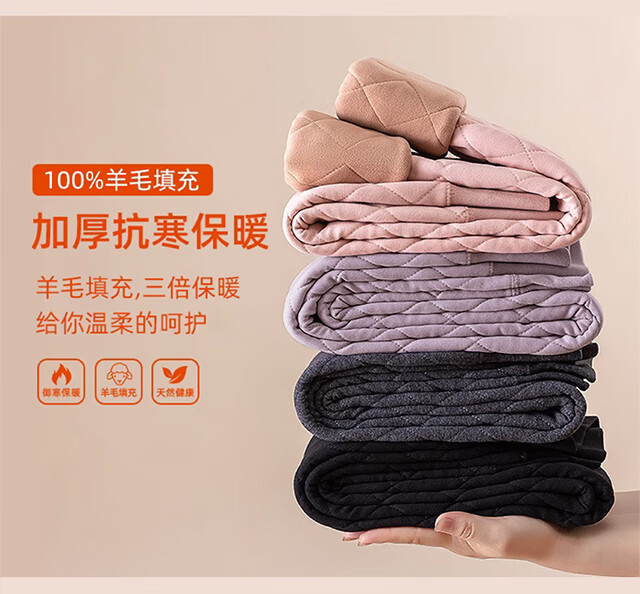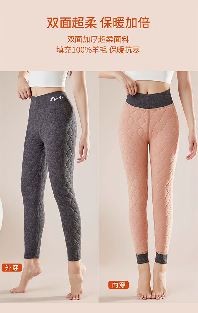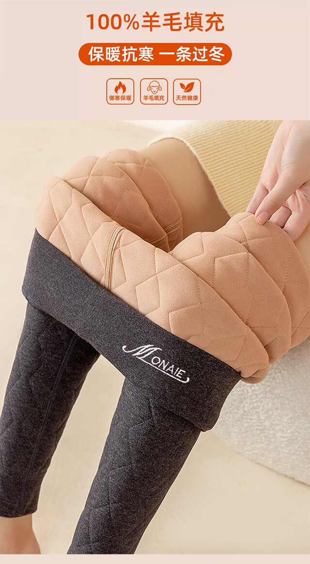 Langsha 100% wool thermal pants women's autumn and winter velvet thickened cotton pants high waist large size slim leggings