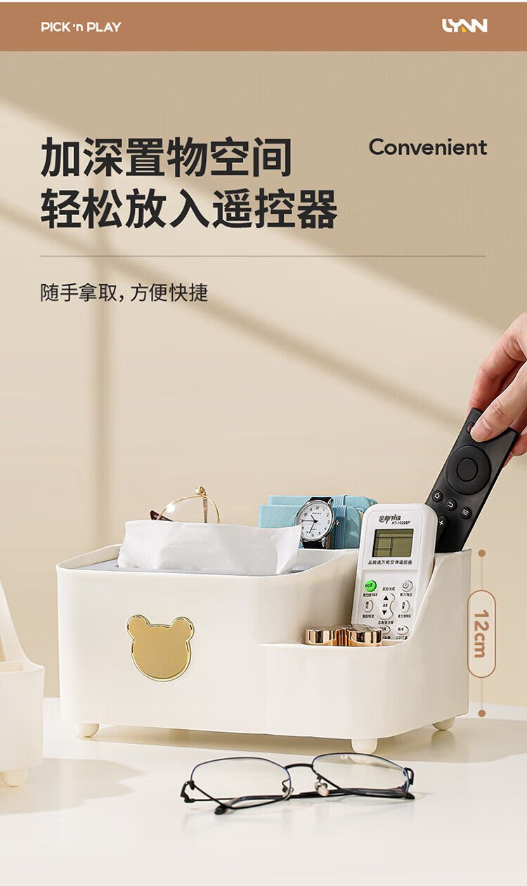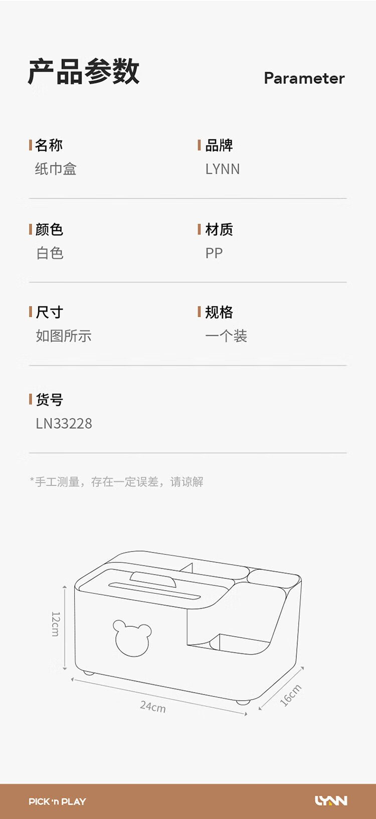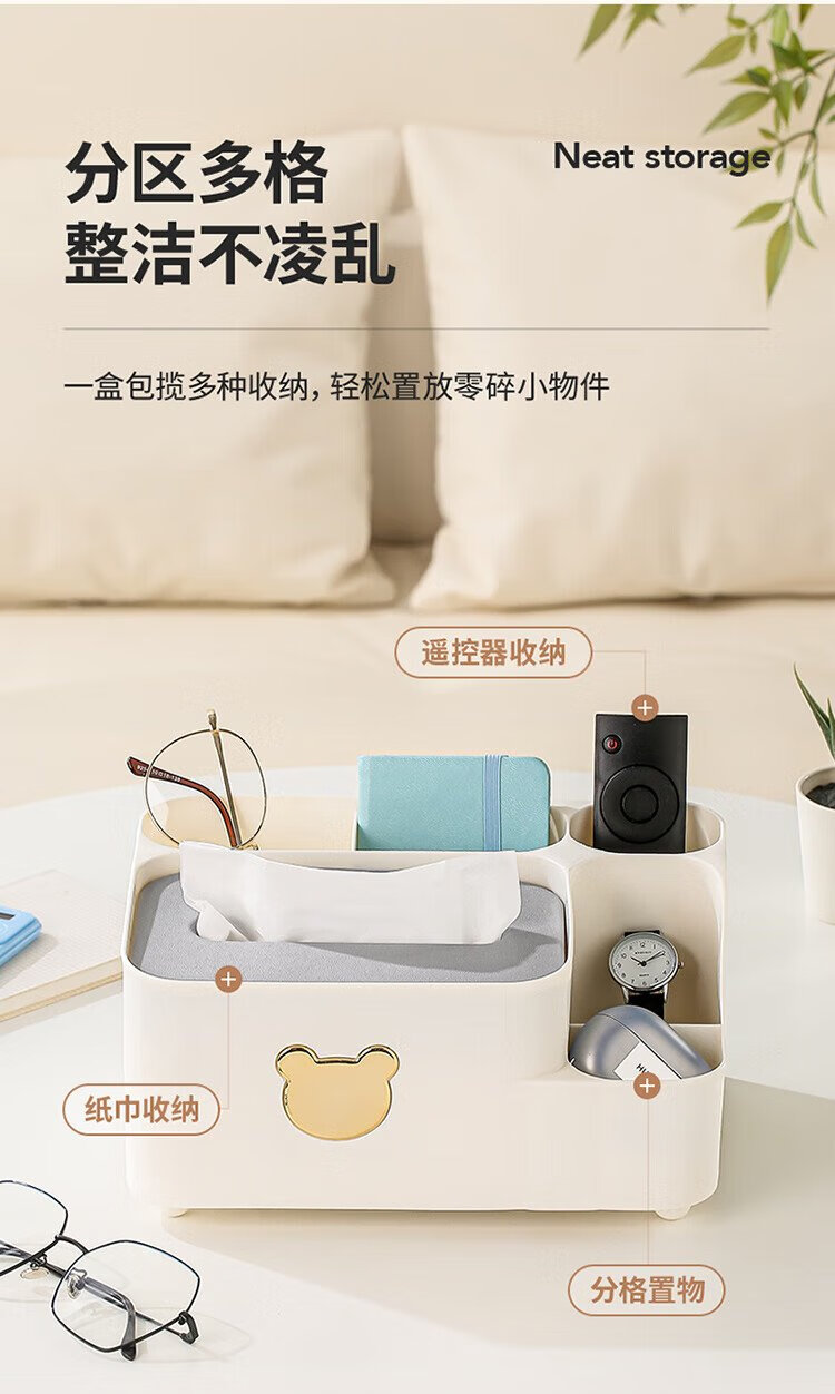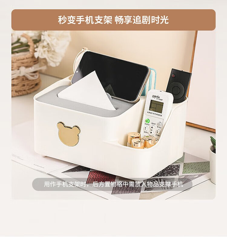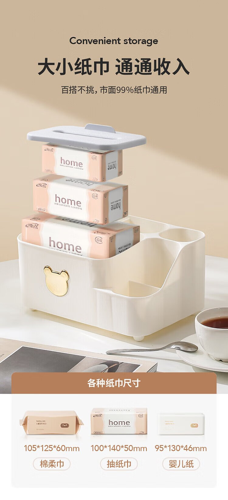 LYNN tissue box living room coffee table paper box home desktop remote control napkin storage box multi-functional gray and white
