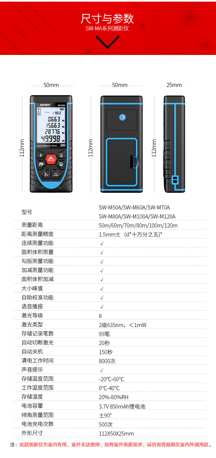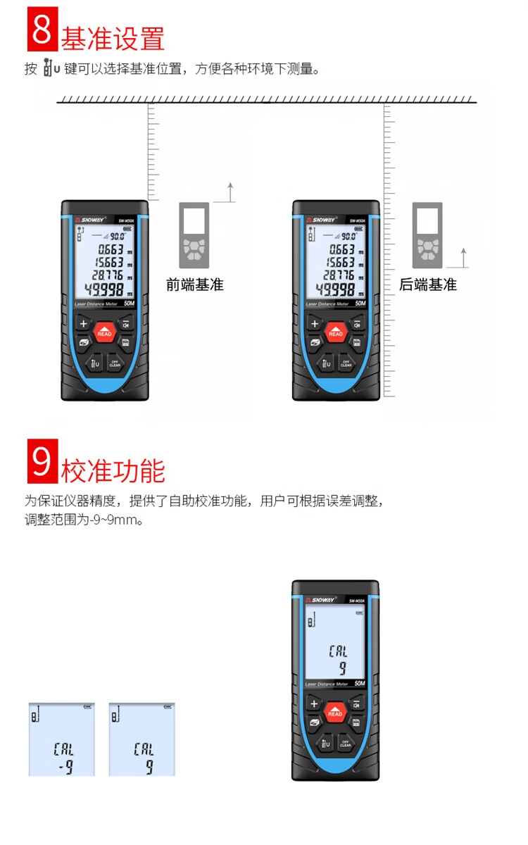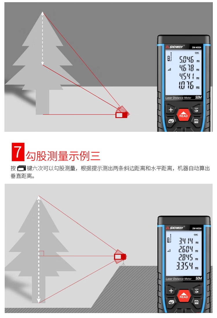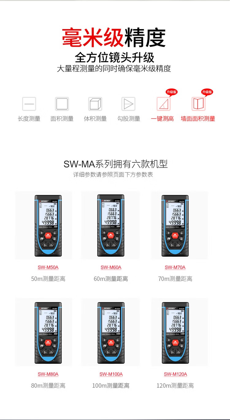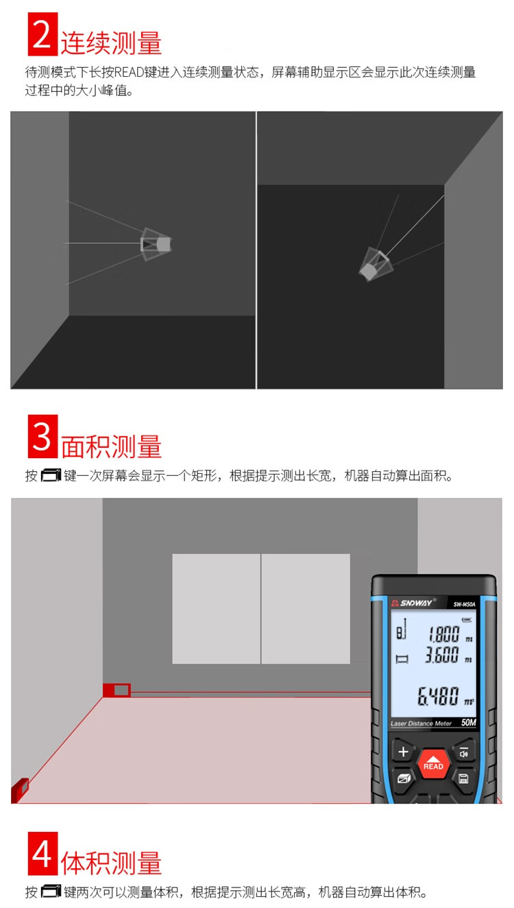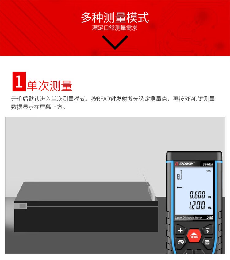 SNDWAY laser distance meter infrared measurement electronic ruler laser ruler room measuring instrument home voice model SW-M50A tape measure