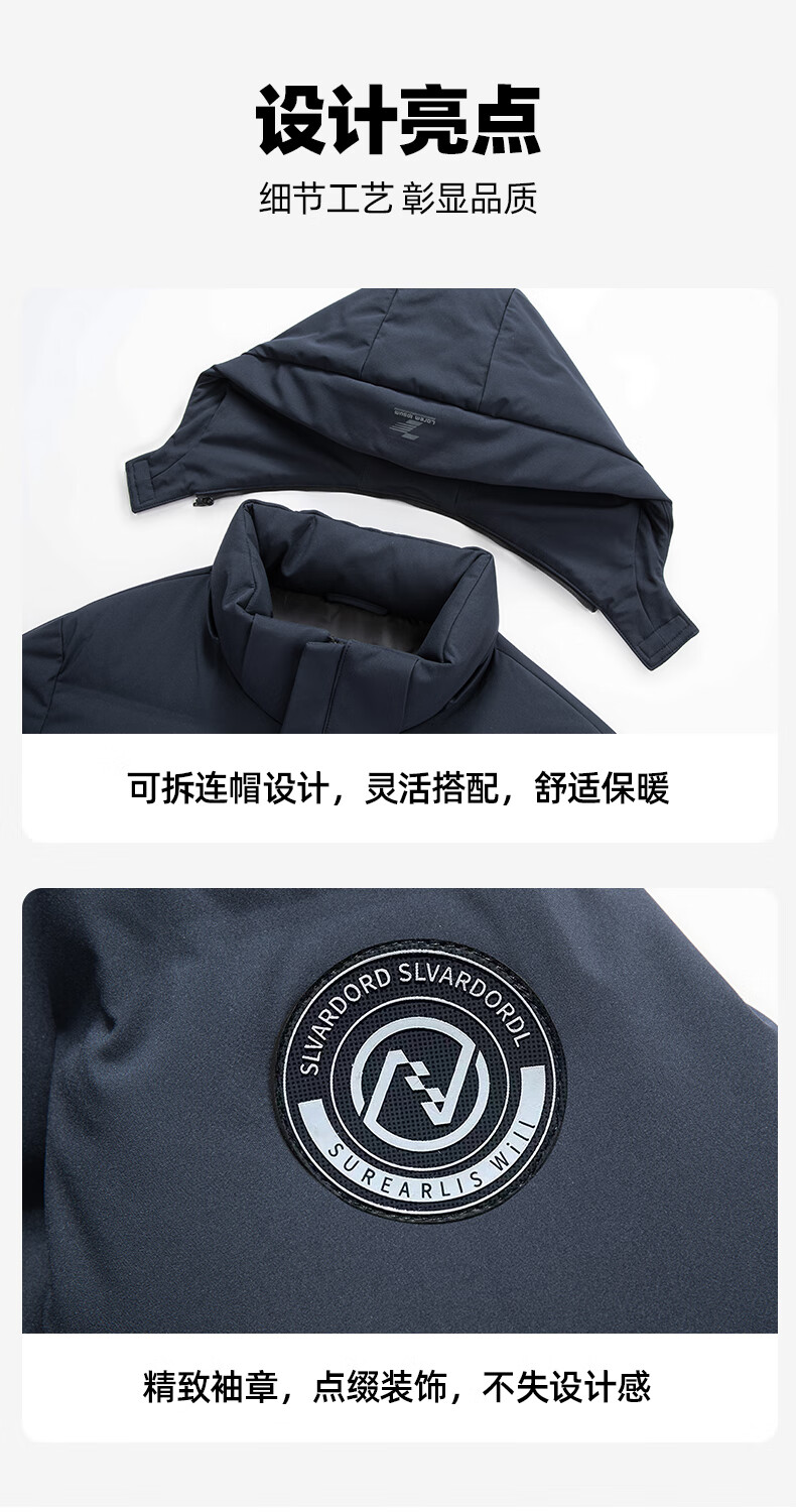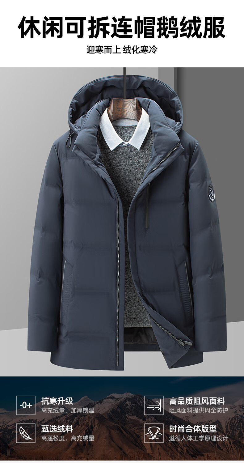 YAYA goose down jacket men's short detachable hood thick warm young and middle-aged winter casual jacket 067 black 180
