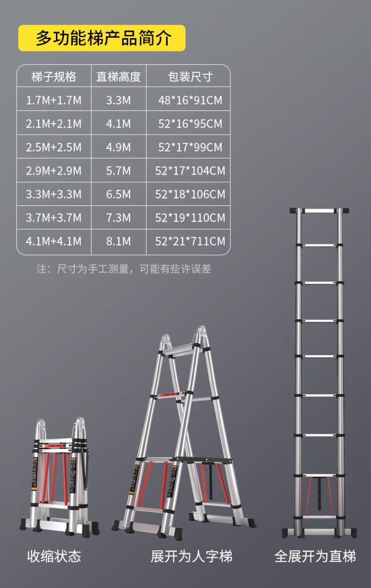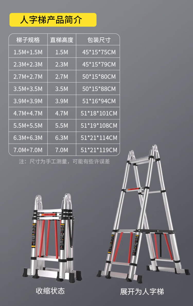 Jiang Ruibao herringbone ladder telescopic ladder thickened multi-functional aluminum alloy engineering folding staircase industrial grade ladder herringbone ladder 3.9 meters