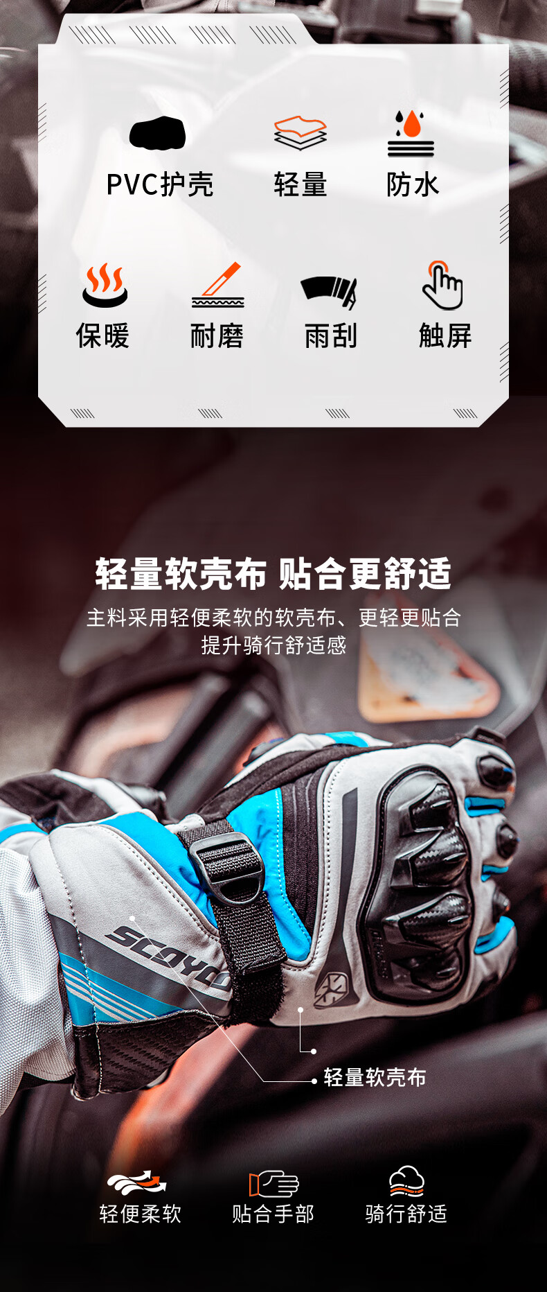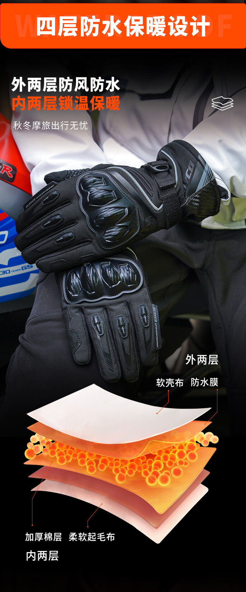 SCOYCO motorcycle gloves, riding motorcycle racing, anti-fall protection, warm touch screen rider equipment, winter gloves