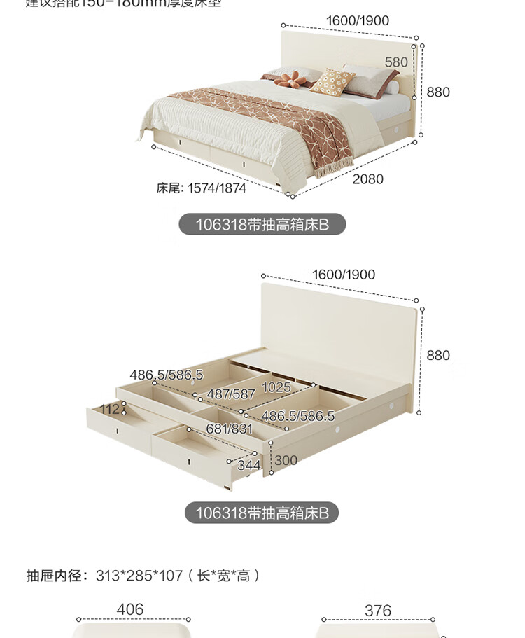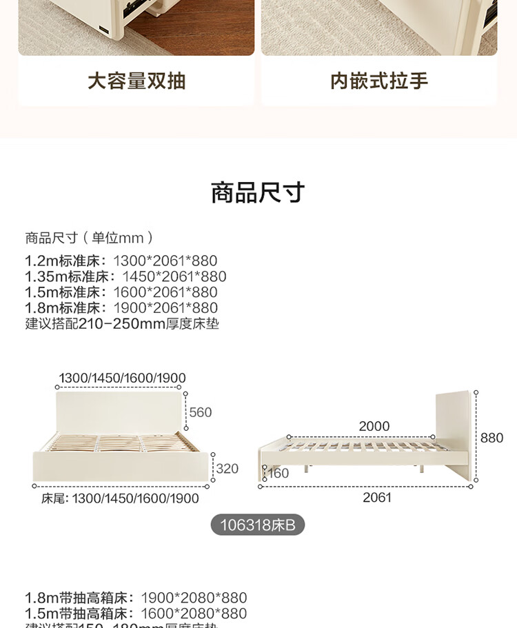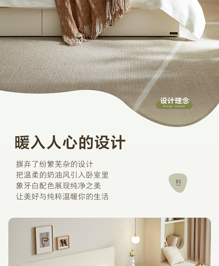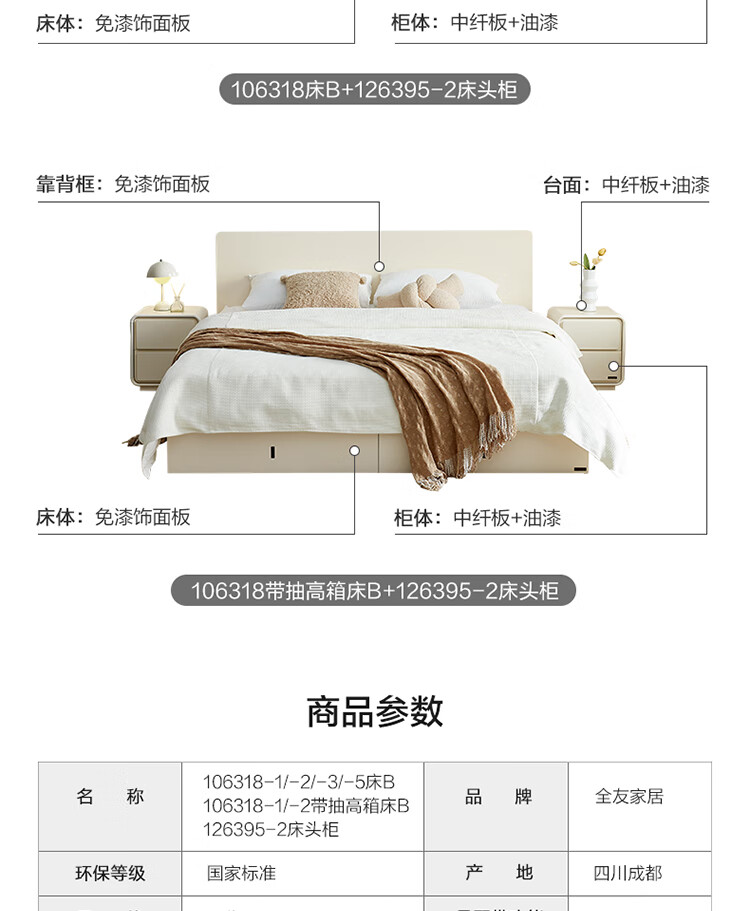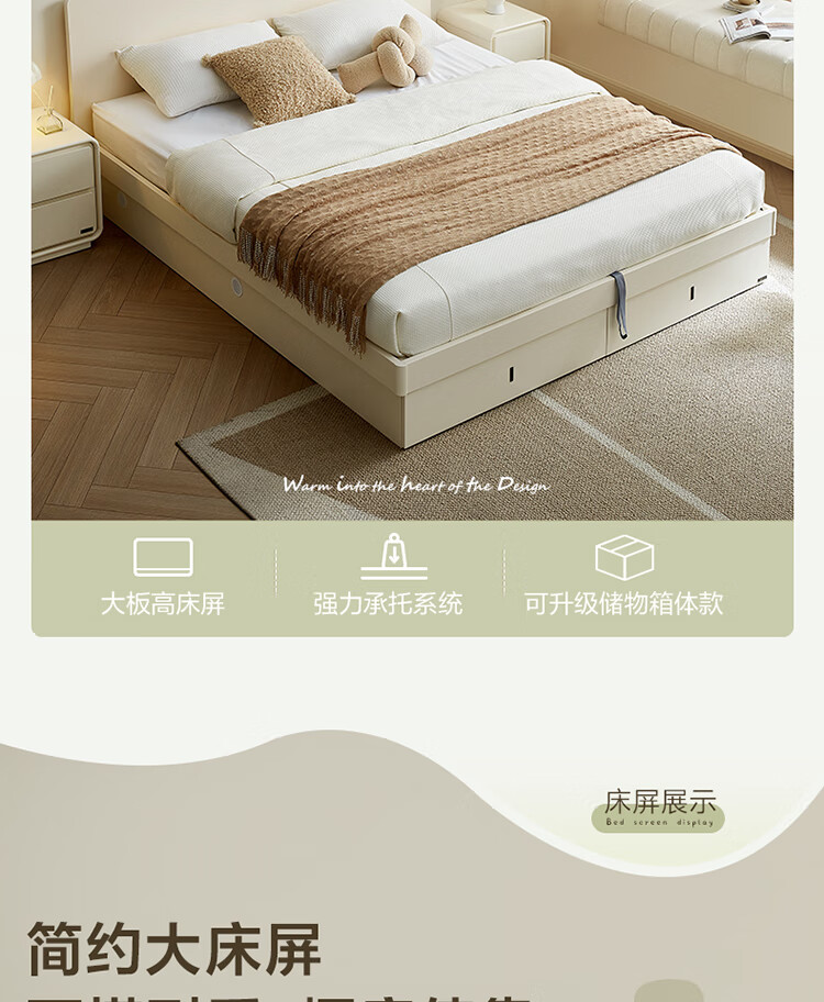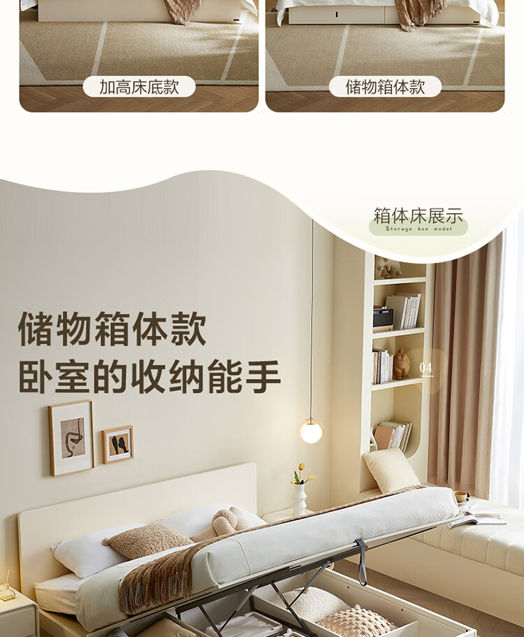 Quanyou Home Modern Simple High Box Storage Bed Cream Style Bedroom Home Double Bed 1.5mx2m Furniture