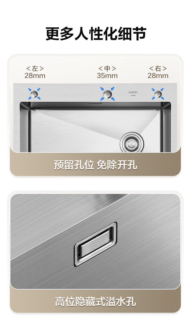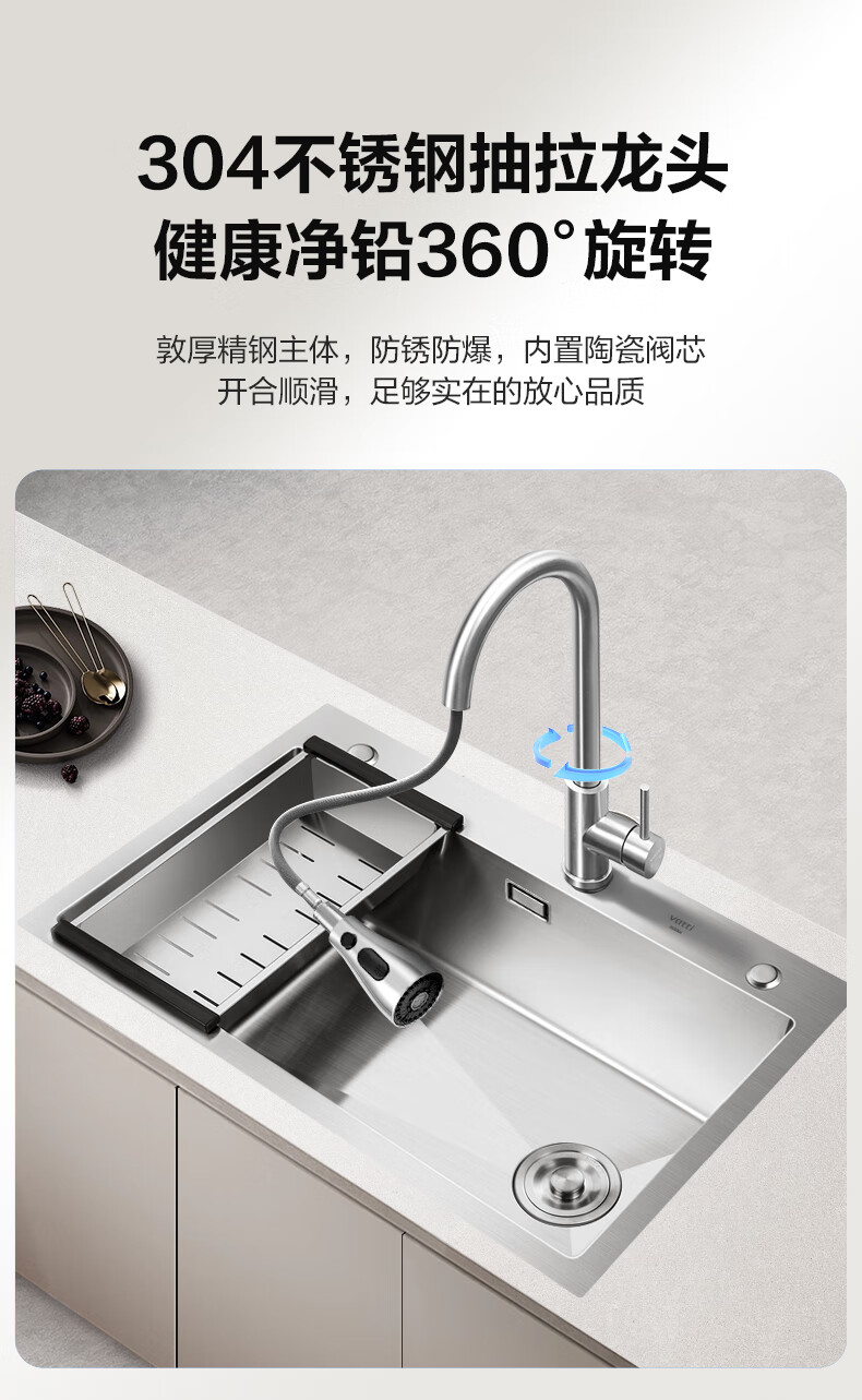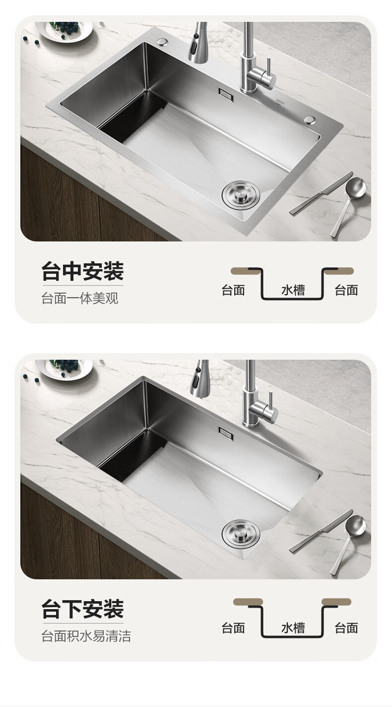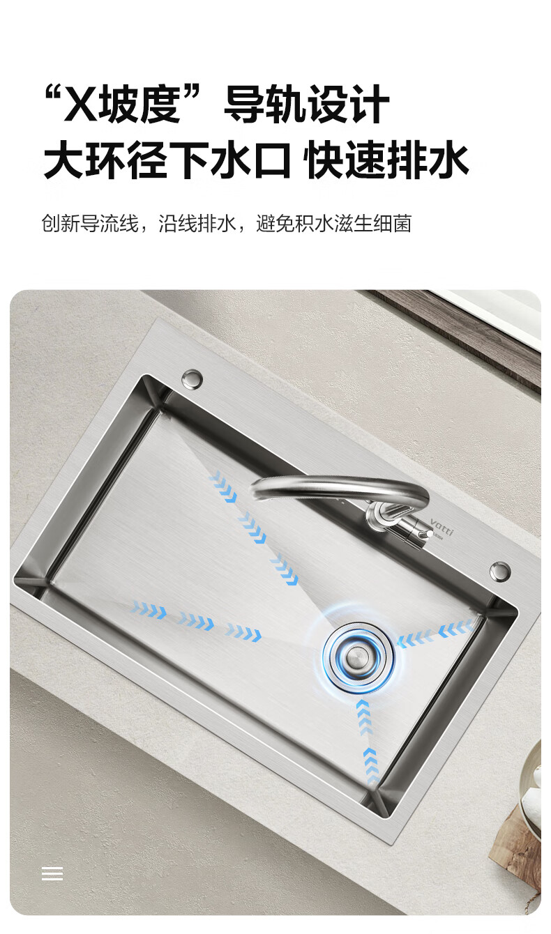 VATTI kitchen sink large single-slot dishwashing basin integrated basin 304 stainless steel multi-functional dishwashing sink vegetable sink