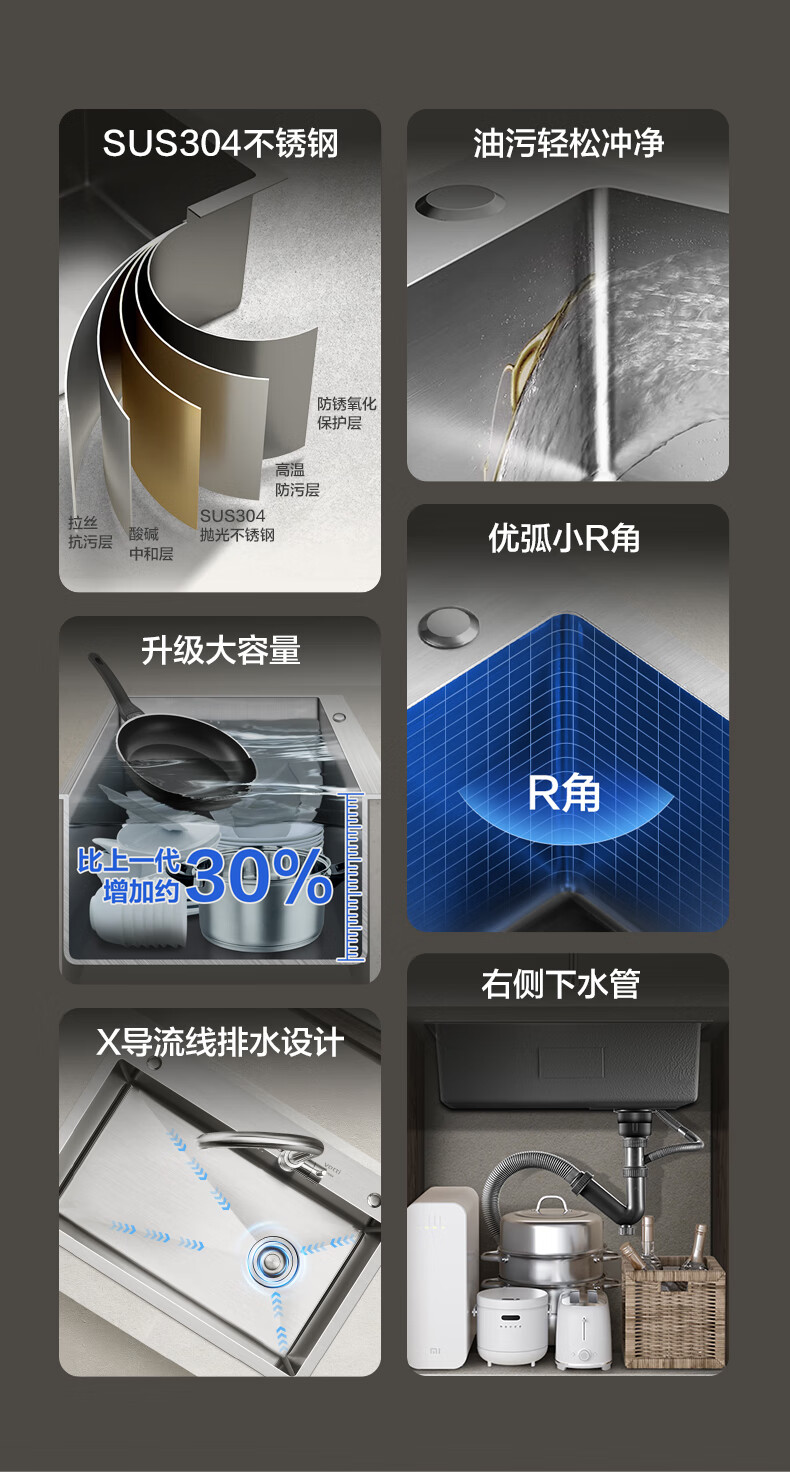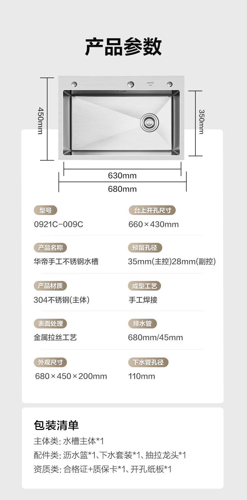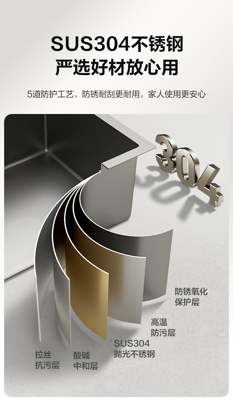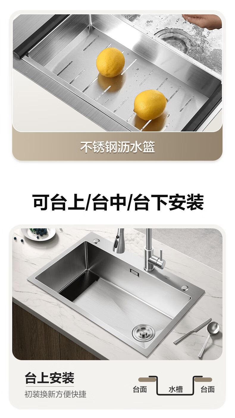 VATTI kitchen sink large single-slot dishwashing basin integrated basin 304 stainless steel multi-functional dishwashing sink vegetable sink