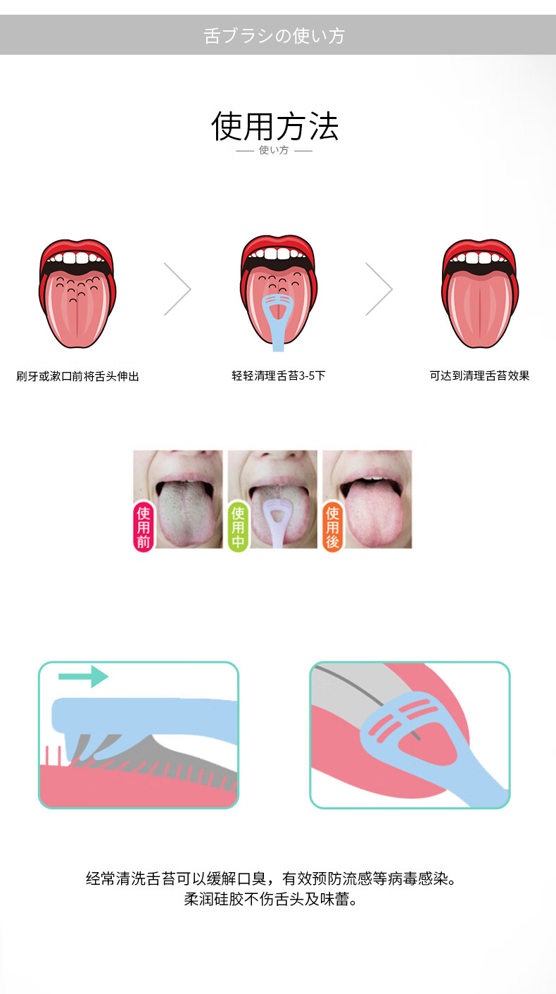 Ci Medical Japan imported silicone tongue brush tongue scraper tongue cleaner tongue brush tongue scraper 1 pack