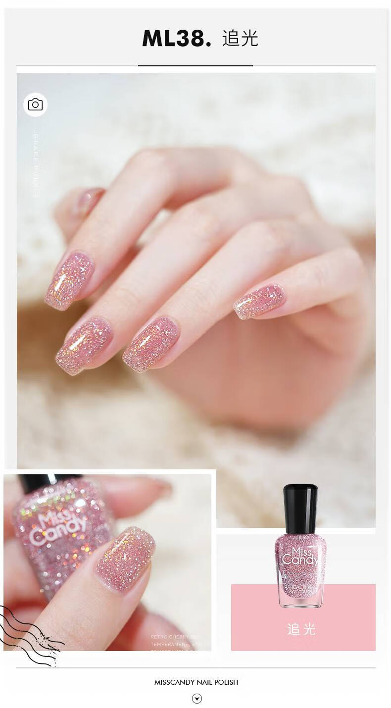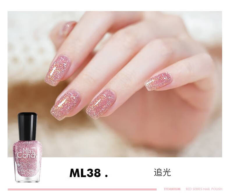 Miss Candy Whitening Fine Sparkling Diamond Explosive 15ml Nail Polish No-Bake Quick-drying Long-lasting Peelable Nail Art Sparkling Peach Powder ML38