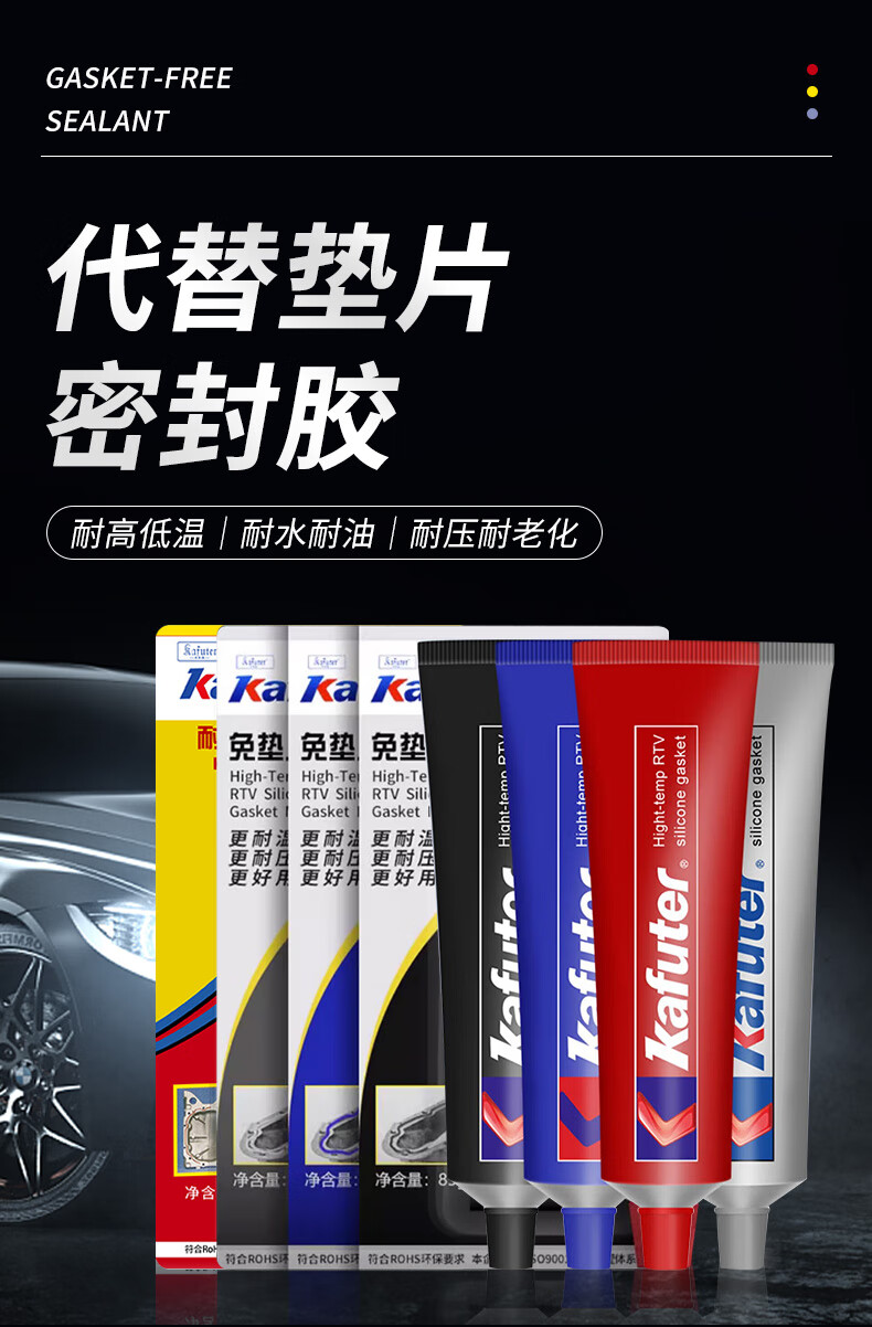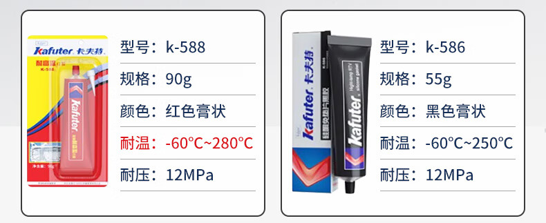 Kafter High Temperature Resistant Black Glue K-586 Gasket-Free Sealant Industrial Machinery Repair Oil Resistant and Waterproof Car Oil Pan Engine Black 85g