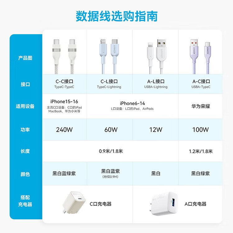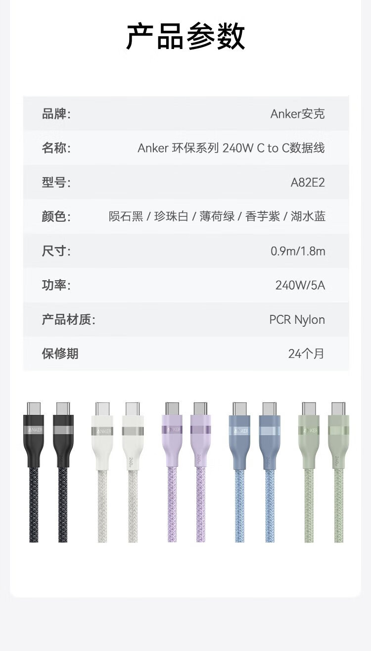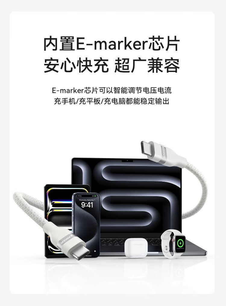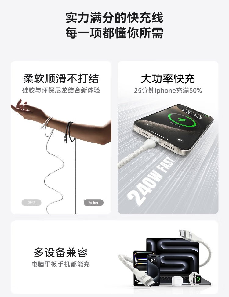 ANKER Anker Apple 17 charging cable double-ended type-c is suitable for iPhone16/15promax mobile phone Mac computer iPad Huawei Xiaomi 240W fast charging data cable 1.8m white