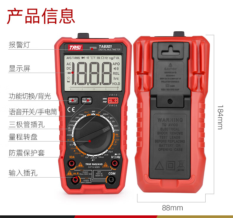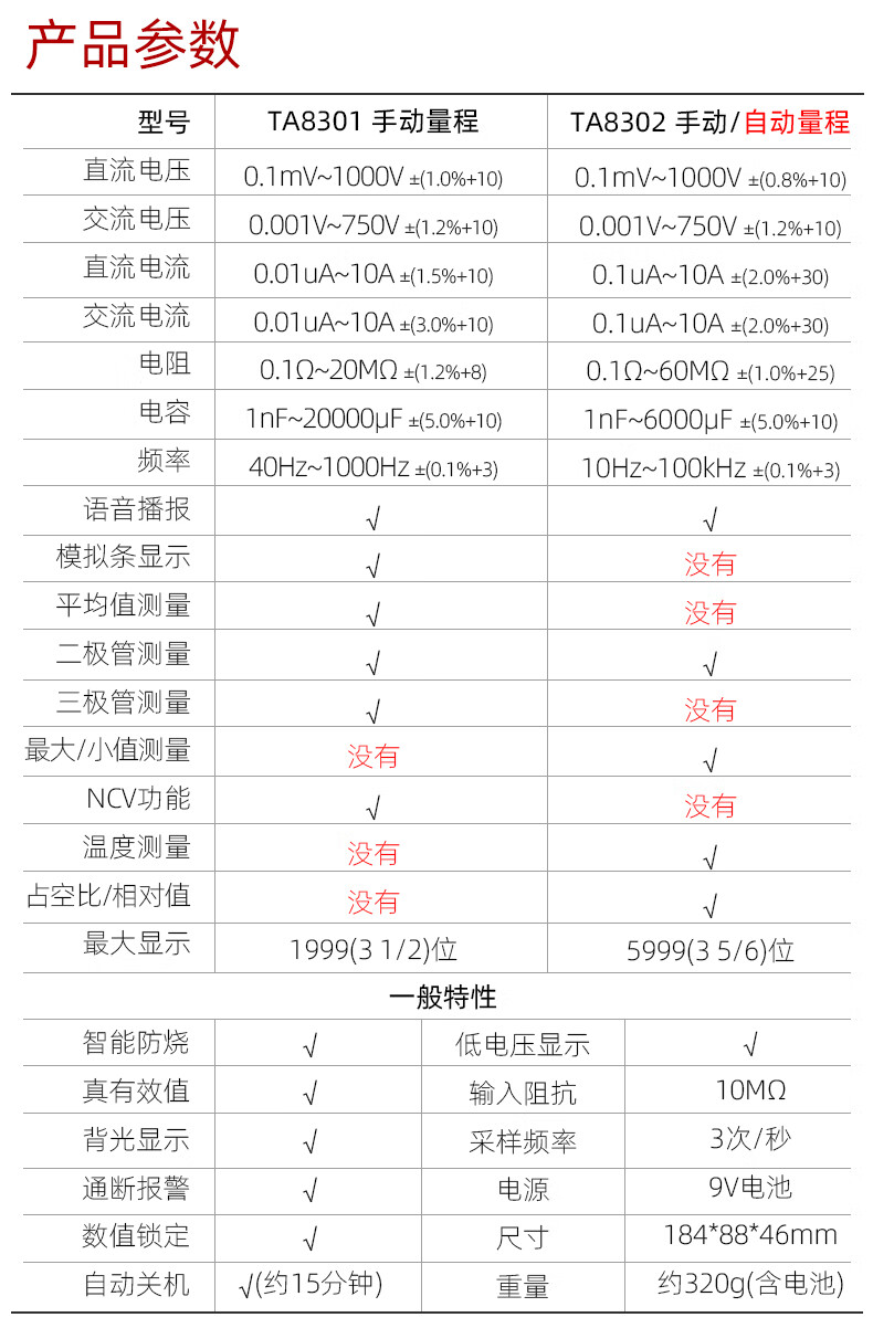 Teans multimeter digital voice broadcast automatic range intelligent anti-burn multi-function electrician multimeter TA8302