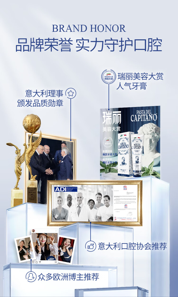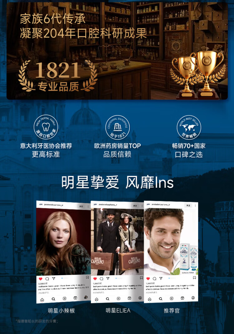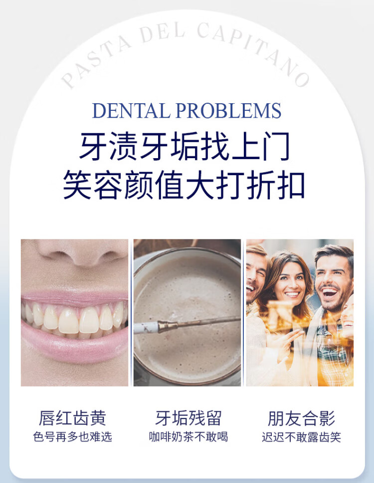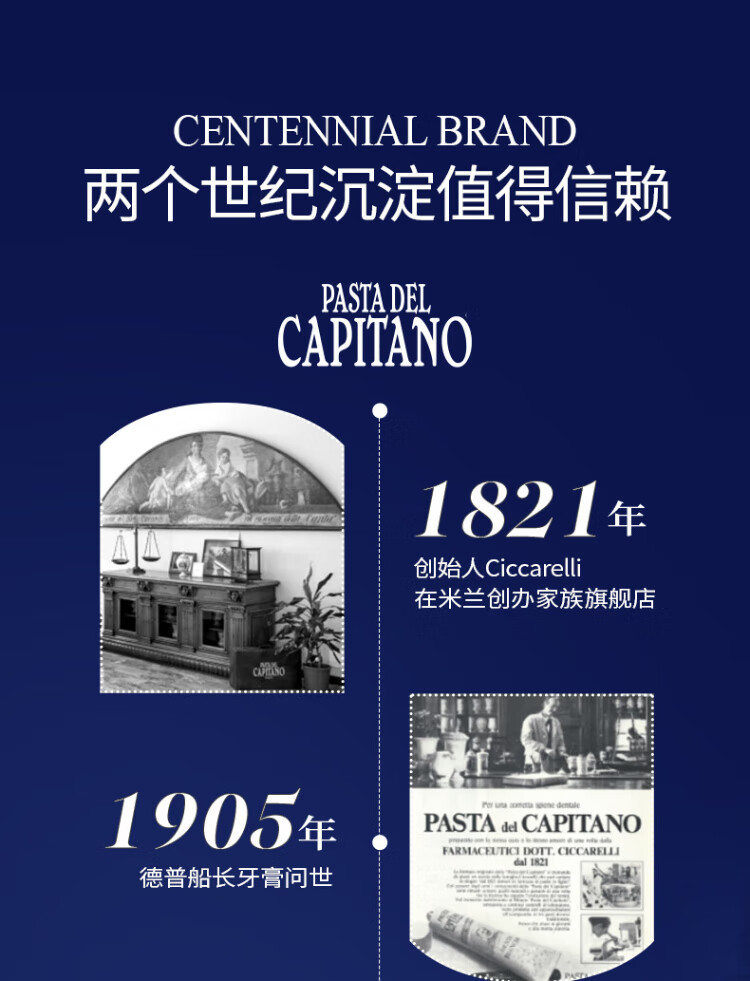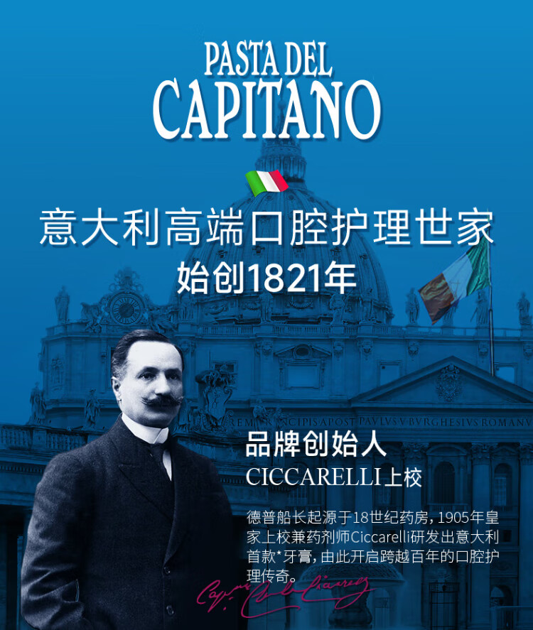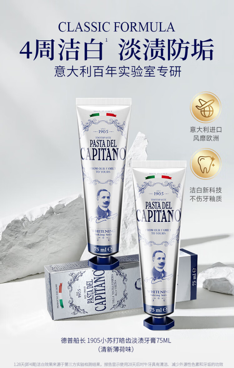 PASTA DEL CAPITANO Italian imported baking soda brightening toothpaste 75ml light stain reducing yellow toothpaste to prevent yellow teeth (1905 series)