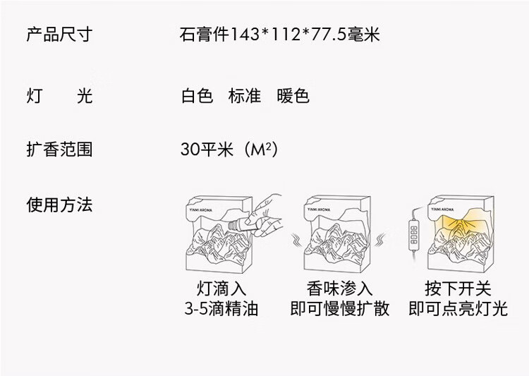 YINMI Aromatherapy Diffusing Stone Gift Box Rizhao Jinshan Crystal Room Bedroom Night Light Ornament Birthday Housewarming Wedding Gift