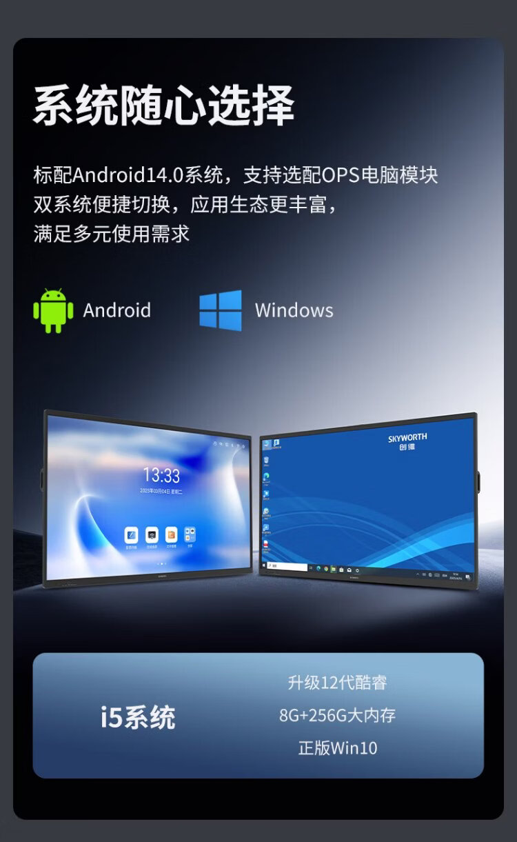 Skyworth conference tablet all-in-one 86-inch smart touch TV electronic whiteboard wireless screen projection teaching training video conference office 86WBB3+ screen projector cart
